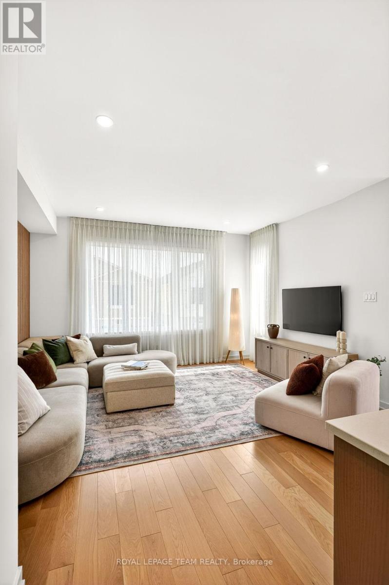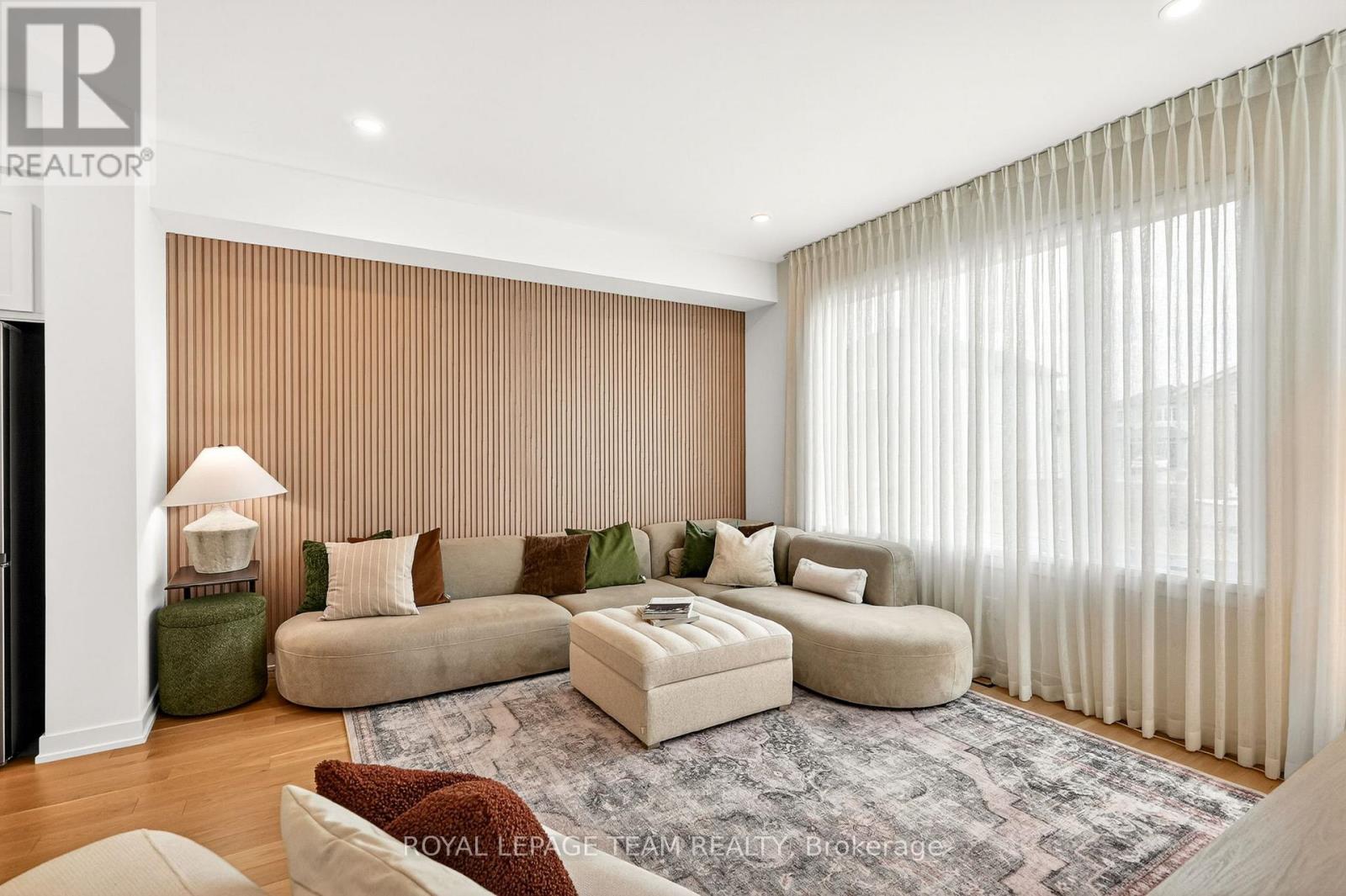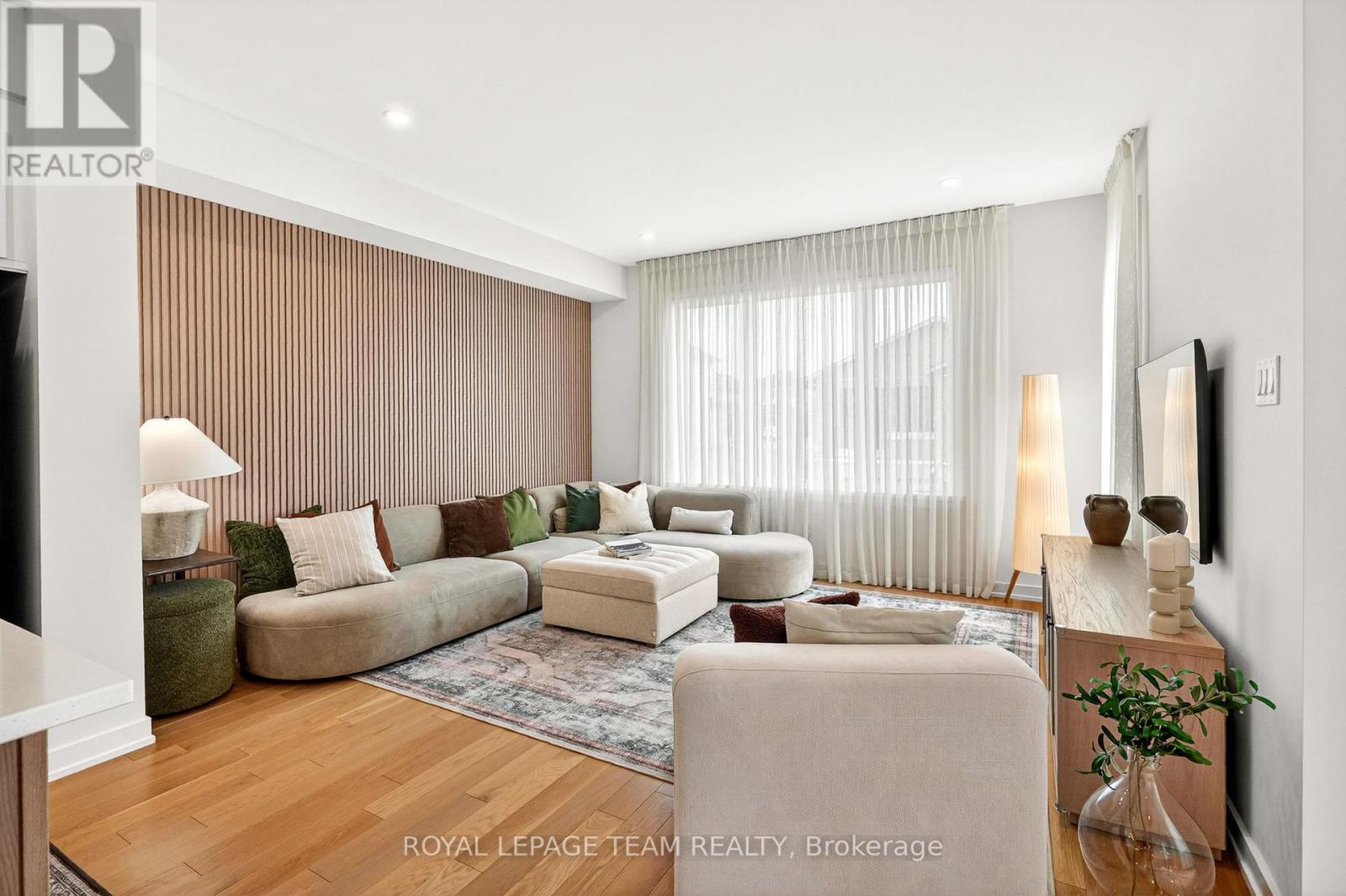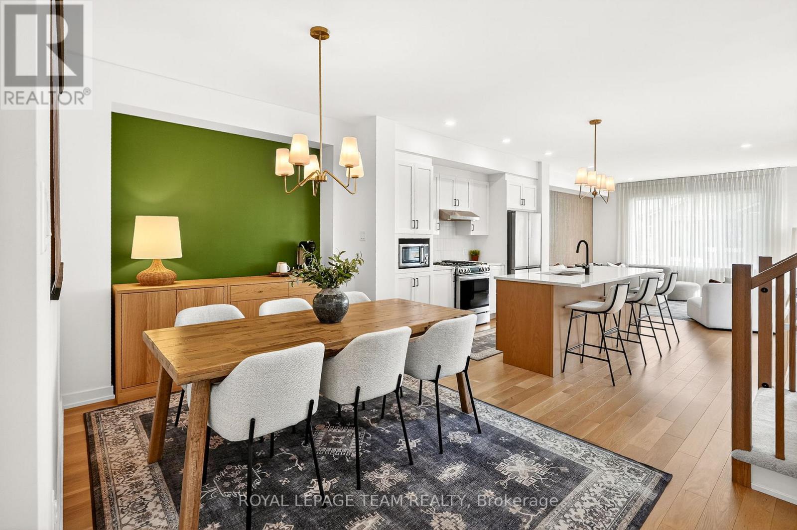 Welcome to 1009 Acoustic Way, a stunning 2024 Cardel Aspen (2,263 sq.ft) 4 Bedroom end-unit that rivals any model home in the booming community of Ironwood Riverside South. Boasting over $50k plus in builder upgrades & extensive custom owner improvements, this residence perfectly blends professional craftsmanship with bespoke designer style. The main floor is defined by sophisticated hardwood floors & an abundance of natural light thanks to upgraded windows in the flex room, powder room, & stairwells etc. At the heart of the home, the gourmet kitchen features Hanstone Tofino quartz countertops, Category 2 cabinetry, an expanding island & a premium LG smart gas range & SS Appliances. Designer touches abound, including custom wainscoting, accent walls, & elegant wallpaper paired with upgraded light fixtures & sleek matte black hardware throughout. Upstairs, you will find 4 spacious bedrooms with ample storage w/ 3 walk-in closets. The primary ensuite & 2nd bathroom serves as a true retreat, featuring a second drop-in sink, quartz counters, & upgraded tile. For ultimate modern comfort, the home is equipped with custom motorized blackout blinds, 6 4" LED Pot Lights, & extra smart home devices. Situated on a 108.60ft x 25.25ft deep-end unit lot, the exterior offers a 51 sq. ft. BBQ deck & 2024 eavestrough. Complete with an extra-quiet garage door opener & a basement featuring a 3-piece rough-in, this home provides the turn-key luxury of townhouse living & convenience. The rear neighbours are new build bungalows. 24-hour irrevocable on all offers. (id:50982)