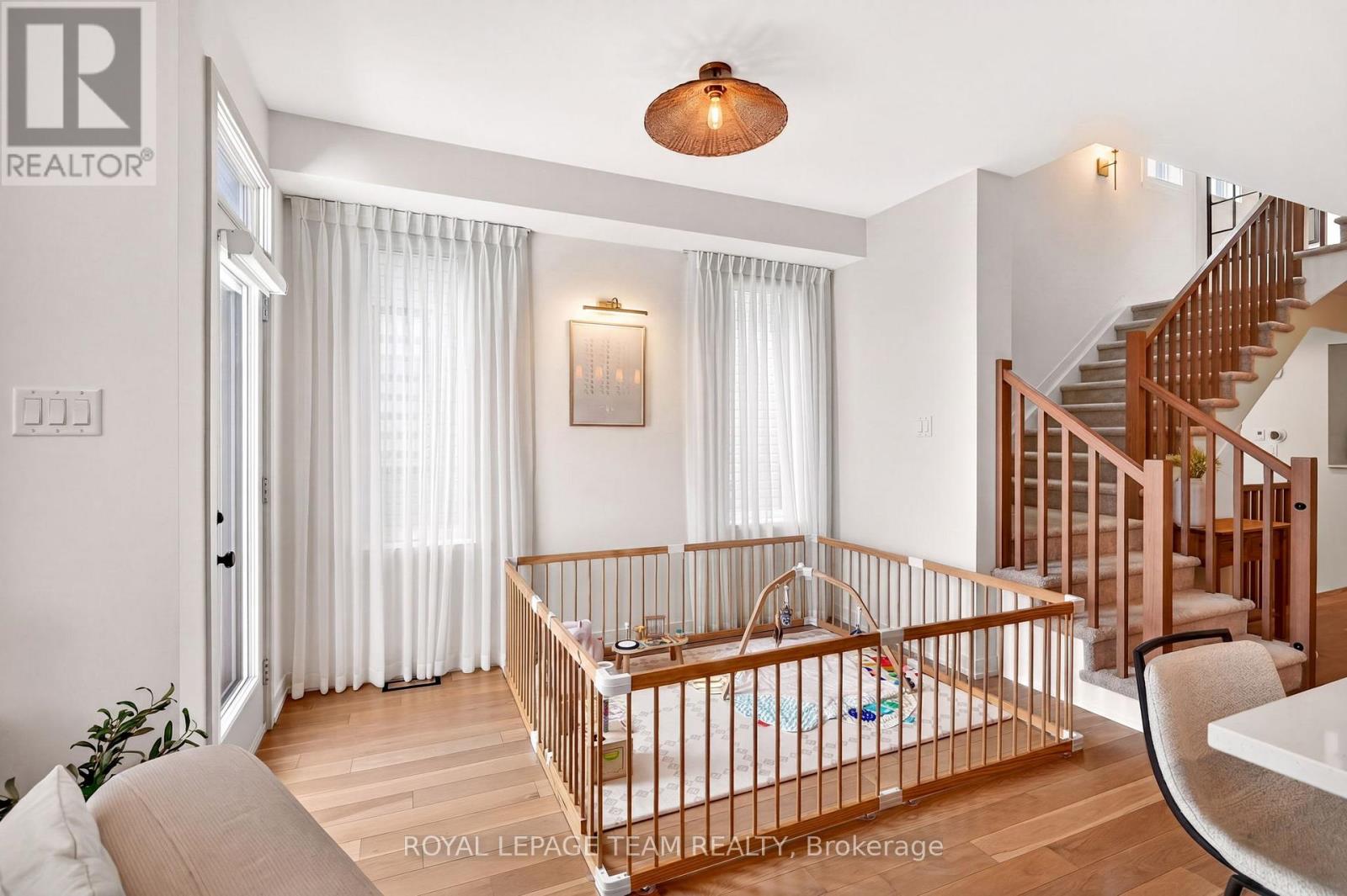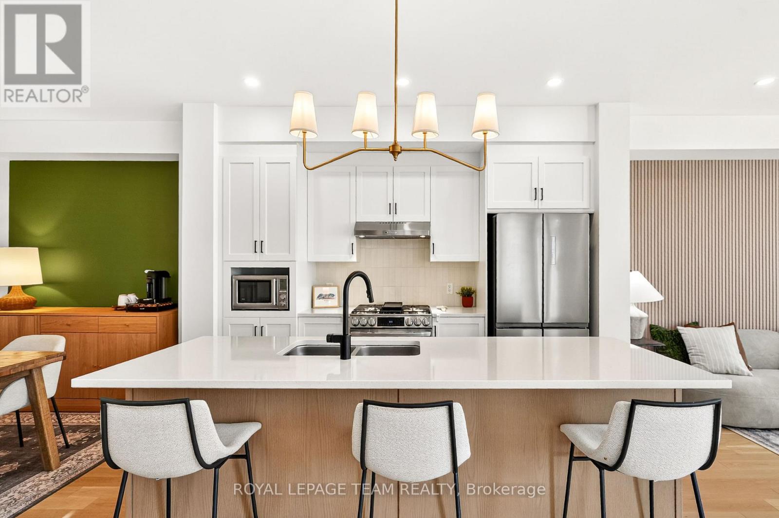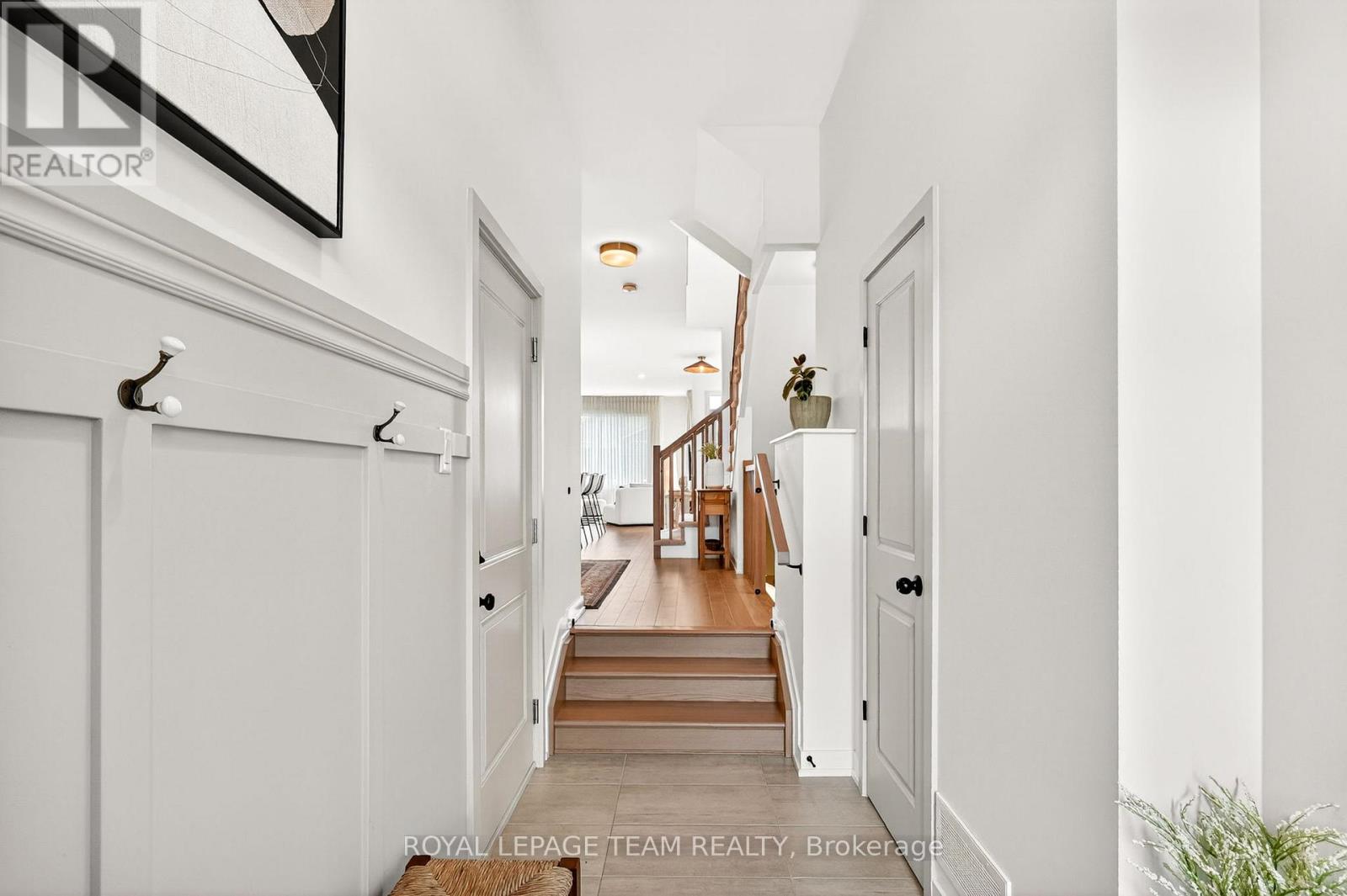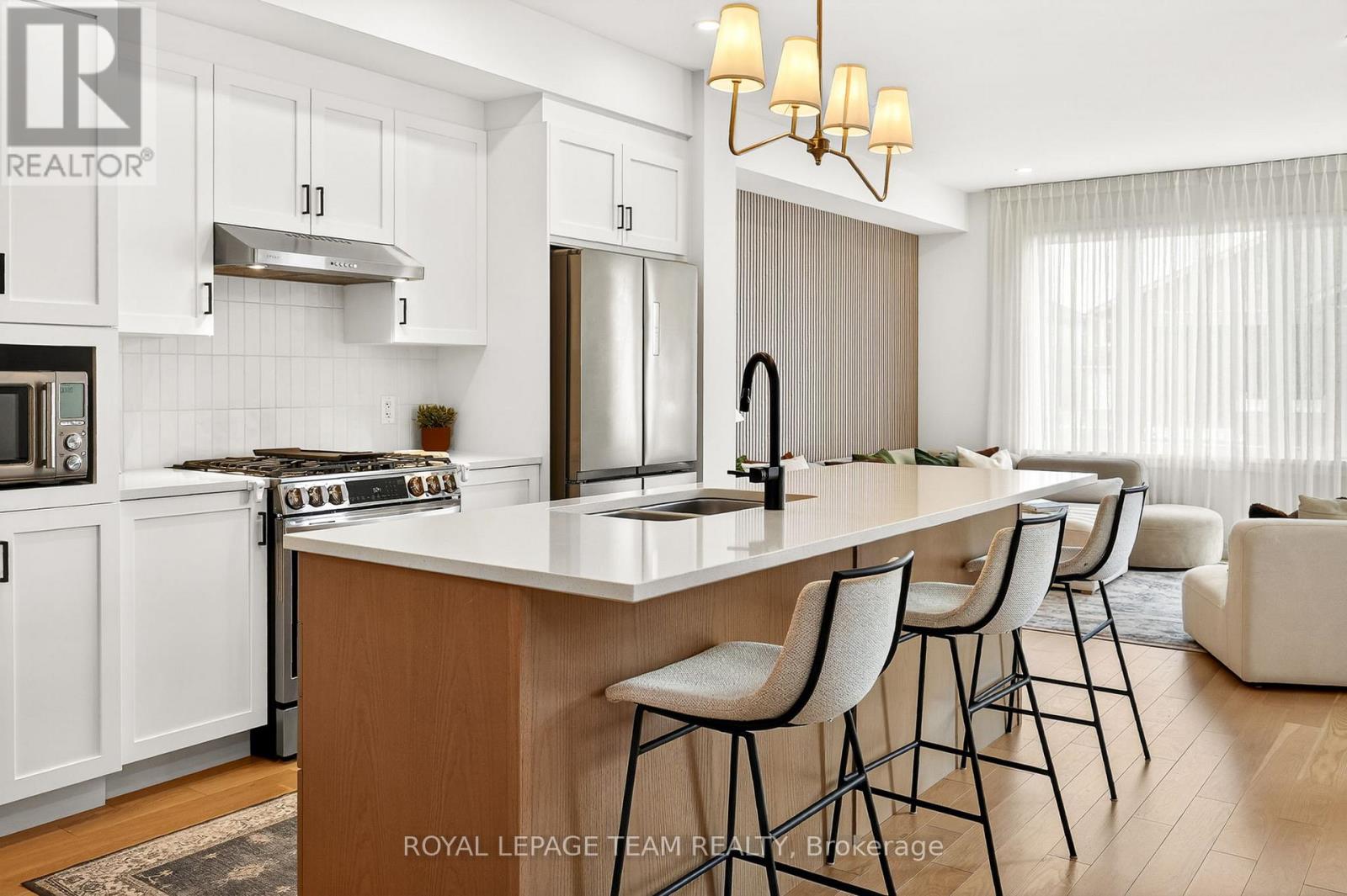 Welcome to 1009 Acoustic Way, a stunning 2024 Cardel Aspen (2,263 sq.ft) 4 Bedroom end-unit that rivals any model home in the booming community of Ironwood Riverside South. Boasting over $50k plus in builder upgrades & extensive custom owner improvements, this residence perfectly blends professional craftsmanship with bespoke designer style. The main floor is defined by sophisticated hardwood floors & an abundance of natural light thanks to upgraded windows in the flex room, powder room, & stairwells etc. At the heart of the home, the gourmet kitchen features Hanstone Tofino quartz countertops, Category 2 cabinetry, an expanding island & a premium LG smart gas range & SS Appliances. Designer touches abound, including custom wainscoting, accent walls, & elegant wallpaper paired with upgraded light fixtures & sleek matte black hardware throughout. Upstairs, you will find 4 spacious bedrooms with ample storage w/ 3 walk-in closets. The primary ensuite & 2nd bathroom serves as a true retreat, featuring a second drop-in sink, quartz counters, & upgraded tile. For ultimate modern comfort, the home is equipped with custom motorized blackout blinds, 6 4" LED Pot Lights, & extra smart home devices. Situated on a 108.60ft x 25.25ft deep-end unit lot, the exterior offers a 51 sq. ft. BBQ deck & 2024 eavestrough. Complete with an extra-quiet garage door opener & a basement featuring a 3-piece rough-in, this home provides the turn-key luxury of townhouse living & convenience. The rear neighbours are new build bungalows. 24-hour irrevocable on all offers. (id:50982)