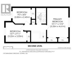 | Second Level | Primary Bedroom | 3.33 m | 4.61 m | 3.33 m x 4.61 m |