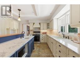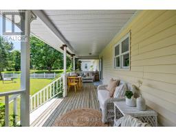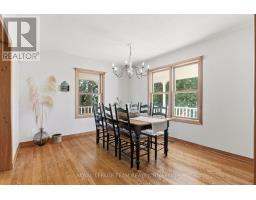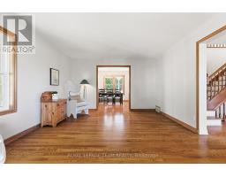 This Manotick home surrounded by mature trees and nestled in on a quiet crescent will capture your heart with its charming curb appeal. Upon entry, the spacious foyer provides a welcoming first impression and offers direct access to both the living room and kitchen. Natural light fills the living room, drawing attention to the bay window with a built-in bench, a cozy spot for reading and daydreaming. The kitchen/eating area is the "central hub" of the home, with french doors leading to the family room & cozy fireplace, keeping everyone in clear view while prepping meals & catching up on the day. A tucked away main floor bedroom, with a full bathroom close by, provides an inviting guest/in-law suite; or the option of a home office with unobstructed views of the yard. Main floor laundry with a bonus laundry chute from upstairs, practical & fun. A skylight brightens the 2nd floor with another full bathroom and 4 additional bedrooms, including the primary with a 4-pc ensuite and walk-in closet. Lower level finished recreation room and even more additional space to expand on, including storage areas and a large workshop. This homes character continues outside to the south facing yard with a covered wrap-around veranda extending all the way to the front door, a great space for gatherings; rain or shine. Enjoy the company of friendly neighbours while exploring nearby parks & public access to the river at the end of the street... and just around the corner from St Leonard School, making this an ideal family home. Note 3 photos have been virtually staged (living rm, office, rec room). 48 hr irrevocable. (id:50982)