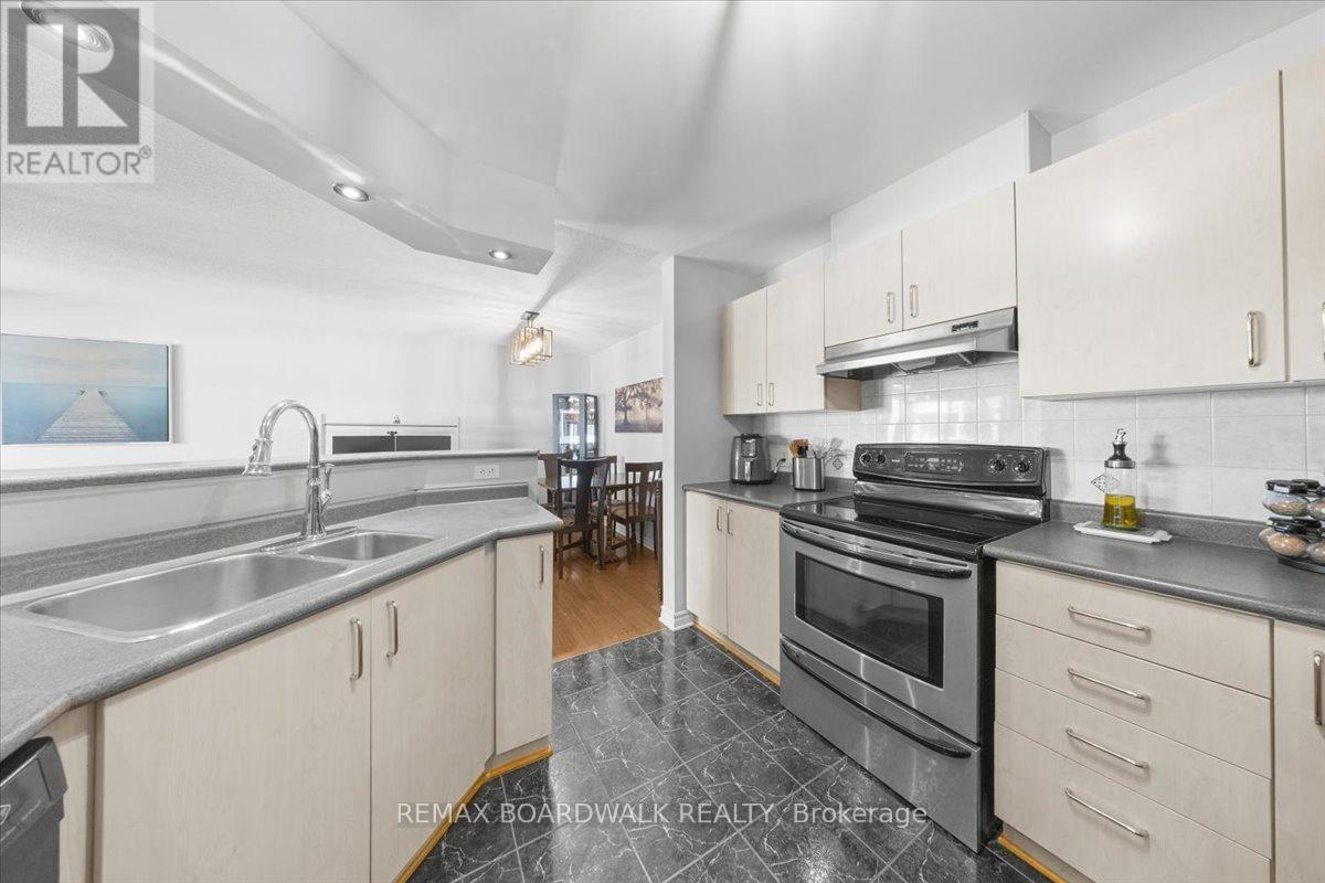 $485.62 MonthlyWelcome to this bright and beautifully maintained condo offering the perfect blend of space, comfort, and lifestyle. Featuring 2 bedrooms + den and 3 bathrooms, this home is ideal for those seeking low-maintenance living without sacrificing space.The open-concept main level is filled with natural light and showcases a spacious kitchen with abundant cabinetry, generous counter space with a convenient breakfast bar, double sinks, stainless steel appliances and pot lighting-perfect for both everyday living and entertaining. Formal Dining room and spacious living room with patio door to step onto your private north-facing balcony overlooking the peaceful courtyard, ideal setting for morning coffee or evening relaxation. The lower level offers a thoughtfully designed layout with a private primary retreat complete with a 4-piece ensuite and walk-in closet, along with a second bedroom, a 4 piece bathroom, and versatile den-perfect for a home office or quiet retreat. In-suite laundry is discreetly tucked away, and the large crawl space provides excellent storage. Freshly painted and complete with underground parking.Ideally located in the heart of Orléans along St. Joseph Boulevard, just minutes to Place d'Orléans shopping, dining, transit, and the upcoming LRT. Close to Ottawa River pathways, parks, and quick Highway 174 access-offering the perfect balance of walkability, convenience, and an easy downtown commute. (id:50982)