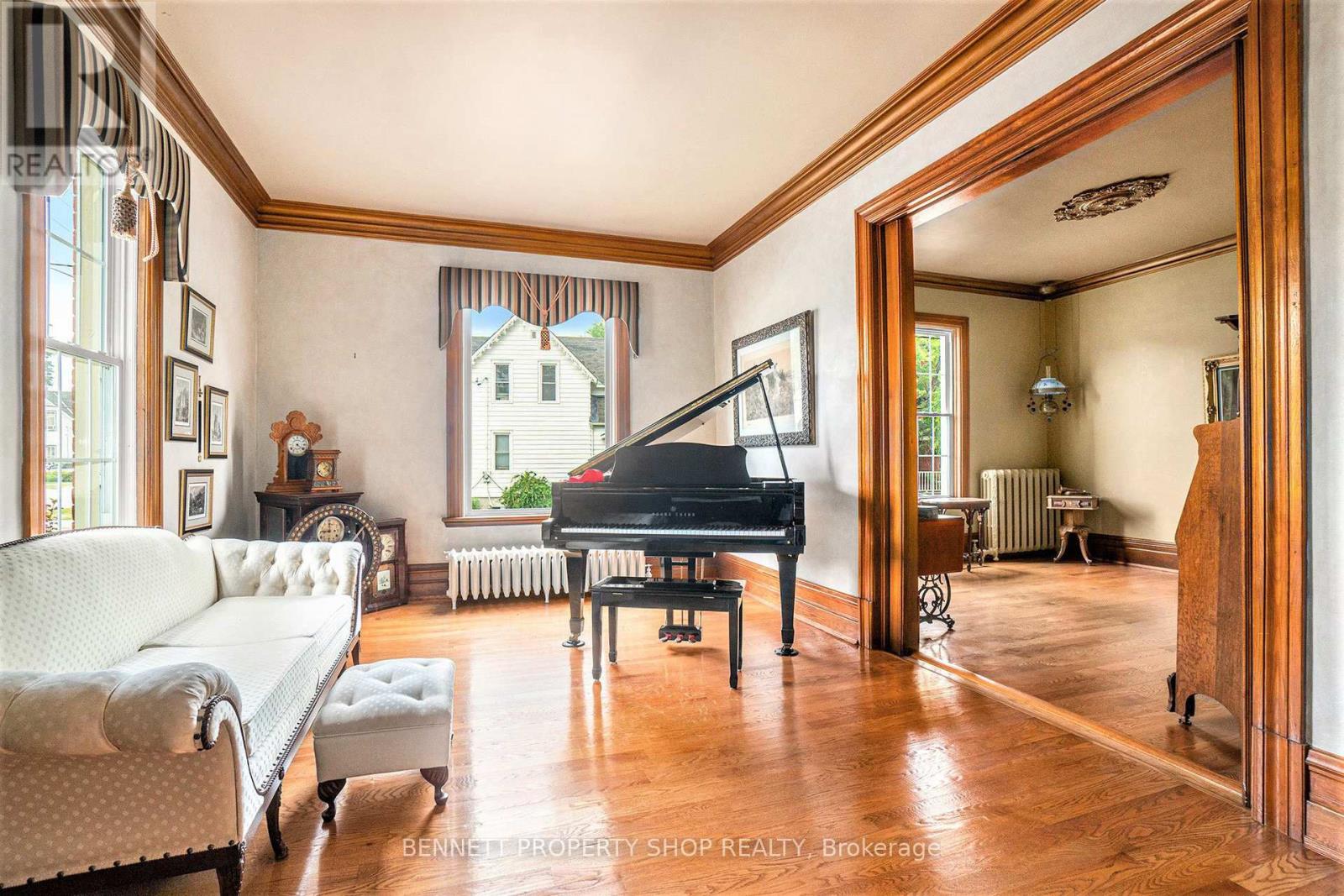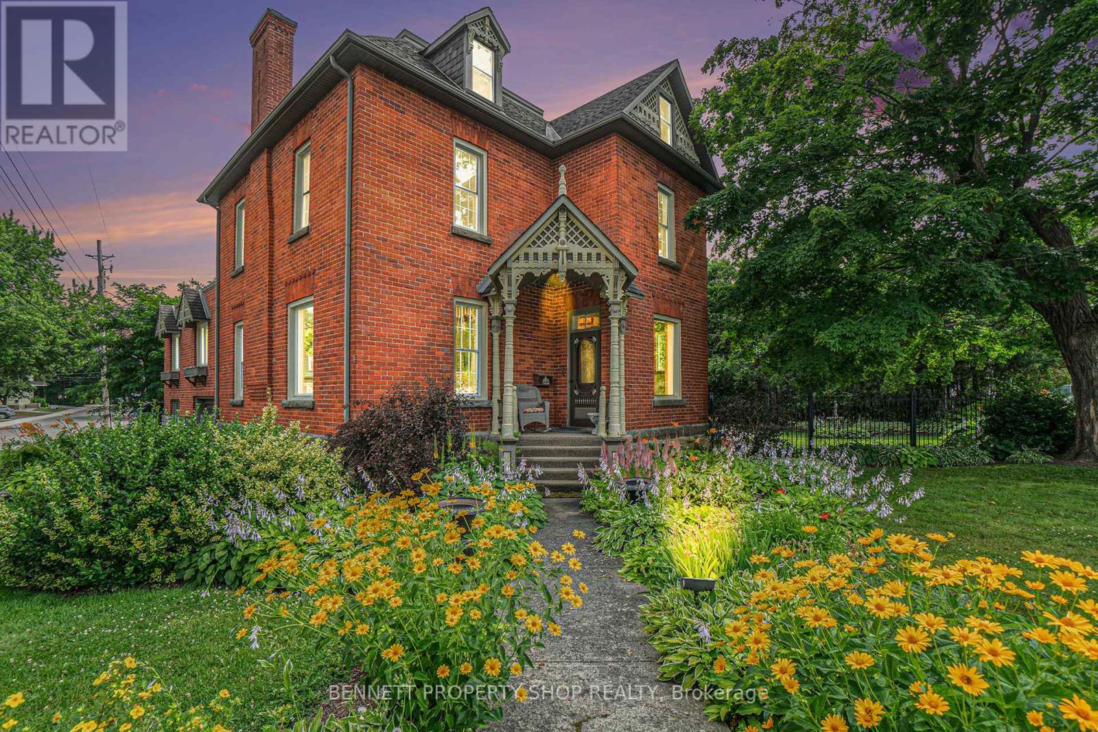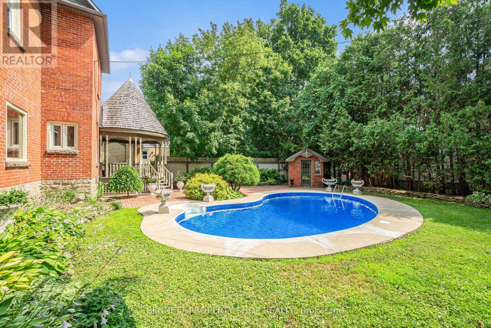 Prestigious Victorian Landmark in the Heart of Carleton Place - Step into timeless elegance in this beautifully maintained, historic brick Victorian home, ideally located on a private, tree-lined corner lot on sought-after High Street. Just steps from the Mississippi River and a short walk to the vibrant shops, dining, and amenities of downtown Carleton Place, this architectural gem blends period charm with refined modern updates. Offering over 3,000 square feet of gracious living space, this home showcases exquisite attention to detail, soaring ceilings, intricate crown moulding, hardwood floors, a grand hardwood staircase, and ornate wood trim throughout. The spacious, welcoming foyer leads to an impressive formal living room, with pocket doors opening into a cozy den or reading room. The elegant dining room is ideal for entertaining, while the large, well-appointed kitchen features granite countertops, stainless steel appliances, and plenty of space for culinary inspiration. Enjoy your morning coffee in the sun-drenched 3-season room, or host summer gatherings around the in-ground pool with a brand-new liner, nestled in a fully fenced, private backyard oasis. Upstairs, a versatile third-floor loft offers ideal space for a home office, games room, or studio. Additional features include a single-car attached garage, a rare find in this historic area. A true landmark residence offering comfort, character, and convenience - all in one of Carleton Place's most desirable locations. (id:50982)