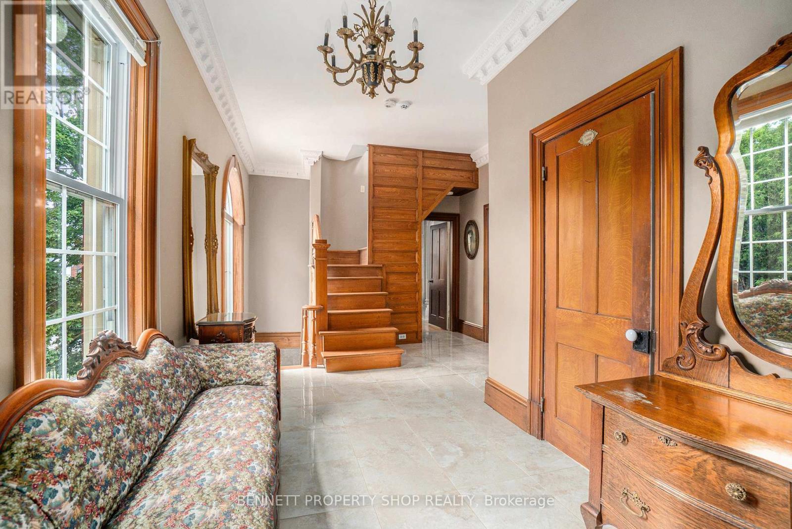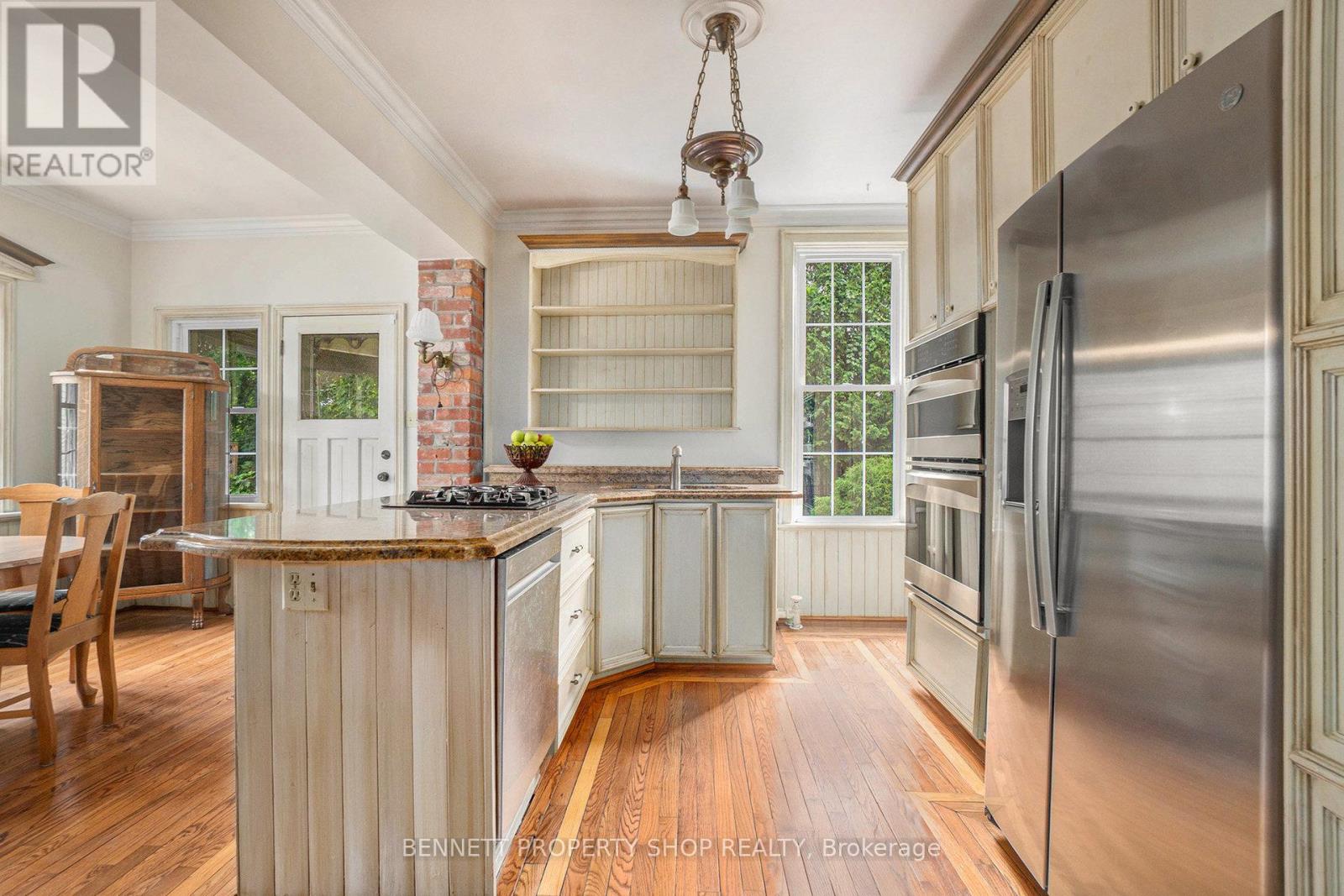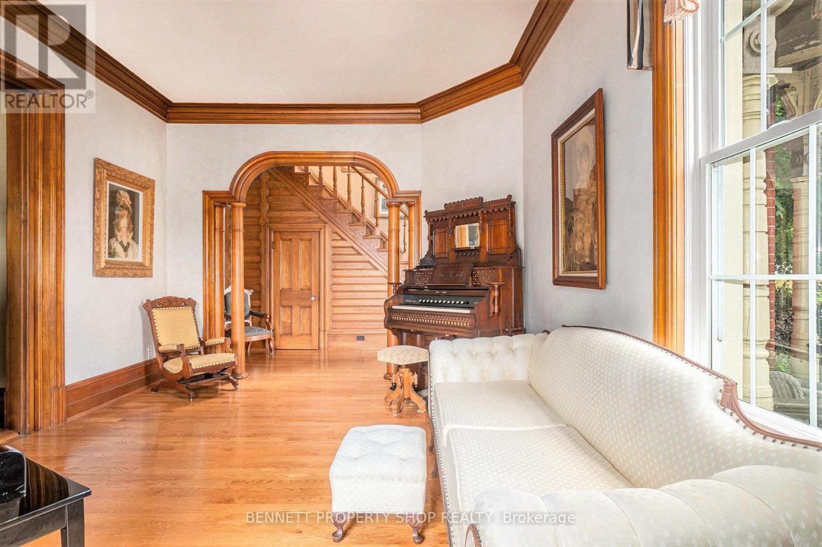 Prestigious Victorian Landmark in the Heart of Carleton Place - Step into timeless elegance in this beautifully maintained, historic brick Victorian home, ideally located on a private, tree-lined corner lot on sought-after High Street. Just steps from the Mississippi River and a short walk to the vibrant shops, dining, and amenities of downtown Carleton Place, this architectural gem blends period charm with refined modern updates. Offering over 3,000 square feet of gracious living space, this home showcases exquisite attention to detail, soaring ceilings, intricate crown moulding, hardwood floors, a grand hardwood staircase, and ornate wood trim throughout. The spacious, welcoming foyer leads to an impressive formal living room, with pocket doors opening into a cozy den or reading room. The elegant dining room is ideal for entertaining, while the large, well-appointed kitchen features granite countertops, stainless steel appliances, and plenty of space for culinary inspiration. Enjoy your morning coffee in the sun-drenched 3-season room, or host summer gatherings around the in-ground pool with a brand-new liner, nestled in a fully fenced, private backyard oasis. Upstairs, a versatile third-floor loft offers ideal space for a home office, games room, or studio. Additional features include a single-car attached garage, a rare find in this historic area. A true landmark residence offering comfort, character, and convenience - all in one of Carleton Place's most desirable locations. (id:50982)