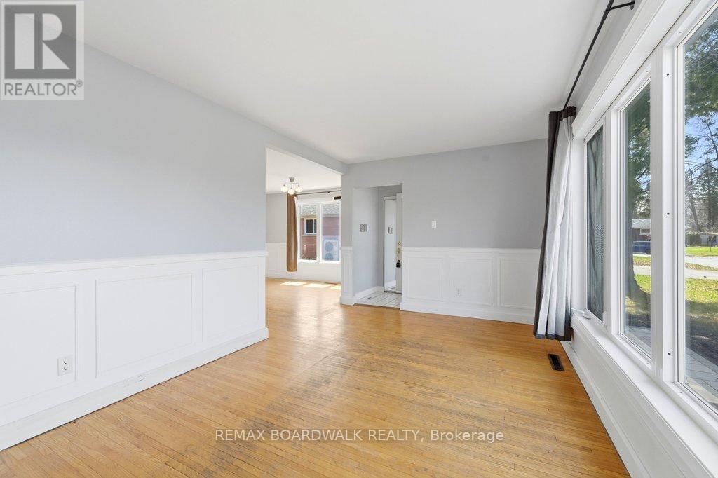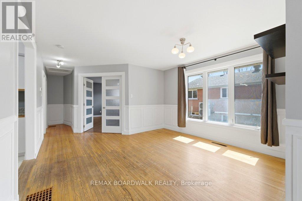 Welcome to this classic Ottawa bungalow offering a rare blend of privacy, location, and long-term potential in a highly convenient west-end neighbourhood near Woodroffe Avenue and Baseline Road. Set on a quiet street with no rear neighbours and directly beside a park, this property delivers a lifestyle that is both peaceful and connected, an ideal opportunity for investors, first-time buyers, or those looking to build equity in a strong rental area. The main level features two well-sized bedrooms, a full bathroom, and a bright living and dining space with timeless wainscotting and natural light. The kitchen remains in original condition, presenting an excellent opportunity to renovate and add value. The finished basement expands the footprint with a spacious rec room, an additional bedroom (window does not meet egress requirements), and a large laundry and mechanical area, offering flexibility for future use. Outdoors, the fully fenced backyard includes a generous interlock patio, detached shed, and a closed-in carport currently used for storage. Recent updates such as a new paver walkway and wood front steps enhance curb appeal and overall functionality. Location is key-just minutes from Algonquin College, College Square shopping, transit routes including Baseline Station, schools, and everyday amenities. With strong rental demand and excellent accessibility, this property offers both immediate livability and future upside. A rare opportunity to transform a well-built bungalow into a beautifully modern space. NO rear neighbours and siding on a park - location, location, location. (id:50982)