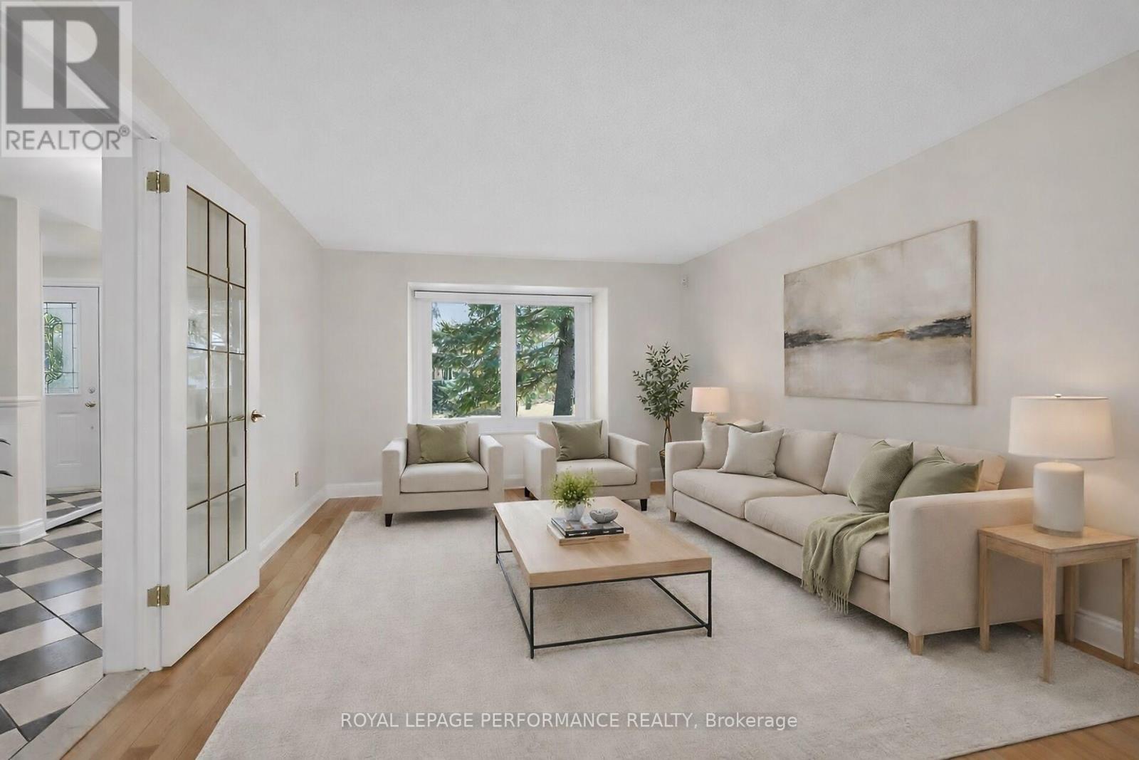 Tucked away on a quiet, family friendly street in the heart of Fisher Glen, this beautifully updated one owner detached 4 bedroom home is one you'll instantly see yourself living in. With standout curb appeal featuring a full interlock driveway, charming front patio and a single car garage, this home makes a lasting first impression before you even step inside. The moment you enter, you're greeted by a bright, welcoming foyer that sets the tone for the rest of the home. Gleaming hardwood flooring flows through the elegant living and dining rooms, creating a warm and inviting space for gatherings. The kitchen is truly the heart of the home, thoughtfully designed with abundant cabinetry and ample counter space, while a sun-filled breakfast nook with a charming bay window provides an inviting setting to enjoy your morning coffee. Just steps away, the cozy family room with a wood burning fireplace opens onto a spacious deck, making it the perfect place to host, unwind and enjoy seamless indoor-outdoor living. The main floor laundry room and convenient garage access add everyday ease. On the upper level, the primary bedroom features a striking bay window that fills the space with natural light, creating a private retreat complete with a walk-in closet and a modern ensuite bathroom. All of the bedrooms offer hardwood flooring and a recently renovated main bathroom with two sinks serves the additional three bedrooms, making it ideal for busy mornings. The finished lower level expands the living space, offering a large rec room, den, wet bar, stylish powder room and plenty of storage. Step outside to the beautifully landscaped backyard with a generous deck, ready for your entertaining needs. Fabulously located nearby transit, schools, parks, shopping, the General Burns outdoor pool and minutes to the Carleton University and the Algonquin College. This is the home that checks every box! An exceptional opportunity not to be missed! Schedule your showing today! (id:50982)