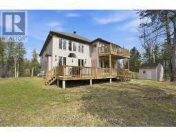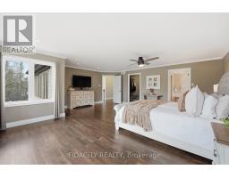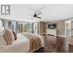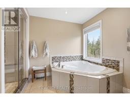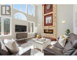 Set on over 2.3 acres of private, tree-lined land, this custom-built 3200+ sq ft home plus a fully finished basement in Canterberry Woods offers the perfect mix of space, privacy, and convenience just minutes from central Kanata.Step inside to a bright, open layout featuring hardwood floors, a curved staircase, and a stunning two-storey living room with a wall of windows and gas fireplace. The main floor offers incredible functionality with a formal dining room, formal sitting area with a second gas fireplace, a dedicated office/playroom with double glass doors, and laundry area with garage entry. The chef's kitchen is designed for real life with an oversized fridge/freezer combo, ample counter space, large island with breakfast bar, walk-in pantry, extended cabinetry, and a generous eating area with direct access to the backyard and hot tub area. Upstairs, the primary bedroom is exceptionally spacious, offering a true retreat with its own private balcony, custom walk-in closet, and a beautifully finished ensuite featuring granite counters, soaker tub, dual sinks, and separate shower. Three additional bedrooms and a full bathroom with granite countertops and double sinks complete the second level, along with a Juliet balcony overlooking the main living space. The fully finished basement adds even more living space with a bright layout, large rec-room, additional 5th bedroom, and full bathroom-ideal for guests, teens, or extended family. Outside, enjoy a newly paved driveway with parking for up to six cars and a private, tree-lined yard with plenty of space to relax, entertain, or just enjoy! All of this in rural Kanata, just minutes to amenities, schools, the town of Carp, Stittsville and highway access. (id:50982)