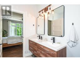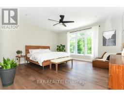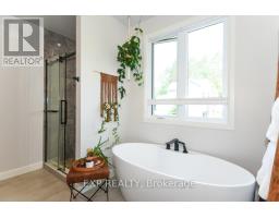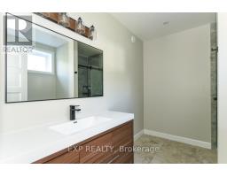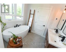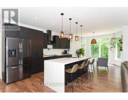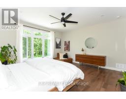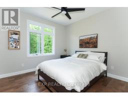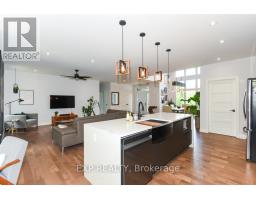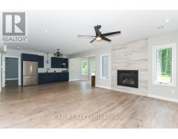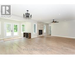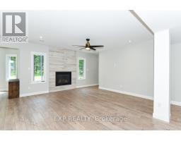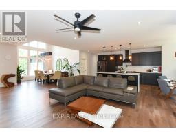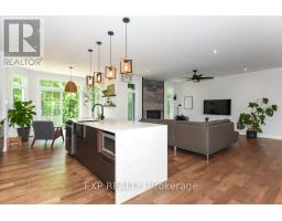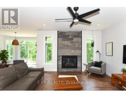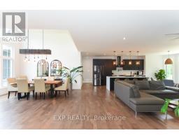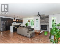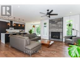 Welcome to Your 2023 Custom Dual-living Design home built Ideally for in-law suite or rental income! This stunning home is thoughtfully designed for extended family living, featuring two full master bedroom ensuites, each with their own kitchen and living areas one on each level! Step into the inviting foyer adorned with rich maple hardwood floors, leading to a sleek, modern kitchen with custom cabinetry, waterfall quartz countertops, a pantry, and a large island with seating perfect for gathering leading to upper deck. The dining area boasts soaring 14' vaulted ceilings, while the spacious living room features an eye-catching gas fireplace for cozy evenings. The main floor master suite is a private retreat, complete with heated floors, double sinks, a standalone soaker tub, and a walk-in shower. Two additional bedrooms on this level are generously sized and separated by a full family bathroom. Downstairs, the bright walk-out level includes the second master suite with its own bathroom & walk-in closet, a quaint second kitchen, a dining and living area with a second gas fireplace, a den, and ample storage space. Enjoy outdoor living, relaxing and entertaining in the private backyard offering; a shaded patio, firepit area, and mature trees backing onto neighboring property with Cobb's lake creek. Additional highlights: High-speed Bell Fibe internet. Extra insulation for enhanced energy efficiency. Charming small town community with top rated elementary school & park area. A rare and versatile home perfect for multi-generational families or those seeking income potential with in-law capabilities. Don't miss your chance to view this one-of-a-kind property! 24-hour irrevocable on all offers. (id:50982)