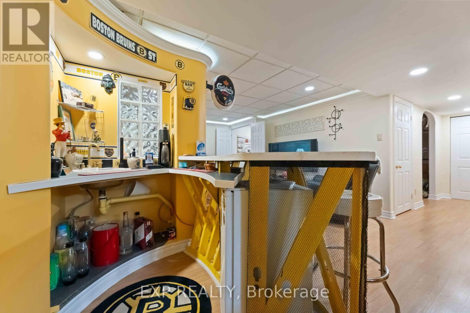 Welcome to 16 Evelyn St, Stittsville, ON, a home where character, comfort, and smart upgrades come together. Pride of ownership is clear from the moment you arrive. With 3 spacious bedrooms and 2 full bathrooms, this house offers substantial living for family and guest living alike. Inside, you'll love the main floor setup: excellent natural light, laundry on the main floor, and modern mechanicals (roof & furnace/AC from 2019, patio door from 2020, and a new garage door just added in 2025). The oversized double-car attached garage includes a belt-drive door opener and built-in shelving, making storage and organization a breeze. The basement is a true bonus floor: fully finished and featuring a second family room, a Boston Bruins-themed wet bar, a dedicated office, ample storage space, and a crawlspace. Perfect for working from home, hobby space, or entertaining guests. Outside, the home sits on a large and private 65', by 134' lot, with mature trees, a storage shed for extra utility. Neighbors are friendly, and the location gives you fast access to the 417 and local shops; everything you need is within reach. (id:50982)