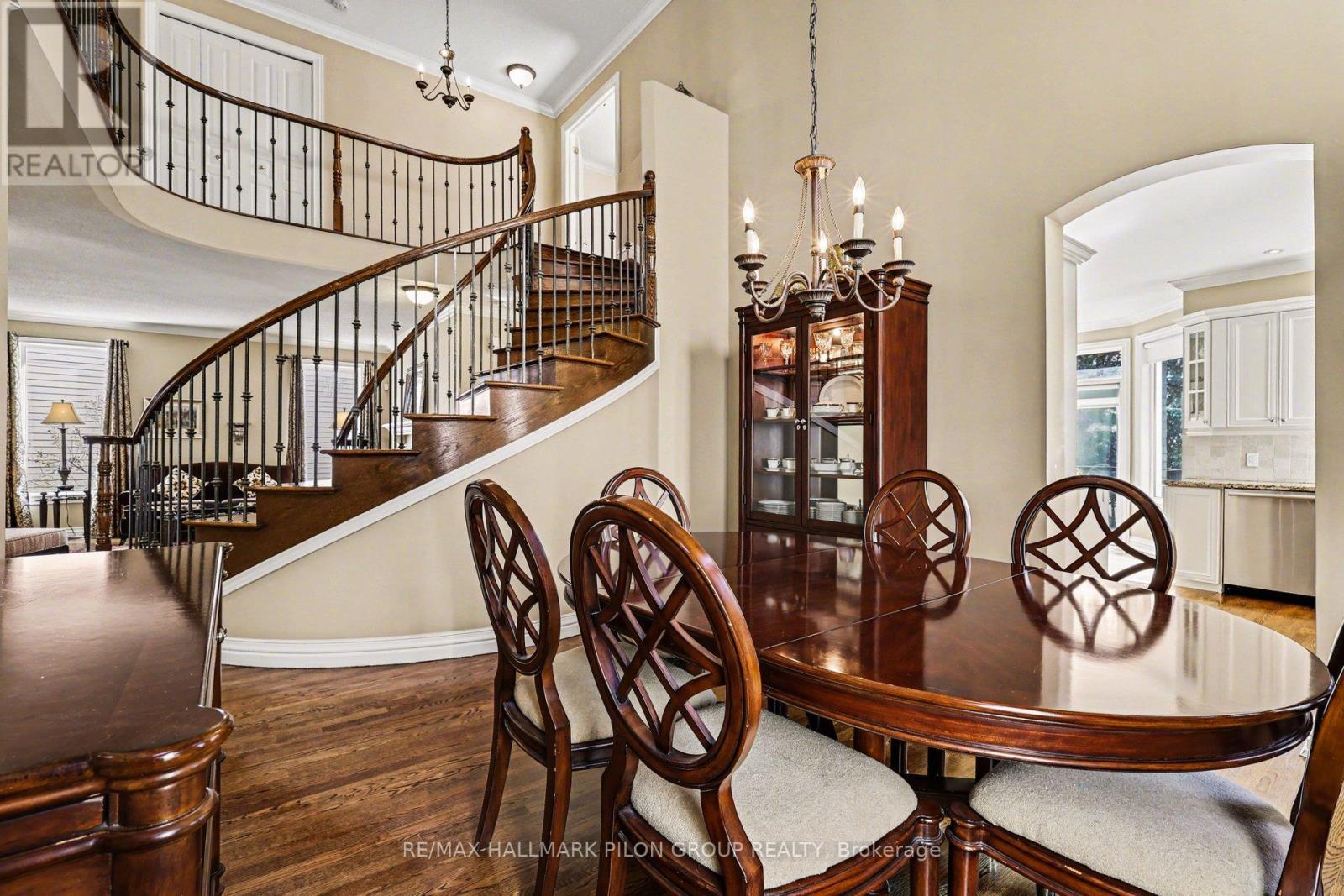 This impeccably maintained 4-bedroom home is completely turnkey & shows like a model home; welcome to 163 Copperwood St. Step into the spacious foyer, thoughtfully designed w/grand principal rooms & opulent finishes throughout. The formal living room is both elegant & inviting, highlighted by a 2-sided gas fireplace that also serves the family room. This warm and comfortable gathering space features gorgeous built-in shelving flanking the fireplace & large window overlooking the private backyard. The formal dining room is perfectly positioned next to the kitchen & reflects the sophistication of the home with its soaring 2-storey ceiling. The eat-in kitchen is sure to impress any home chef, offering magazine-worthy finishes including rich cabinetry, luxurious granite countertops, sleek stainless-steel appliances, an oversized island, & bonus desk space. A curved hardwood staircase leads to the 2nd floor, where the expansive primary retreat truly lives up to its name. This spacious suite can easily accommodate any size bedroom set and features an oversized walk-in closet along with access to the luxurious 5pc ensuite w/double sinks, glass shower, & oversized soaker tub. Hardwood stairs continue to the fully finished walk-out basement, an exceptional extension of the living space that is ideal for a teenage retreat, visiting guests, or multigenerational living. This level features a dedicated area perfect for a bedroom complete w/2 closets, a full bathroom, and a fantastic rec room anchored by a second gas fireplace w/elegant stone surround & custom built-in shelving. A beautiful wet bar & dining area make entertaining effortless, while 2 separate storage rooms provide an abundance of practical storage space. Patio doors from this level lead to the private & serene backyard. With no rear neighbours, this outdoor space offers wonderful privacy & an inviting setting to enjoy the warmer months, whether relaxing on the stone patio or entertaining family & friends. (id:50982)