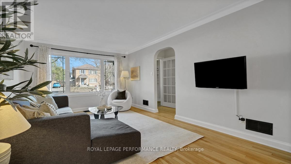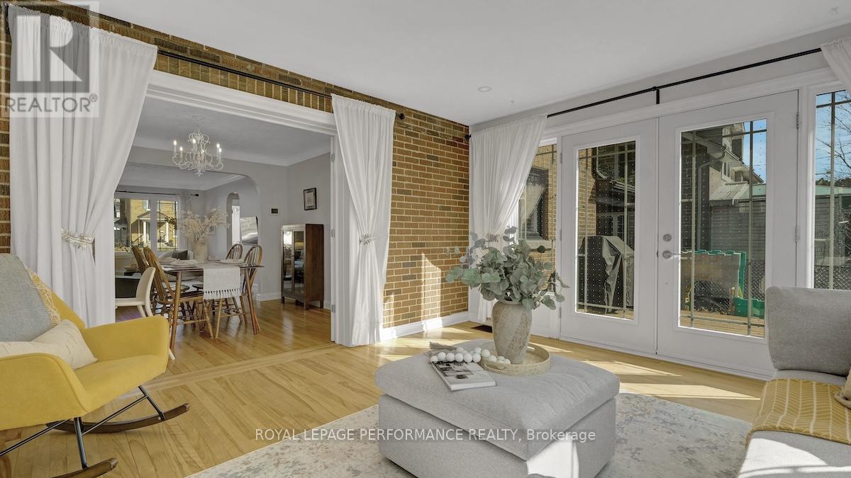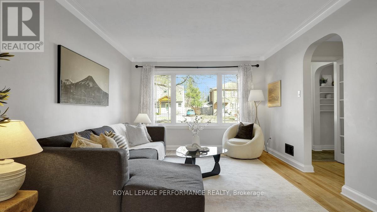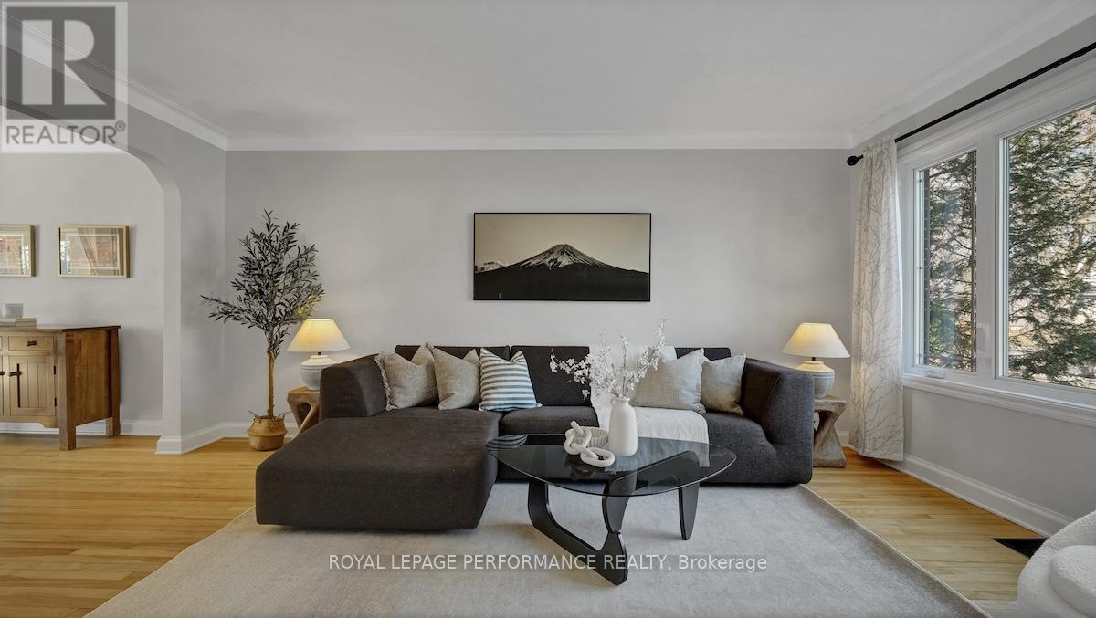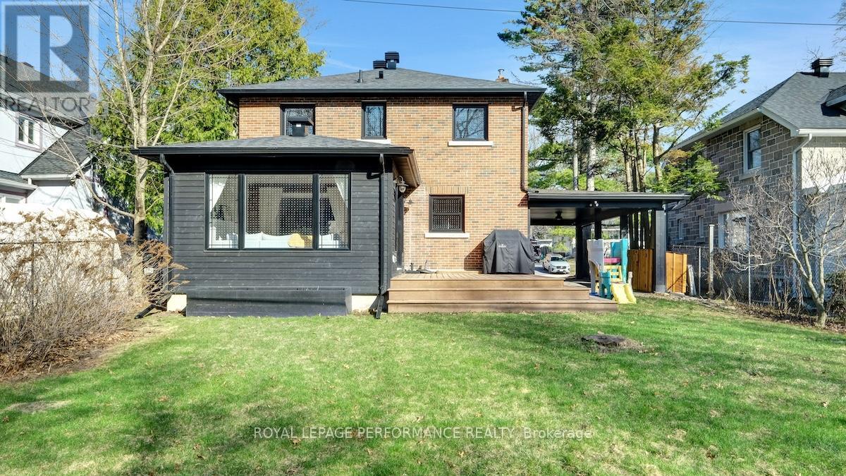 Ideally located in a sought-after enclave in Riverview Park, this timeless 4bed/3bath red-brick detached home on a 186ft lot with no rear-neighbours is the perfect fit for the busy urban family who loves to entertain, doesn't want to compromise on modern finishes, appreciates a functional layout, and seeks easy access to the downtown core or the General Hospital/CHEO. Lovely front foyer with convenient mudroom. Bright and airy open-concept main living space with hardwood floors, cove mouldings, and picture window overlooking front garden. Absolutely stunning sun soaked main floor family room with wall-to-wall windows, french doors, electric fireplace and access to outdoor living area. Chef's kitchen with centre island with seating, gas stove, stainless steel appliances, quartz countertops, trendy backsplash, and farmhouse sink overlooking the backyard. Convenient main floor full-bathroom with charming vanity. Beautiful hardwood staircase with live edge banister. Spacious primary bedroom with wall-to-wall closets. Three additional well-proportioned bedrooms. Renovated main bathroom with oversized vanity, and subway tile tub surround. Lower-level features an additional living space, 2-piece bathroom, laundry area, and tons of room for all your storage needs. Covered parking with direct access to kitchen, perfect if you hate clearing snow off your car. What's not to love with a fenced backyard big enough to play soccer or a skating rink in the winter. Lovely west-facing deck with natural gas line for BBQ, perennial gardens, storage shed and mature trees. Walk to the kids park down the street, or to the Hurdman LRT Station. Easy access to the 417, Trainyards, Lycee Claudel, Hospital Campus, and to everything else the Nation's Capital has to offer. (id:50982)