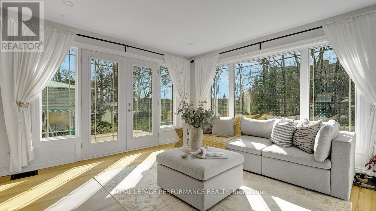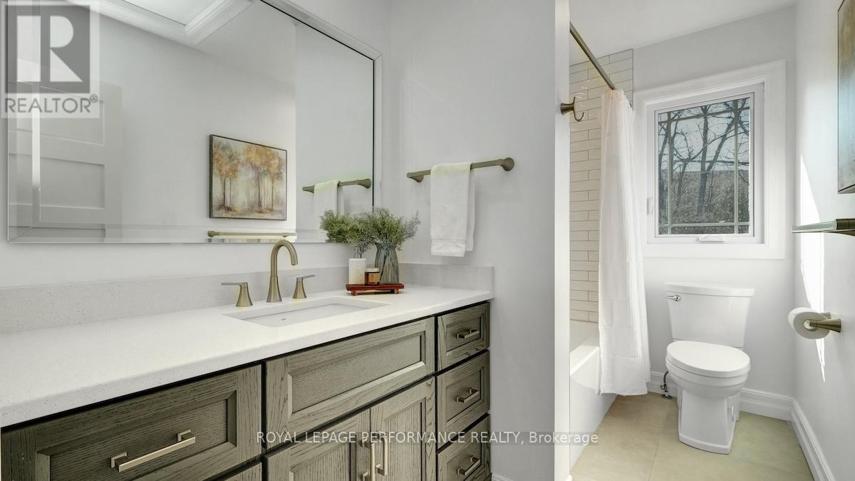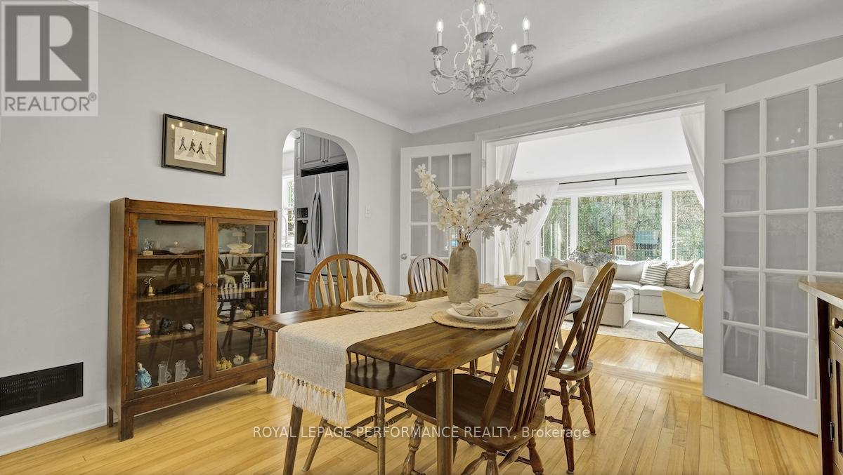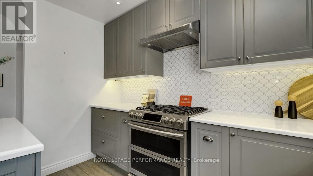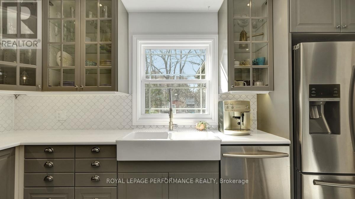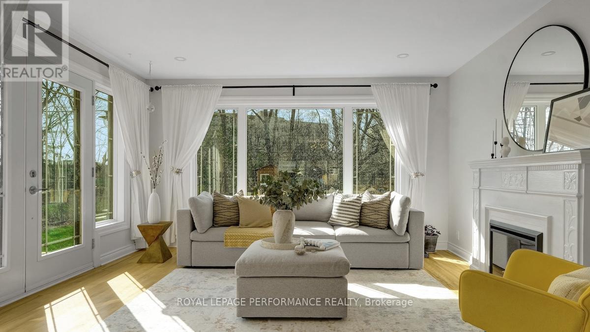 Ideally located in a sought-after enclave in Riverview Park, this timeless 4bed/3bath red-brick detached home on a 186ft lot with no rear-neighbours is the perfect fit for the busy urban family who loves to entertain, doesn't want to compromise on modern finishes, appreciates a functional layout, and seeks easy access to the downtown core or the General Hospital/CHEO. Lovely front foyer with convenient mudroom. Bright and airy open-concept main living space with hardwood floors, cove mouldings, and picture window overlooking front garden. Absolutely stunning sun soaked main floor family room with wall-to-wall windows, french doors, electric fireplace and access to outdoor living area. Chef's kitchen with centre island with seating, gas stove, stainless steel appliances, quartz countertops, trendy backsplash, and farmhouse sink overlooking the backyard. Convenient main floor full-bathroom with charming vanity. Beautiful hardwood staircase with live edge banister. Spacious primary bedroom with wall-to-wall closets. Three additional well-proportioned bedrooms. Renovated main bathroom with oversized vanity, and subway tile tub surround. Lower-level features an additional living space, 2-piece bathroom, laundry area, and tons of room for all your storage needs. Covered parking with direct access to kitchen, perfect if you hate clearing snow off your car. What's not to love with a fenced backyard big enough to play soccer or a skating rink in the winter. Lovely west-facing deck with natural gas line for BBQ, perennial gardens, storage shed and mature trees. Walk to the kids park down the street, or to the Hurdman LRT Station. Easy access to the 417, Trainyards, Lycee Claudel, Hospital Campus, and to everything else the Nation's Capital has to offer. (id:50982)