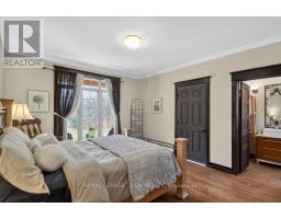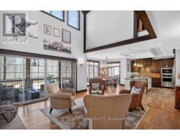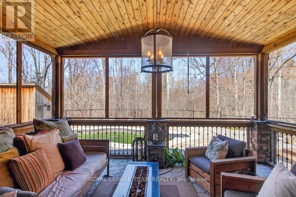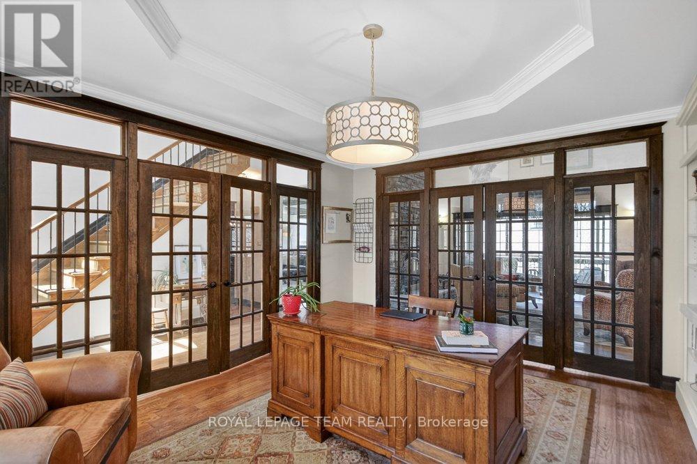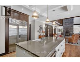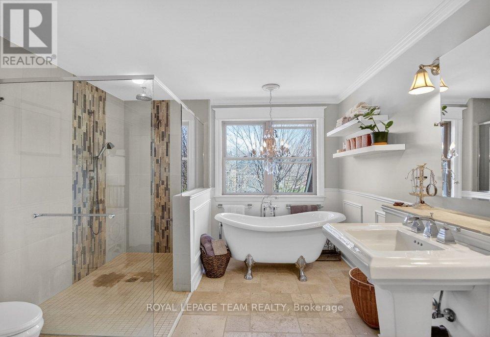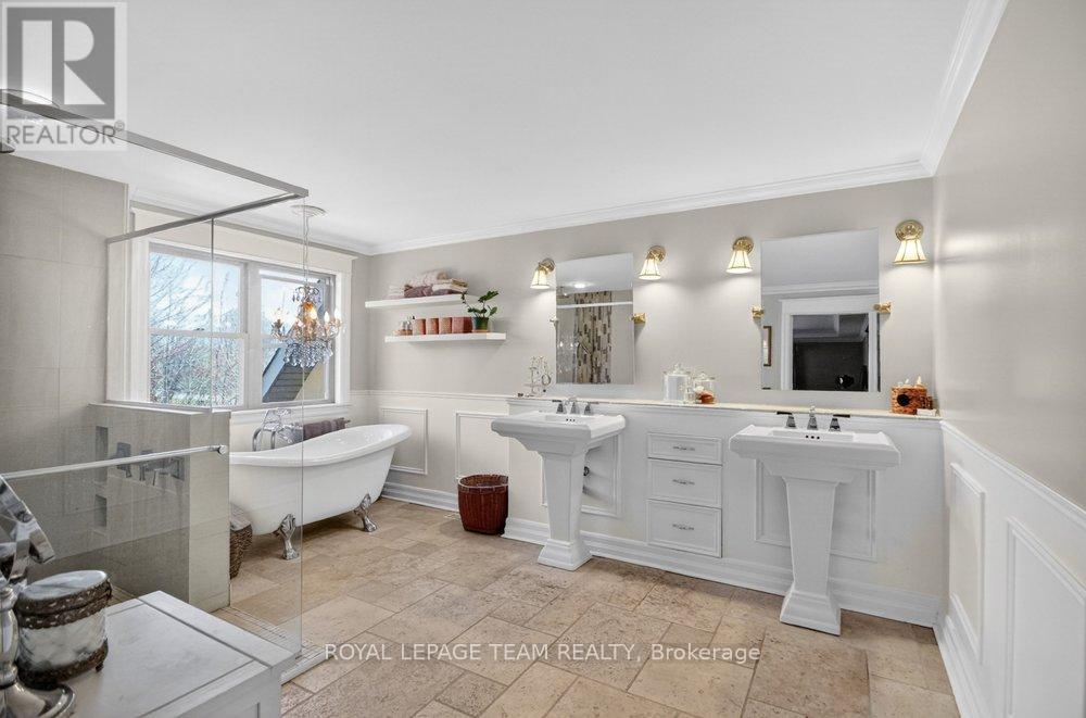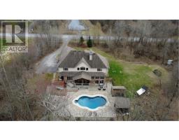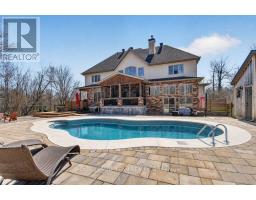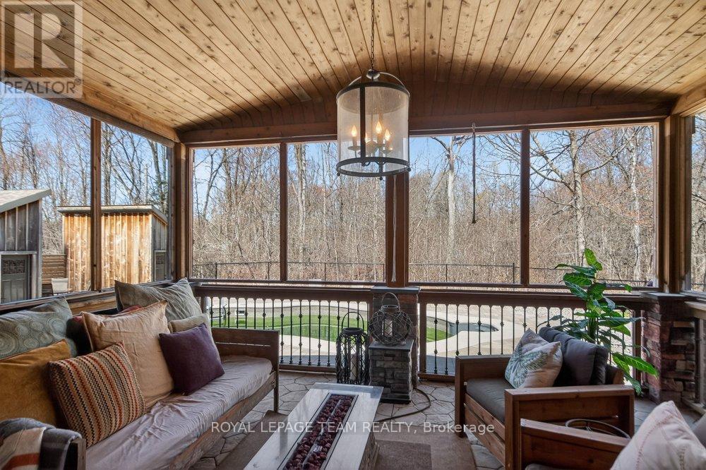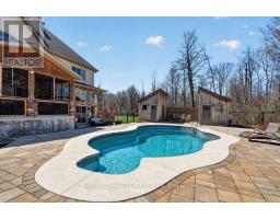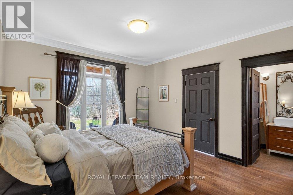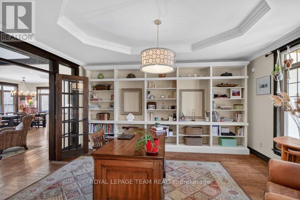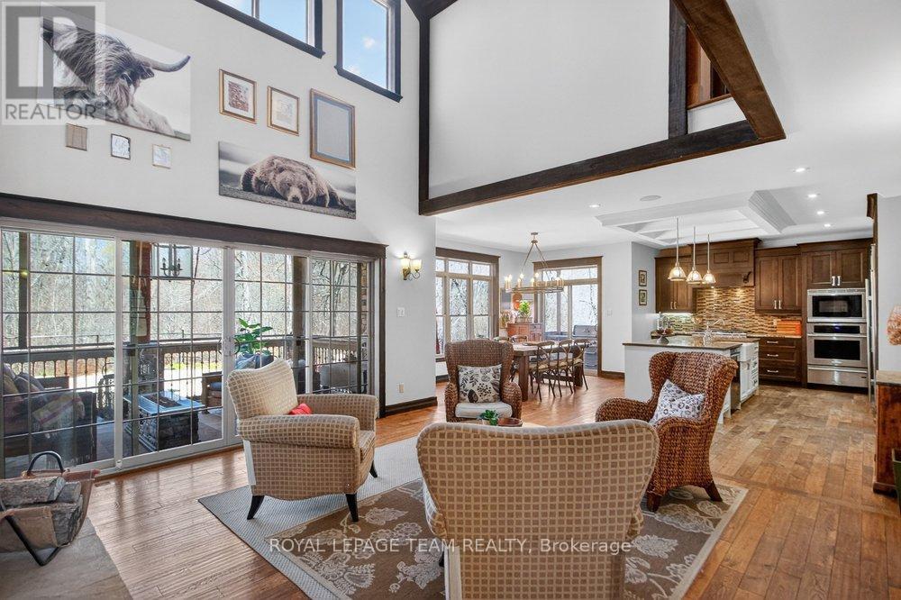 OPEN HOUSE NEXT SUNDAY MAY 3 2-4... BRING YOUR FAMILY...YOU WONT WANT TO LEAVE!!! Welcome to this stunning custom-built home in the heart of Greely, offering the perfect blend of luxury, warmth, & a charming Tremblant-inspired aesthetic. Nestled on a private, treed lot of over 2 acres, this exceptional property provides both tranquility and space, just minutes from city conveniences. Step inside to a grand foyer with soaring ceilings and an abundance of natural light, setting the tone for the craftsmanship and elegance found throughout. Beautiful hardwood floors flow seamlessly across the main and upper levels, enhancing the home's inviting atmosphere. The thoughtfully designed layout features a main floor bedroom complete with a 4-piece ensuite-ideal for guests or multi-generational living. Upstairs, you'll find three generously sized bedrooms, each with its own private ensuite, including a luxurious primary retreat boasting a spa-like ensuite with a standalone soaker tub. The gourmet kitchen is a chef's dream, featuring a built-in oven, quality finishes, and a layout perfect for entertaining. A striking double-sided stone fireplace creates a cozy ambiance between principal living spaces. The fully finished basement offers radiant heated floors throughout and includes a full bathroom, providing additional comfortable living space year-round. Step outside to your private backyard oasis featuring a beautiful in-ground pool and spacious patio-perfect for relaxing or hosting summer gatherings. This one-of-a-kind property combines rustic charm with modern luxury in a truly picturesque setting. The radiant heating in the lower level is serviced by a dual hot water tank - one for in floor radiant heat and one side for household use replaced in 2024. Pool and sheds installed 2022. Operating costs are wonderful for this size home. $225 for gas and $240 for hydro per month. (id:50982)