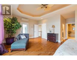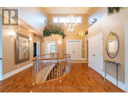 Nestled 2.4km East of Trim Rd, this stunning 3-bed + den, 2.5-bath custom home showcases a mesmerizing waterfront panorama. The foyer leads to a luminous hardwood staircase, unveiling a grand living space perfect for hosting. Highlights include a two-story living room with a gas fireplace, a formal dining area, a well-appointed bar with outdoor access, a media room, and an eat-in kitchen with deluxe amenities. Luxe touches feature granite countertops, dual islands, Monogram appliances, Fisher Paykel dishwashers, and aThermador gas stovetop. Upstairs, the Primary Bedroom boasts dual walk-ins, a lavish en-suite, and a private deck. Also, find two bedrooms, an office, a full bath, and laundry. Outside, a screened-in sunroom opens to a serene patio with a putting green, hot tub connection, lush gardens, and a two-storey garage providing ample space for vehicles and storage. (id:50982)