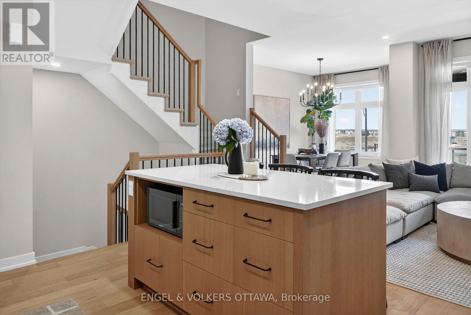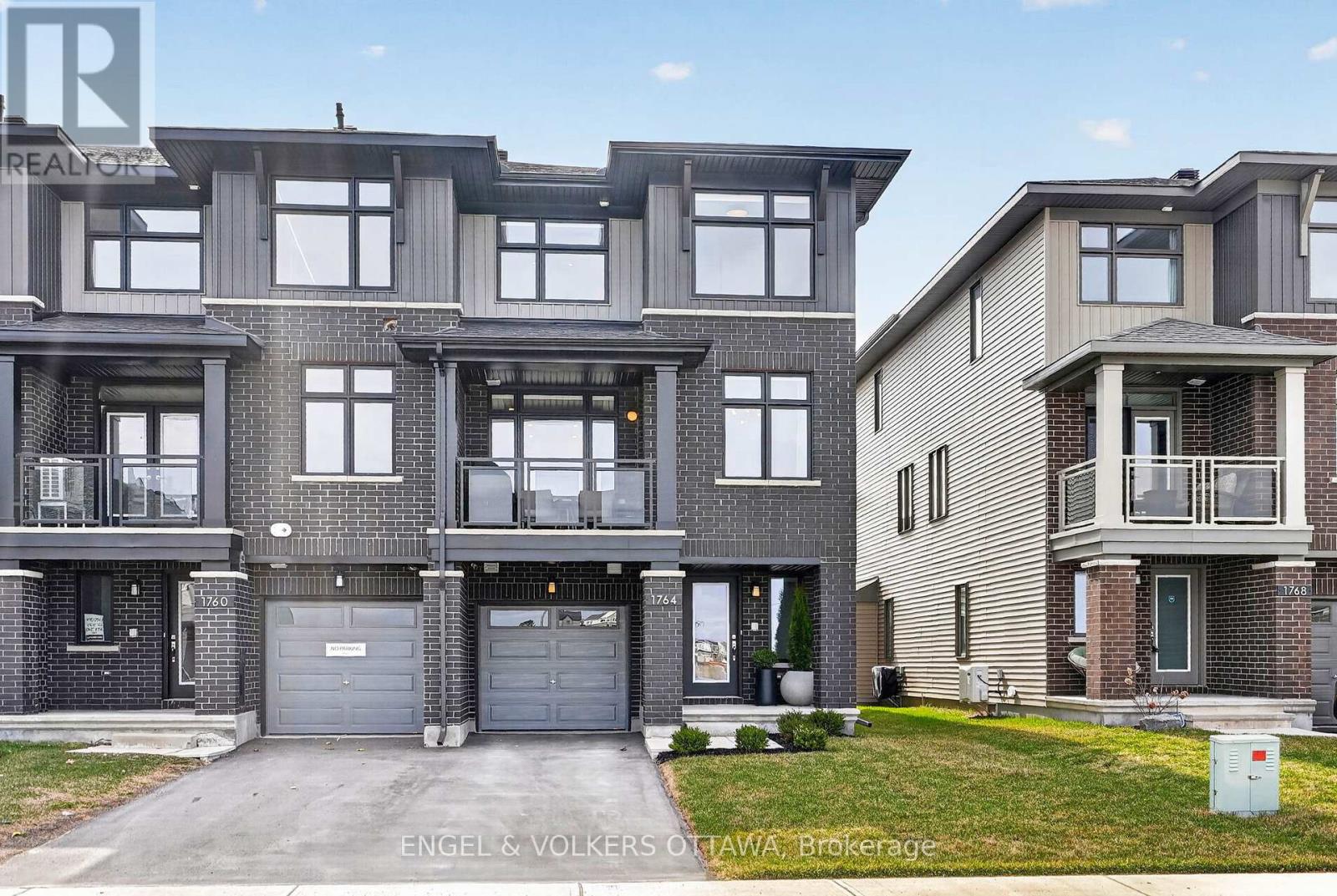 Welcome to 1764 Crux Road, a beautifully upgraded 3-Storey end-unit townhouse located in the highly sought-after Trailsedge community in Orleans. Built in 2024 by Richcraft Homes, this Cambie A model offers 1,350 sq. ft. of thoughtfully designed living space, featuring 2 bedrooms, 2.5 bathrooms, and a partially finished basement. Set on a premium corner lot, this home also boasts an extended driveway accommodating up to 2 vehicles in addition to the single-car garage. No detail has been overlooked, with over $28K in builder upgrades and nearly $20K in owner enhancements since purchase. The main level showcases upgraded hardwood flooring throughout, a hardwood staircase with black metal spindles, and a stunning chef-inspired kitchen featuring extended cabinetry, upgraded quartz countertops, black granite undermount sink, upgraded backsplash, and a large island with decorative side gables. High-end finishes continue throughout with black hardware and faucets, soft-close cabinetry, upgraded tile work in bathrooms and ensuite, and skirted toilets in all three bathrooms. Additional owner upgrades elevate both comfort and functionality, including a Level 2 EV charger (ESA certified), luxury Samsung appliances, custom blinds throughout, upgraded designer light fixtures, a smart WiFi-enabled garage door opener with camera, and professionally installed gutters with a 25-year warranty. The home has also been freshly painted throughout in premium Benjamin Moore Aura paint, adding a clean, modern feel. Ideally located in a growing family-friendly neighbourhood close to parks, schools, trails, and everyday amenities. Avoid the frustration of the building process and enjoy this move-in-ready home that blends modern style, thoughtful upgrades, and exceptional value in one of Orleans' most desirable communities. (id:50982)