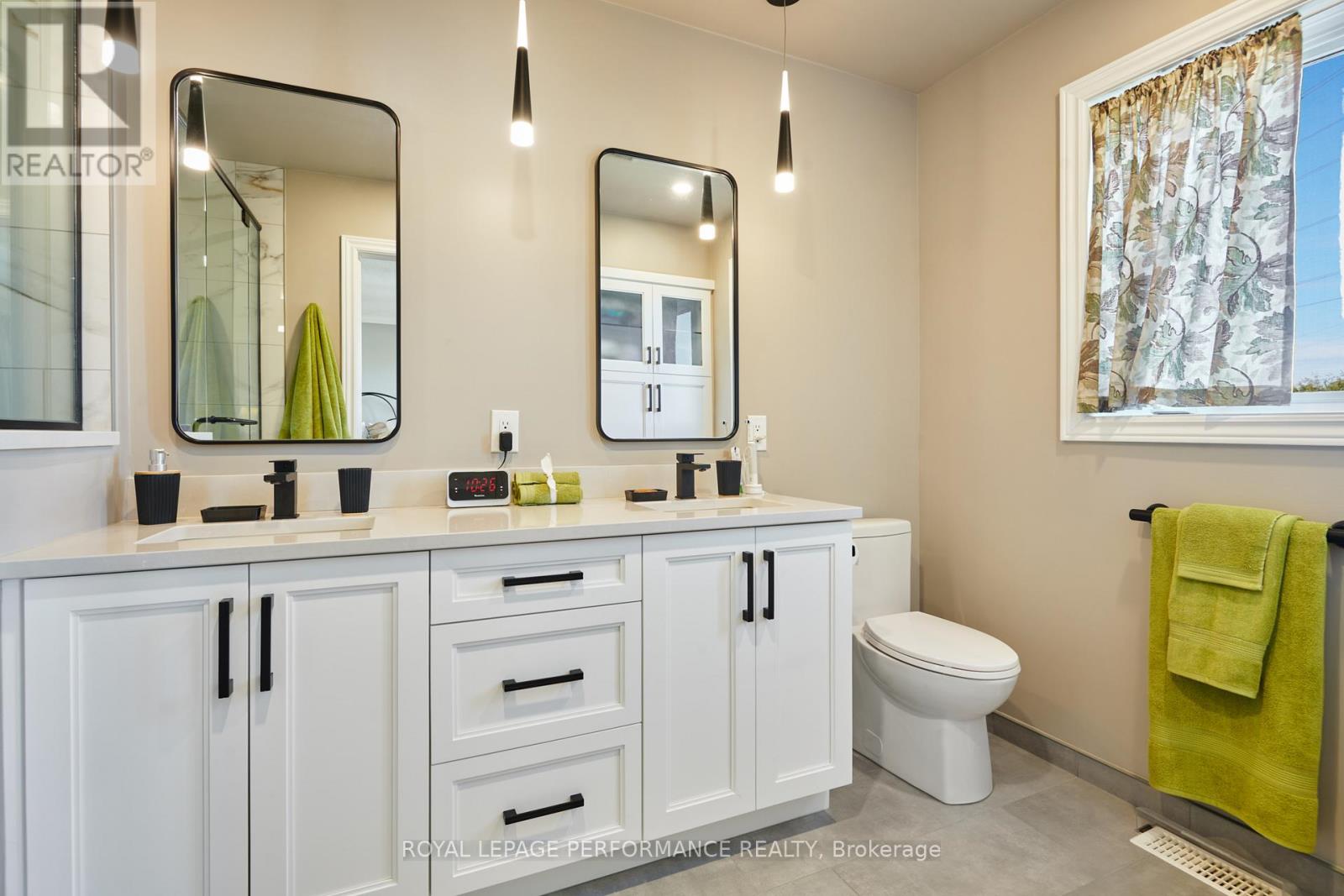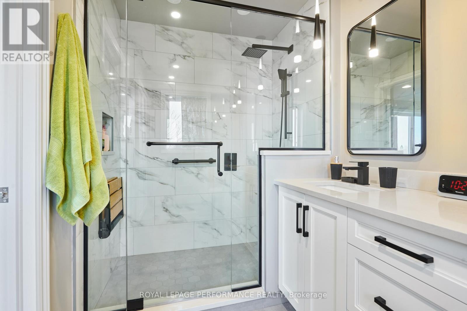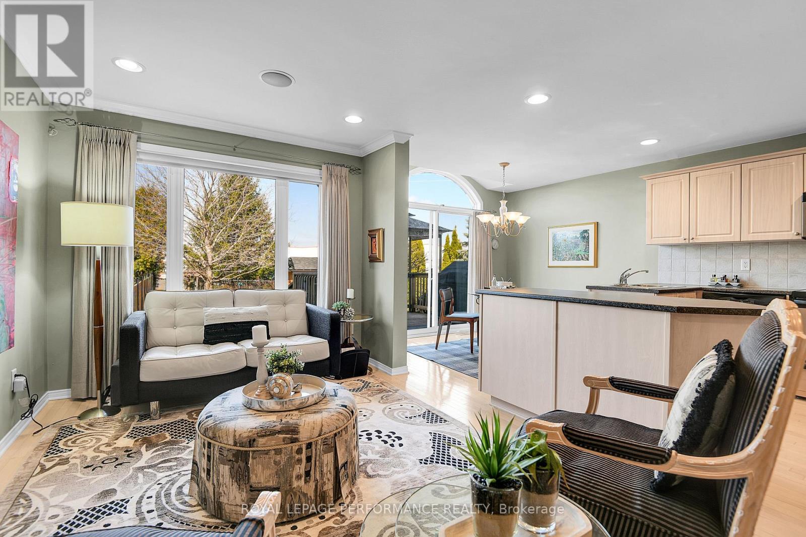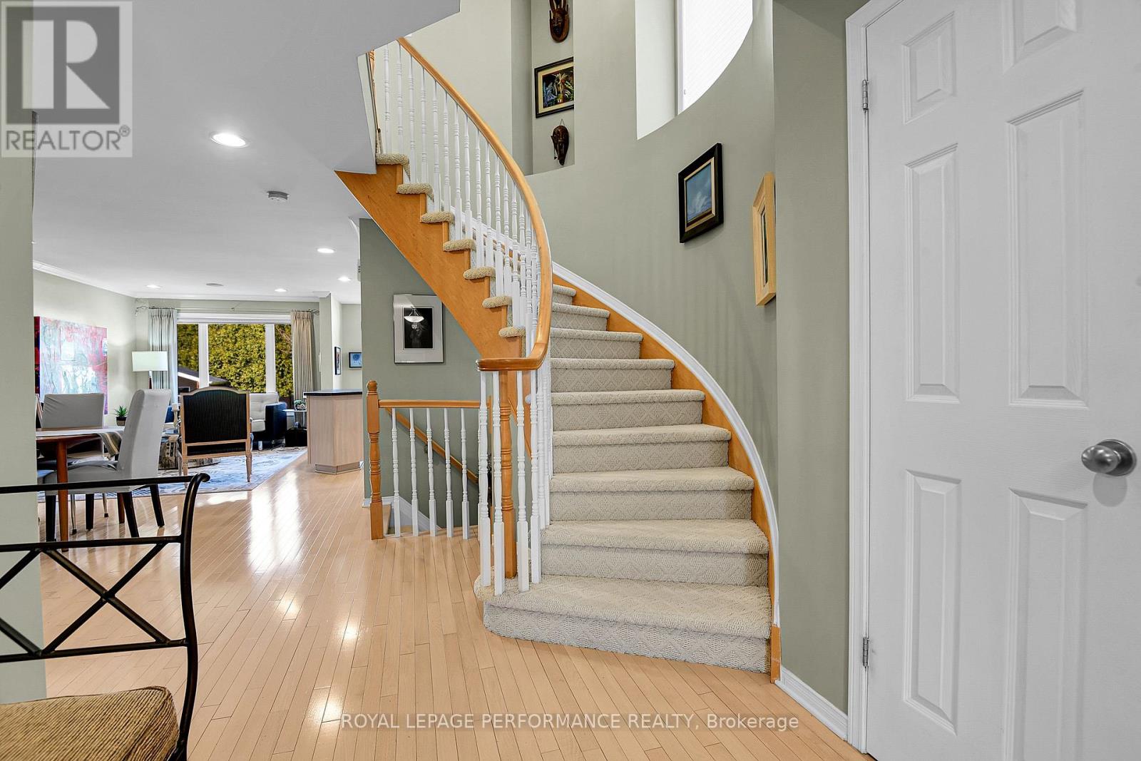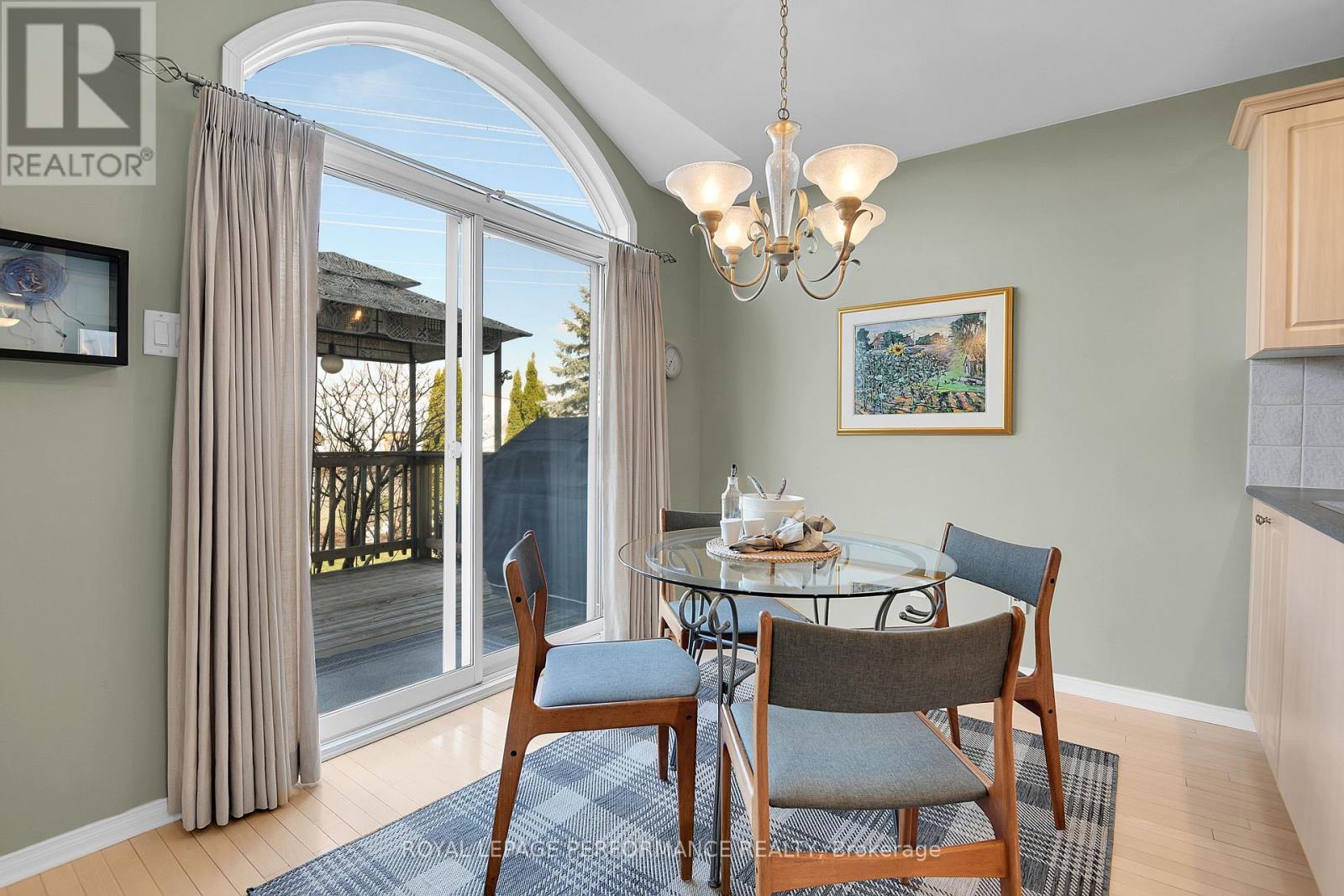 Open House Sunday, April 26, 2-4 p.m. Meticulously maintained semi-detached in the desirable Avalon East neighbourhood. See the pride of ownership from the moment you walk through the door. The open concept main floor is perfect for entertaining or family dinners, featuring a formal living/dining area and a very functional eat-in kitchen. The large windows, beautifully maintained blonde colored hardwood floors and kitchen cabinets create a feeling of tranquility. A striking curved staircase with quality Berber carpet leads you to the second floor. A very generously sized primary bedroom with hardwood floors, a walk-in closet, and an ensuite. The luxury, modern, spa like ensuite was renovated in 2023. The walk-in glass enclosed shower with beautiful 12x24 surround tiles, contrasting black faucets and rain shower head, re-enforced grab bars and pull down bench makes it safe and comfortable for all ages. Beautiful double sink white vanity with a quartz counter top. Two bedrooms and a family bath complete the second floor. The large finished basement allows for not only a family room but also has space for a home office. With quality berber, a gas fireplace and recessed lighting, it is a perfect place to escape or a kids' play area. The pie-shaped, landscaped lot is much larger than it appears from the front of the house. Included is the gazebo on the deck and the shed, including its contents like the lawn mower. Other features: temperature-controlled Nest with 2 monitors, wired for alarm, speakers and central vac. Fence installed in 2018/2022; furnace/AC in 2019; roof (front, side & shed in 2019, back/garage in 2013), washer/dryer in 2014, deck and footings in 2018, front interlock in 2017, storage room, etc. Average utility costs monthly-Hydro $67, gas $73, water/sewer $90 every 2 months. Ideally located close to stores, restaurants, transit and multi-use paths. No back neighbours. 24 hour irrevocable on all offers. (id:50982)