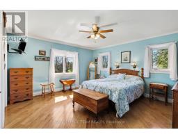 Set on a picturesque acre of waterfront land, this beautiful stone bungalow offers the perfect balance of peaceful rural living and convenient access to Kemptville's amenities. Step inside to a bright, open-concept main level featuring rich hardwood floors and an inviting layout ideal for both everyday living and entertaining. The spacious kitchen provides ample counter space and a generous pantry, while the dining area opens onto a back deck-perfect for enjoying morning coffee or evening sunsets by the water. A sun-filled den or sitting nook boasts plenty of natural light. a great space to relax and take in the serene waterfront views. The main floor includes three well-appointed, soundproofed bedrooms, ensuring comfort and privacy for the whole family. The primary suite is a true retreat, complete with his-and-hers walk-in closets and a luxurious 4-piece ensuite featuring a large soaker tub. Convenient main-floor laundry adds to the home's thoughtful design. The fully finished lower level expands your living space with a bright family room featuring heated floors-ideal for cozy comfort year-round. This level also includes a walkout den to the backyard, a large fourth bedroom, a half bathroom, and abundant storage, including a cold room. Additional highlights include a double attached garage with both interior and exterior access, beautifully landscaped perennial gardens, a charming stone walkway, and a circular driveway that enhances both curb appeal and functionality. This exceptional waterfront property is a rare opportunity to enjoy privacy, space, and natural beauty-without sacrificing proximity to town. conveniences. (id:50982)