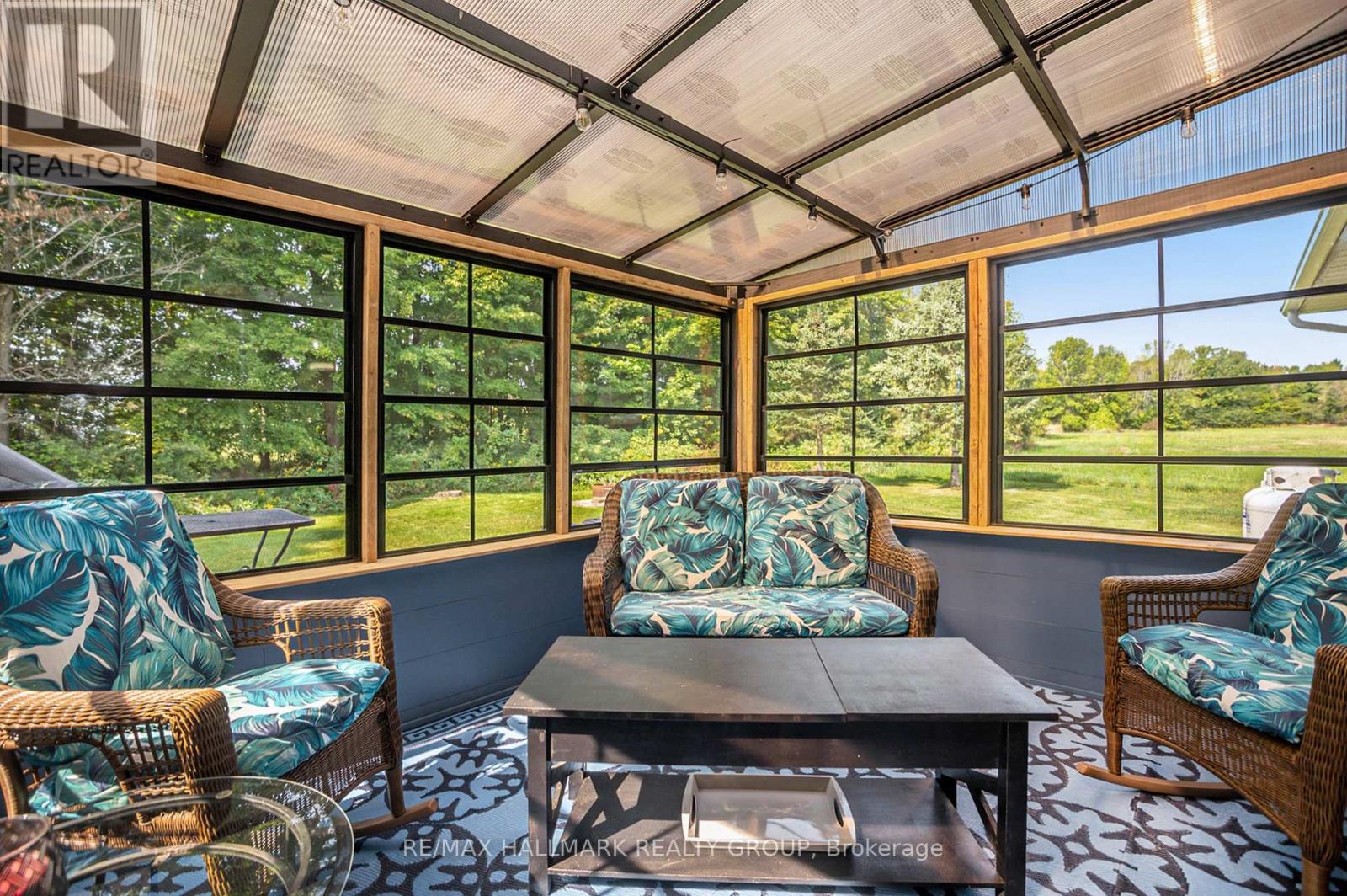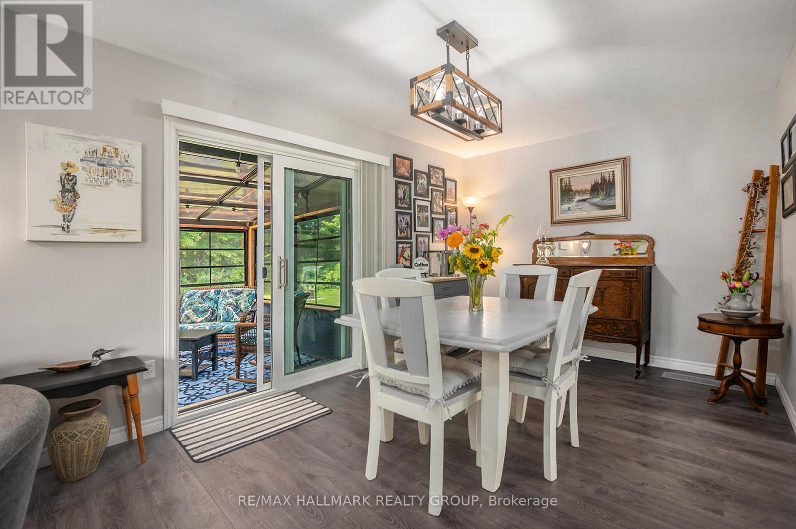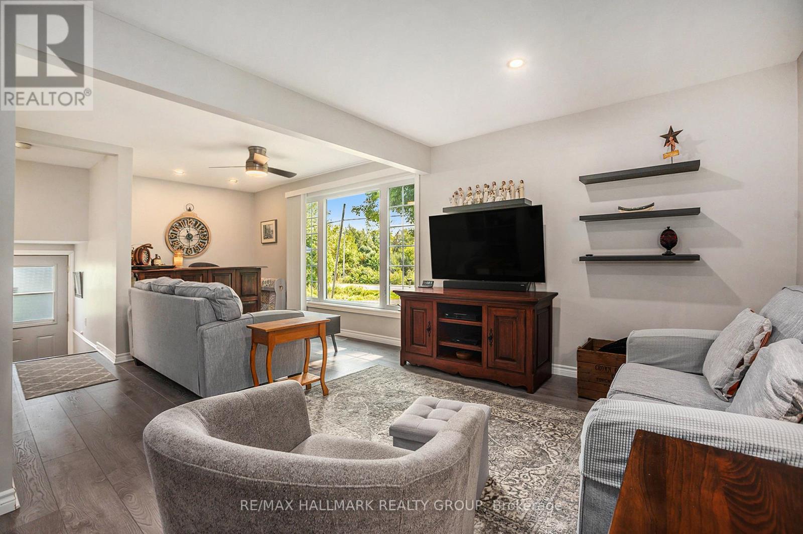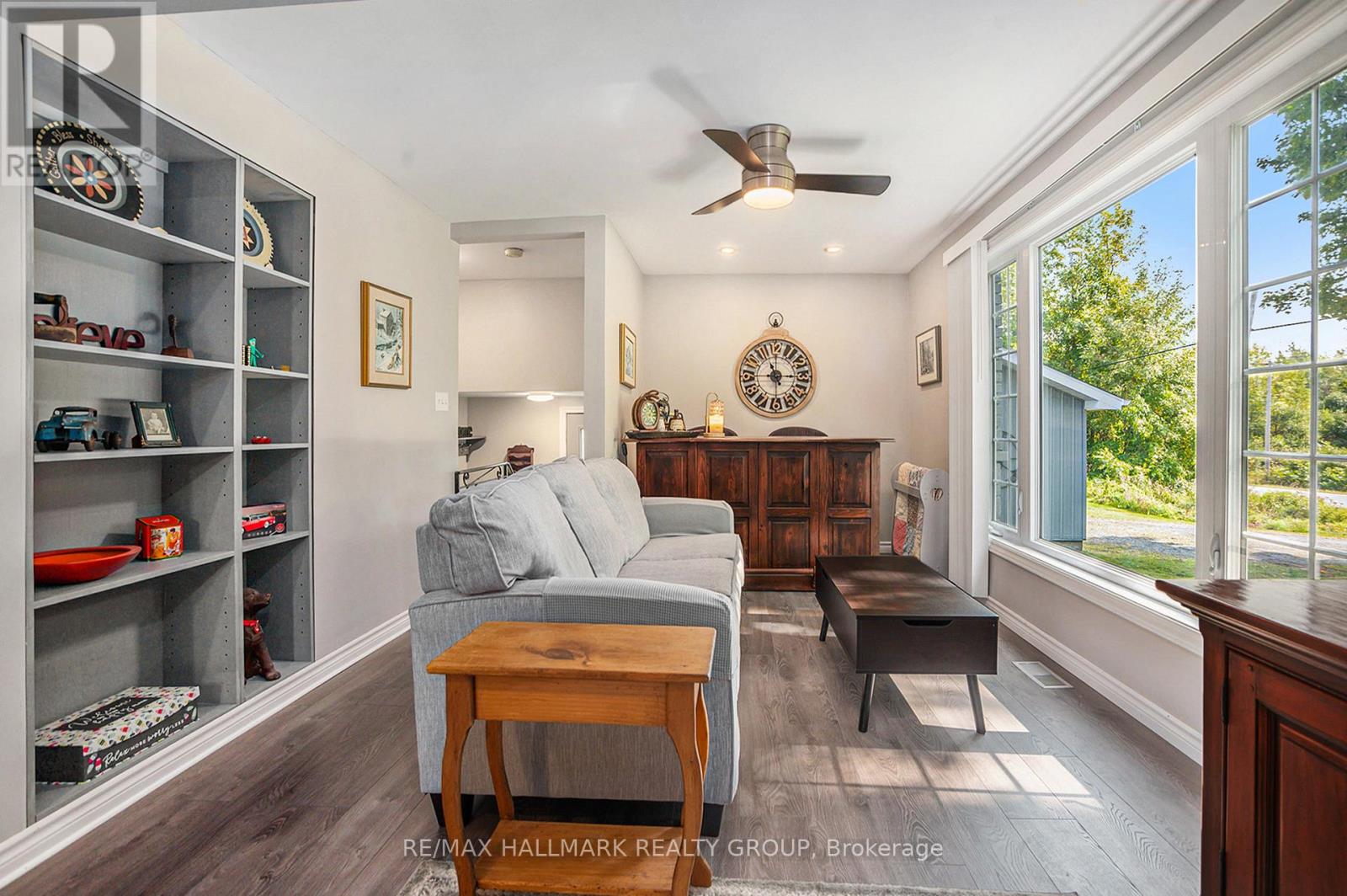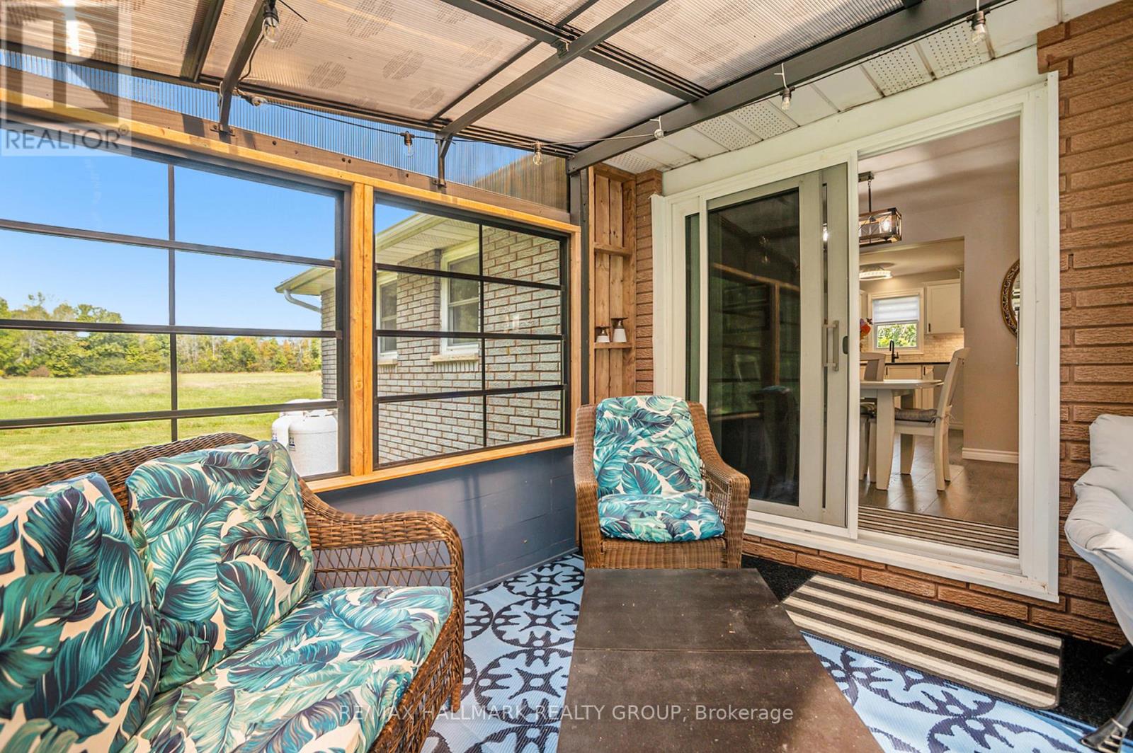 Welcome to your private oasis just minutes from Perth! This beautifully upgraded bungalow is set on a picturesque 2.5 acre lot (+/-) with no rear neighbours and stunning open field views. The main level features a fully renovated custom kitchen with quartz countertops and newer stainless steel appliances (2022), a beautifully updated bathroom, and two spacious bedrooms. A versatile third bedroom/office on the lower level offers flexible living space, with additional lower-level space ready to be transformed into a finished family room or extended living area. Enjoy seamless indoor-outdoor living with a new patio door leading to a bright enclosed sun porch (2025). The detached two-car garage is a standout feature-immaculate and functional, featuring oversized 8' x 9' doors (2023), ideal for larger vehicles, along with additional space for storage and workbench. Recent upgrades include new forced air furnace (2022), shingle roofing, eaves trough on house and garage (2024), updated appliances (2022), full kitchen renovation (2022) and bathroom renovations (2025), patio door and sun porch (2025), and interlock walkway (2025). The home is also equipped with a backup generator connected directly to the house for added peace of mind. A perfect blend of country charm, modern upgrades, and practical living-just minutes to all of Perth's amenities. (id:50982)
