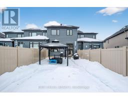 Stunning Claridge Oliver model (built 2021) in sought-after Riverside South! This bright, modern townhome offers 4 bedrooms, 2.5 bathrooms, and a finished basement with a rough-in for an additional bath. The main floor features 9' ceilings and engineered hardwood, with a beautifully upgraded chef's kitchen boasting over $30K in upgrades-an expanded layout with cabinetry extended across the entire back wall for exceptional storage, plus ceiling-height cabinets, a long oversized island, quartz countertops, and stainless steel appliances. Upstairs, enjoy a spacious primary retreat with a walk-in closet and spa-inspired ensuite featuring double sinks, a glass shower, and a deep soaker tub. Quartz countertops continue through all bathrooms. Step outside to a fully fenced backyard with PVC fencing (2022), a patio (2022), and gazebo-perfect for summer entertaining. 2-car driveway with interlock (2022) for the second parking space. Move-in ready with exceptional upgrades throughout! Still under Tarion warranty until Oct 2028! (id:50982)