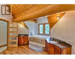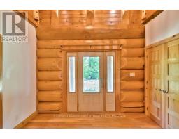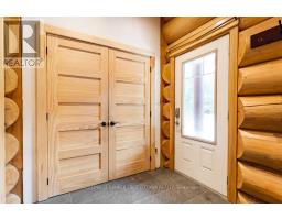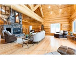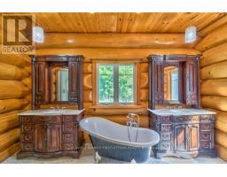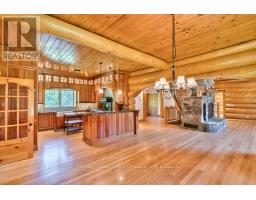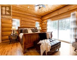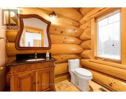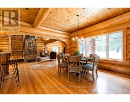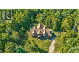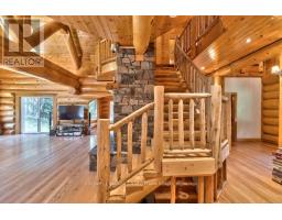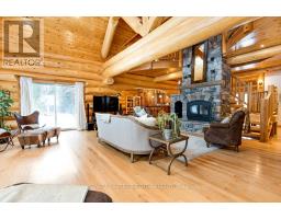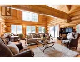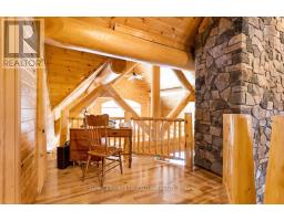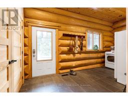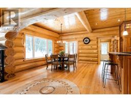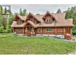 It is so quiet on this 60 acres, you can hear the sound of crickets and songs of birds. The big beautiful sky has Canada geese flying back home and in the evening, starry galaxy. Tucked into all this beauty, quality built log home with amazing spaces. The huge 1ft diameter logs are an architectural marvel, adding solid character. The 4 bedroom, 4 bathroom home has easy flow layout, soaring ceilings, walls of windows with deep sills and floors of select-ash hardwood plus ceramic tile. Front foyer welcomes you with dramatic 22' high ceiling and dream walk-in closet. Great Room showcases majestic two-storey cultured stone fireplace and impressive cathedral ceiling with honey-hued, light-reflecting, beams. Expansive dining room connects Great Room to kitchen and has door to covered verandah. Exquisite kitchen a culinary delight with phenomenal select-cherry cabinetry, Cambria quartz counters, breakfast bar and deep window sills. Added design feature is refrigerator being integrated into the cabinetry. Modern Elmira cookstove makes food prep easier with its four propane burners, three electric burners and electric oven. Main floor generous primary suite offers two walk-in closets and patio doors to the great outdoors; spa 5-piece ensuite has marble floor, marble counters on the two teak vanities, large deep soaker tub and glass shower. On other side of the home is the family-sized mudroom with easy-clean ceramic tile floor, oversized closet and laundry station. Main floor also has powder room. Log staircase leads to second floor landing with flex space. Two extra-large bedrooms share 5-piece Jack & Jill bathroom. Fourth bedroom includes luxury 5-piece ensuite. Outside, the yard provides lots of space for gardening & play. The bunkie need some finishing for guests or, possible studio. The forest backs onto Indian River where, depending on the season, you can canoe to Robbs Lake. Hi-speed & cell service. On township maintained road, 25 mins to Almonte. 45 mins Kanata. (id:50982)