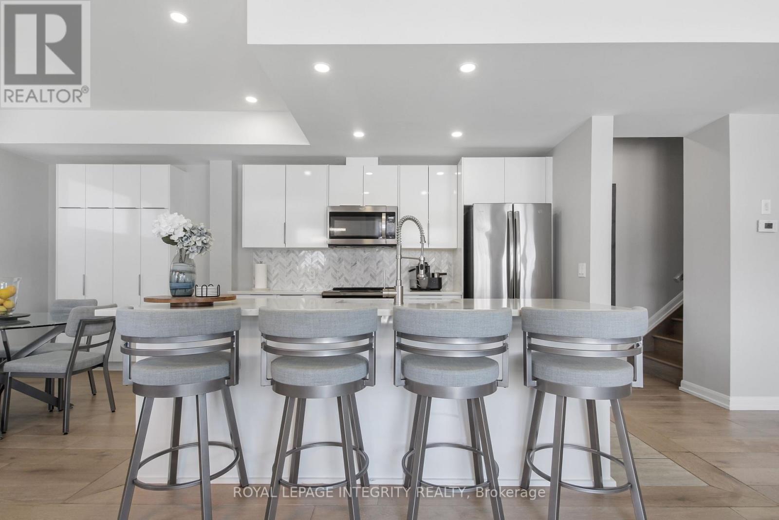 Experience elevated living in this beautifully designed END Unit where style and functionality come together seamlessly. From the moment you enter, you're greeted by a bright, welcoming foyer featuring a versatile office or den and a convenient powder room-ideal for both work and everyday living. The second level offers a thoughtfully designed open-concept layout that effortlessly connects the kitchen, dining, and living areas-perfect for entertaining or relaxing at home. The kitchen is truly the heart of the space, showcasing modern finishes, ample cabinetry, and an efficient layout that balances form and function. Expansive windows fill the home with natural light, creating a warm and inviting atmosphere throughout. Upstairs, the primary suite provides a peaceful retreat, complete with a walk-in closet and a well-appointed ensuite. Two additional bedrooms and a full bathroom offer flexibility for family, guests, or additional workspace. The top level features a stunning rooftop terrace designed for exceptional outdoor living. Complete with greenery, ambient lighting, and a gas hookup for your BBQ, this private space is perfect for entertaining or unwinding while enjoying panoramic views and long summer evenings. Thoughtfully maintained, this home reflects pride of ownership in every detail. The landscaped front yard offers a low-maintenance lifestyle without compromising curb appeal. Ideally located close to schools, shopping, and everyday amenities, this property delivers the perfect blend of comfort, convenience and modern design. A truly exceptional opportunity you won't want to miss. Association fee $121.72/month. Property is video monitored. Open House Saturday April 25, 2026 2-4pm (id:50982)