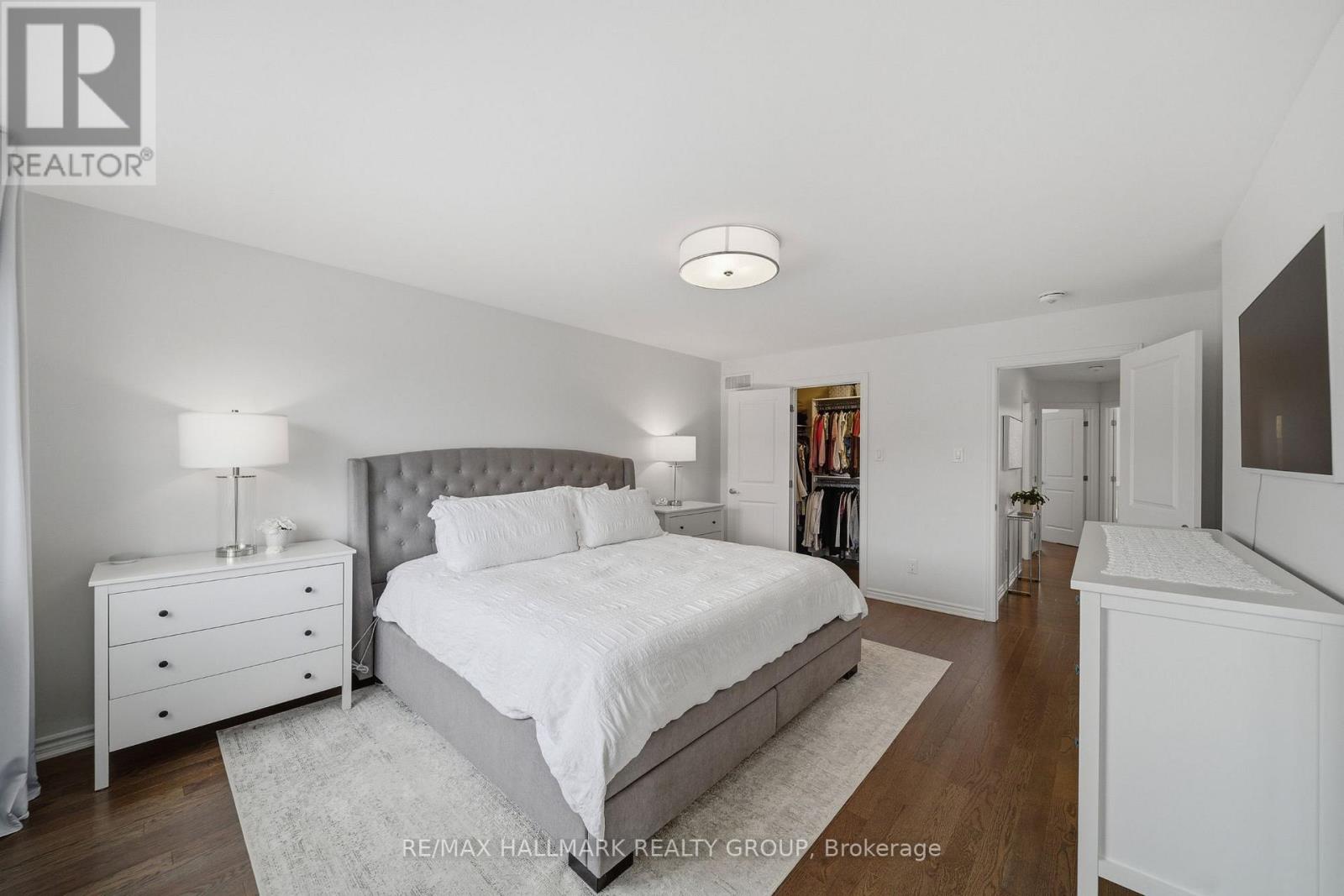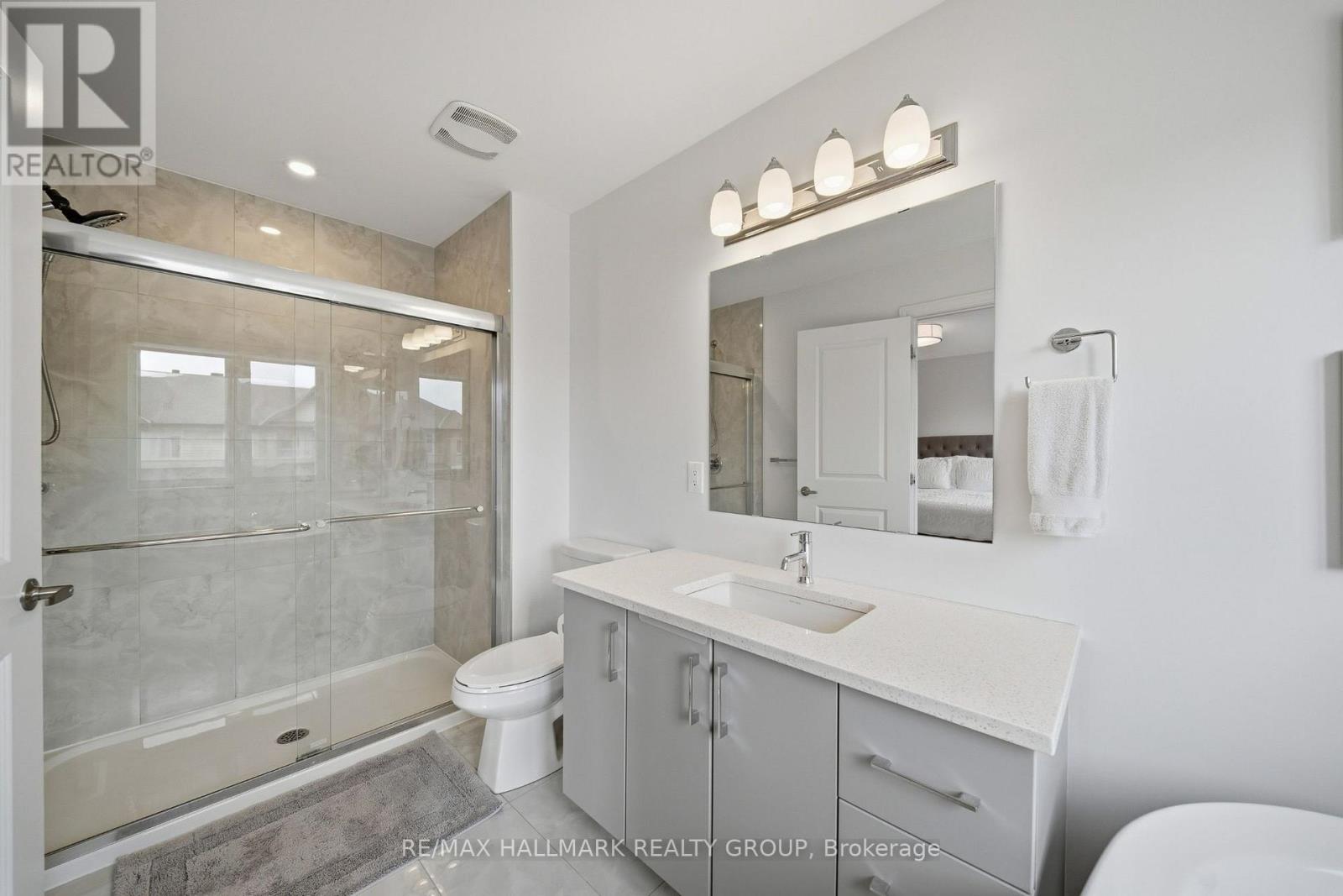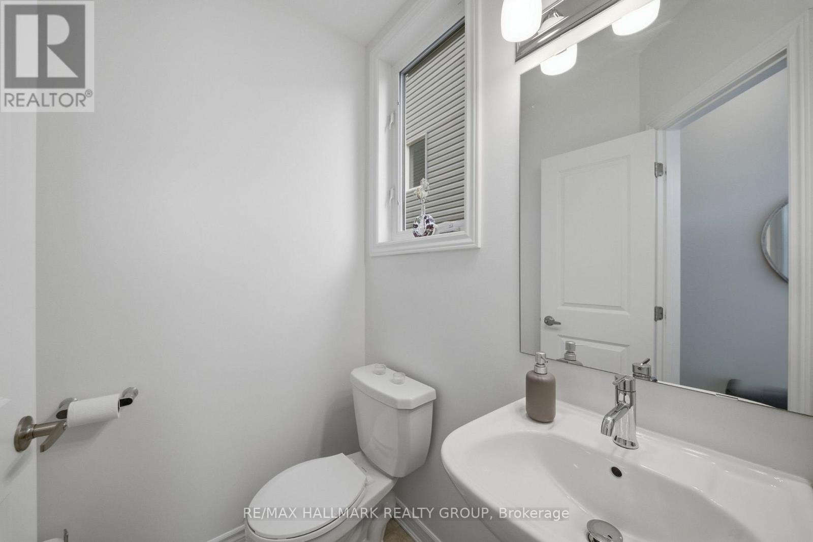 Upgraded 3 bedroom + finished basement end-unit townhome with no rear neighbours, oversized custom deck, and approximately 2,160 sq ft in one of Stittsville's most sought-after newer family communities. Built in 2020, this move-in ready home offers modern construction, premium finishes, and a rare amount of privacy for townhouse living. The main level features rich hardwood flooring, designer wall moulding details, gas fireplace, bright open-concept living, and a functional kitchen with extended cabinetry, pantry storage, and direct access to the backyard. Upstairs, hardwood continues throughout the hall and bedrooms, including a spacious primary retreat with walk-in closet and ensuite bath. The fully finished basement adds exceptional flexibility with a large rec room ideal for movie nights, home gym, office space, or playroom.Outside is where this property truly separates itself: no rear neighbours, open sightlines, a substantial custom-built deck, and added side-yard feel only an end unit can offer. Located near parks, walking paths, schools, recreation, and everyday shopping with quick access to Hazeldean, Terry Fox, and Highway 417. A rare combination of size, privacy, upgrades, and location. (id:50982)
