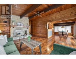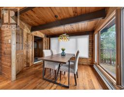 Open House Sunday 2-4pm. Exceptional retreat w/warm wood accents throughout interior, positioned with unobstructed water views on a premium in the ultra-private and sought after majestic Dunrobin Shores...where every day feels like an escape to nature's most peaceful and inspiring landscapes! From the moment you open the door, the craftsmanship and warmth of the home are unmistakable, with its rich cedar, exposed beams, and inviting architectural character that blends rustic charm with modern comfort. Note the renovated kitchen and bathroom! A spectacular 37-foot deck spans the entire length of the home, offering panoramic views of the Ottawa River and the Gatineau Hills-an ideal setting for morning coffees, golden sunsets, or gatherings with family and friends. Inside, wall-to-wall windows flood the interior with natural light, while the stunning floor-to-ceiling stone wood-burning fireplace becomes the heart of the home and a retreat year round. Numerous updates enhance the property, including a beautifully redesigned kitchen featuring sleek, modern cabinetry, stone countertops, and high-end appliances that make cooking a pleasure. A cozy four-season room which had been used as an office and a bedroom overlooks the front gardens. The walkout lower level expands your living space with a bright recreation room, bathroom, and workshop, along with a spacious patio door leading to the covered lower deck, where you can unwind rain or shine in either the soft tub... ready for use... or enjoy a quiet sitting area with a coffee and a book! Meticulous landscaping, mature trees, and thoughtfully curated gardens surround the entire property, creating a sense of tranquility and privacy rarely found so close to city conveniences. Located on prestigious Barlow Crescent-one of Dunrobin's most sought-after addresses-this home stands as one of its finest offerings, merging the very best of country living with easy access to every amenity. 20 Minutes to Kanata High Tech! (id:50982)