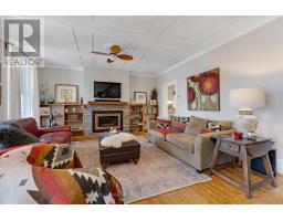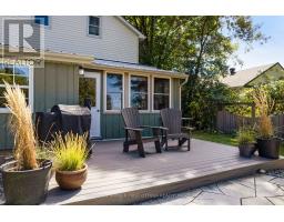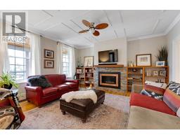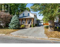 A minute's walk down the street from this home in Perth, is the Tay River. Besides location, the home itself is a happy delight with solid character. From classic veranda to large fenced yard, you have country charm - in town. The big covered veranda has welcoming front door with wide etched glass side panels and transom. Inside, the three bedroom home is all renovated with care and quality. Oak hardwood floors flow thru-out, featuring scratch-resistant finish. Living room coffered ceiling with lovely centre medallion; built-in shelves frame handsome Ledger stone fireplace with efficient gas insert. Dining room also has fireplace, with woodstove insert. Updated with style, the 2023 kitchen offers custom cabinetry, granite countertop with leather finish; textured subway tile backsplash; under counter light; two-door refrigerator & 5-burner stove. Powder room combined with laundry centre with more custom cabinetry. Wonderful three-season sunroom exposed post & beams and wrap-about windows with built-in blinds. Mudroom improves family organization with built-in shelves, and two closets. The staircase is a showpiece of tradition, fine woodworking and decorative accents. Upstairs are three bedrooms, including primary with three closets. The 4-pc bathroom has ceramic plank tile floor, marble vanity, soaker tub/shower and linen closet. Basement is utility area with 6' high ceiling and insulated walls that are drywalled. New plumbing in basement part of the new sewer line to street. Home's numerous upgrades include new 2025 natural gas furnace with humidifier, new 2020 central air conditioner and all new 2017 windows. Attached single garage has inside entry, tongue&groove walls, concrete floor and yard door. The backyard retreat includes composite deck and flagstone patio.Yard all fenced and landscaped with trees & gardens. Beyond the yard is huge green playground that further back, adjoins the public school. You can also walk to all amenities, downtown shops & restaurants. (id:50982)
