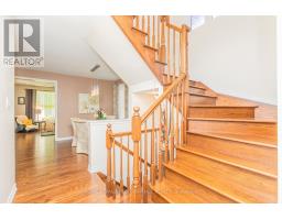 Welcome to a rare find! This beautifully maintained 4-bedroom home sits on a premium lot with no rear neighbours and backs directly onto the tranquil, mature trees of Maplewood Park. Offering both privacy and peaceful surroundings, its a true retreat in the city. Inside, you'll find oak hardwood floors throughout the main level, 9-foot ceilings, and a warm, inviting layout. The living room features a cozy gas fireplace, and the separate dining area is perfect for family gatherings or entertaining guests. The spacious kitchen includes granite counters, plenty of cabinetry, a central island, and direct access to the backyard through patio doors. A large main floor den provides the perfect space for a home office or flex room. Upstairs, the primary bedroom features a generous walk-in closet and a luxurious 4-piece ensuite. Three additional bedrooms - two with their own walk-in closets - offer great space and functionality for growing families. A second full bath completes the upper level. Step outside to a fully fenced, landscaped backyard featuring a private gazebo with a heat lamp, a handy shed, and unobstructed views of the forest - perfect for year-round enjoyment. Located in a family-friendly neighbourhood and close to schools, parks, and green space, with quick access to both Hwy 416 and 417. Don't miss your chance to experience this one-of-a-kind setting - book your showing today! (id:50982)