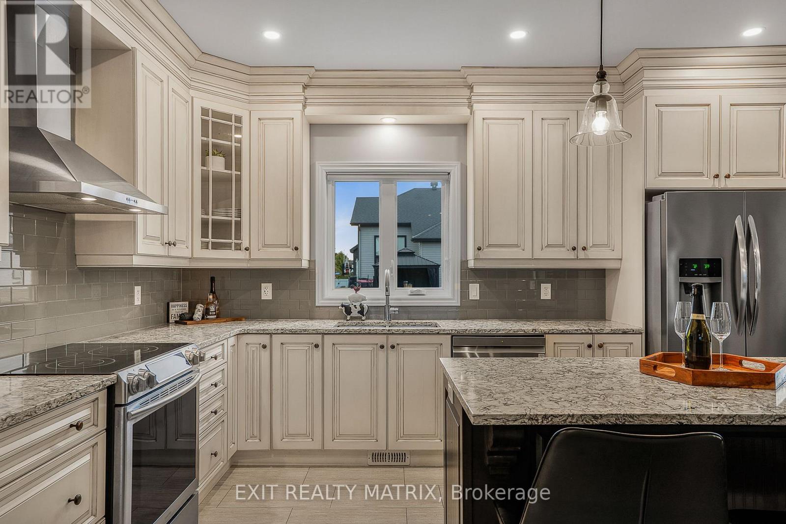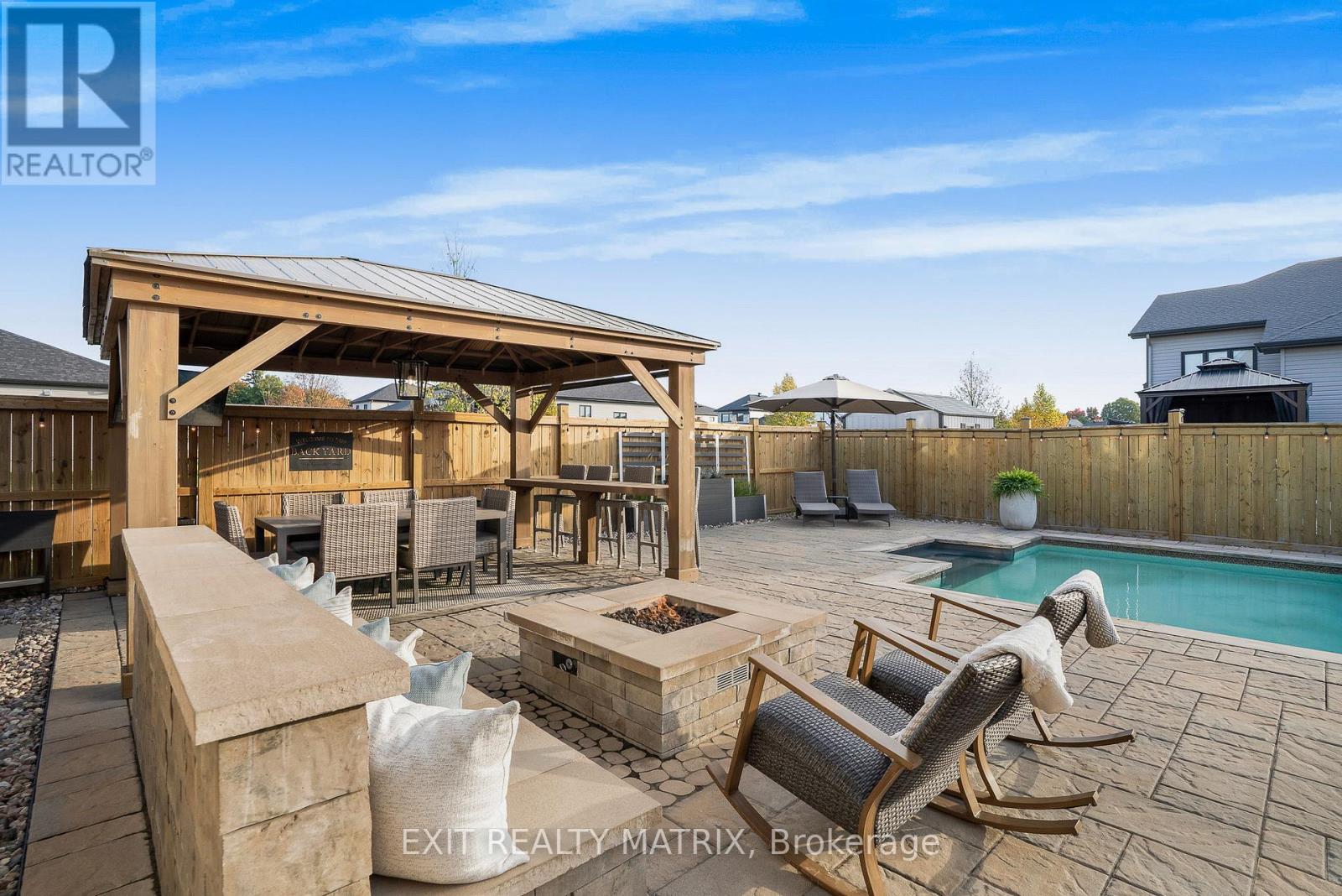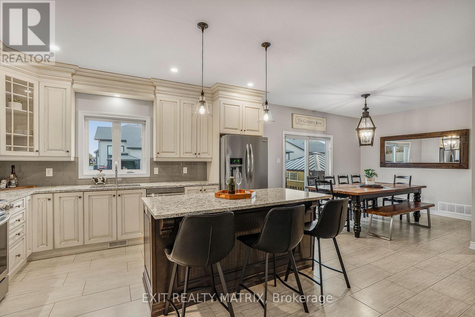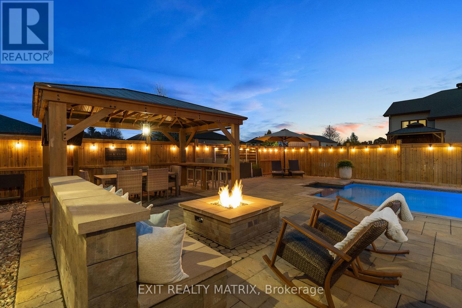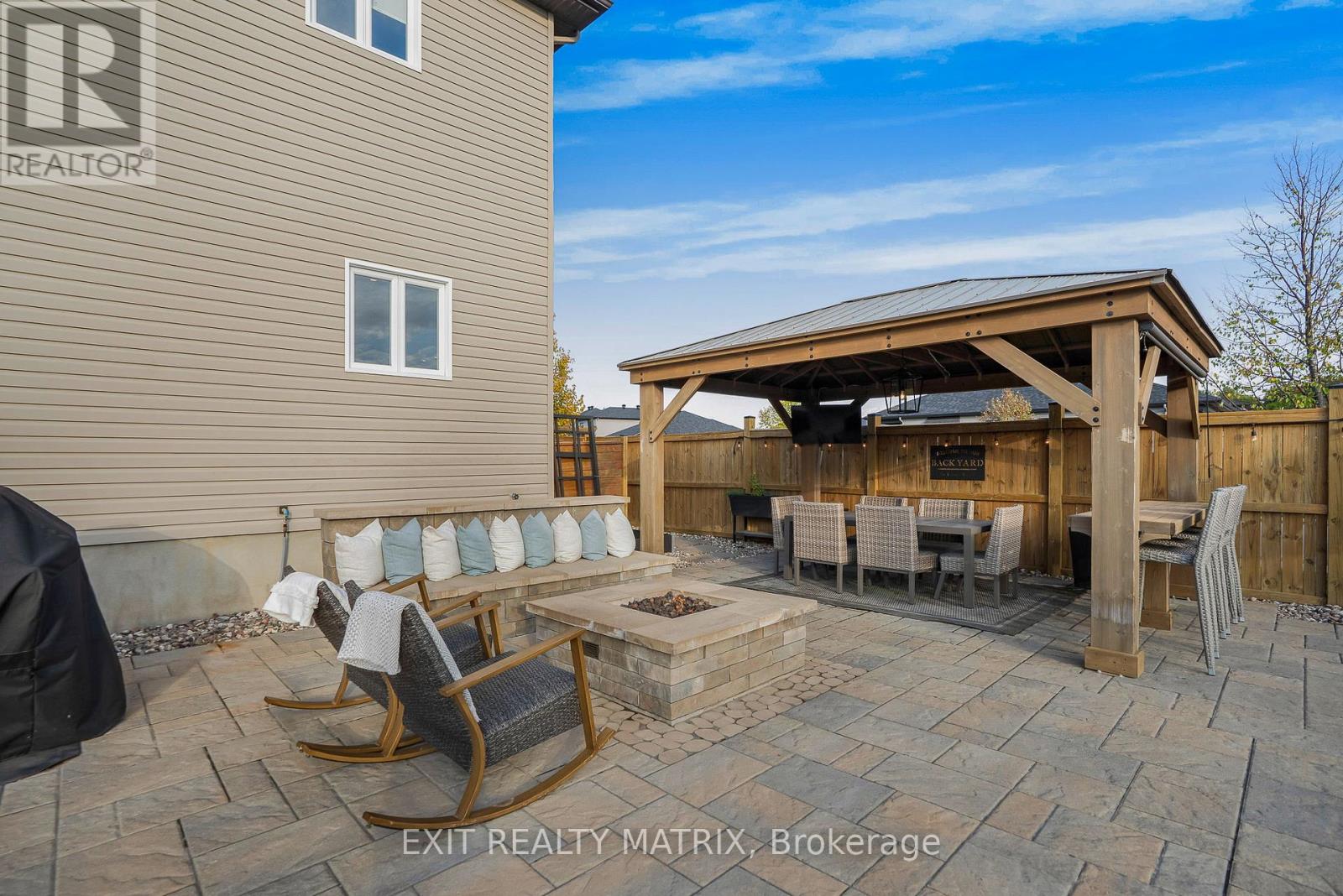 Located just 30 minutes from Ottawa and the downtown core, this beautifully updated two-storey home in the heart of Embrun offers the perfect balance of small-town charm and city convenience. Enjoy the space, privacy, and strong sense of community while staying easily connected for work, dining, and entertainment. Offering 4+1 bedrooms and a host of modern upgrades, this property combines timeless charm with modern comfort. The main level is thoughtfully designed, featuring a bright and inviting living room with a cozy gas fireplace and a chef-style kitchen with a center island, pantry, and abundant cabinetry. The seamless flow between spaces makes it perfect for family gatherings and hosting guests. Upstairs, the spacious primary suite includes a walk-in closet and ensuite. The finished basement expands the living space with oak stairs, a stylish wet bar, and a second fireplace - an entertainer's dream. Step outside to your private backyard retreat. This fully landscaped corner lot showcases a heated saltwater inground pool, hot tub, two gazebos, natural gas outdoor fireplace, gas BBQ hookup, and interlock with firepit and seating. The front yard was refreshed with new interlock and landscaping, adding striking curb appeal. Other updates include a modern laundry room and many thoughtful upgrades throughout, ensuring comfort and peace of mind. Every detail reflects pride of ownership and care. This is a rare opportunity to own a gorgeous home in excellent condition, offering elegance, lifestyle, and exceptional entertaining spaces in a growing, sought-after community. (id:50982)