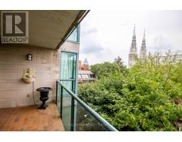 Enjoy this urban lifestyle in the low rise building, "Gallery Court". Just steps from restaurants, Parliament Hill, ByWard Market, Gatineau, Rideau Centre, Rideau Canal Lebreton, Zibi & NAC. This area is Ottawa's largest entertainment & tourist area. 1 bedroom condo features a foyer with double closet, ceramic floor & pot lights. Living/Dining room combination with overhead moon chandelier, hardwood floors & sliding glass doors to the covered private balcony that overlooks Notre Dame Basilica. Step-saver kitchen features double sinks, granite counter top & open pass through to the dining room. Spacious bedroom with hardwood floors & double closet. A 4pc bath with whirlpool tub, theatrical bar lighting and mirror above the modern sink. Ideal pied a terre for a couple or professional. Enjoy this vibrant lifestyle. No smoking or pets. (id:50982)