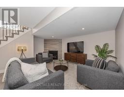 Impressive Beckwith model end-unit townhome offering over 2,000 sq ft of well-designed living space. Ideally located with no direct front-facing neighbors, this home offers added privacy and extra parking options. The main floor features a stylish kitchen with quartz countertops, an oversized island with breakfast bar, and plenty of prep and storage space-perfect for both everyday living and entertaining. The open-concept layout flows seamlessly into the bright and spacious living and dining areas, ideal for hosting family and friends. Upstairs, the primary bedroom serves as a private retreat with double-door entry, a generous walk-in closet, and a large ensuite bathroom. Three additional well-sized bedrooms are located on the second floor, including one with vaulted ceilings that adds charm and character. Second-floor laundry adds everyday convenience. The fully finished basement extends the living space with a cozy family room featuring a fireplace, a full bathroom, and a versatile flex room currently being used as a fifth bedroom-ideal for guests, a home office, gym, or extra storage. Located close to William Bradley Park, walking paths, schools, and local amenities, this home offers exceptional space, functionality, and a fantastic location-an ideal fit for growing families or anyone looking for flexible living space in a desirable community. (id:50982)