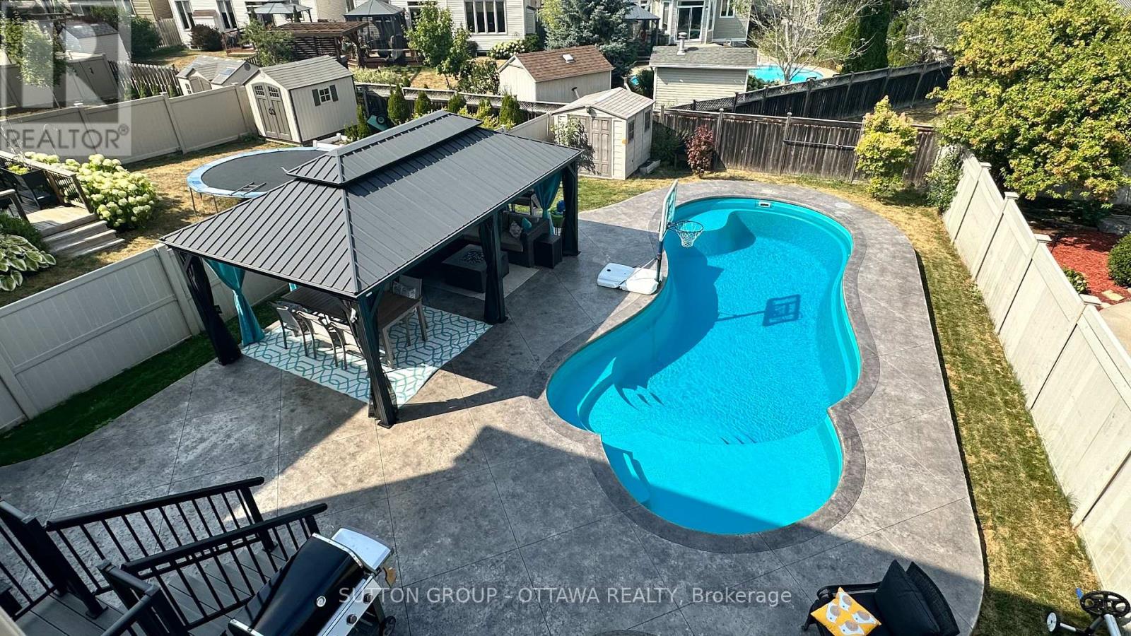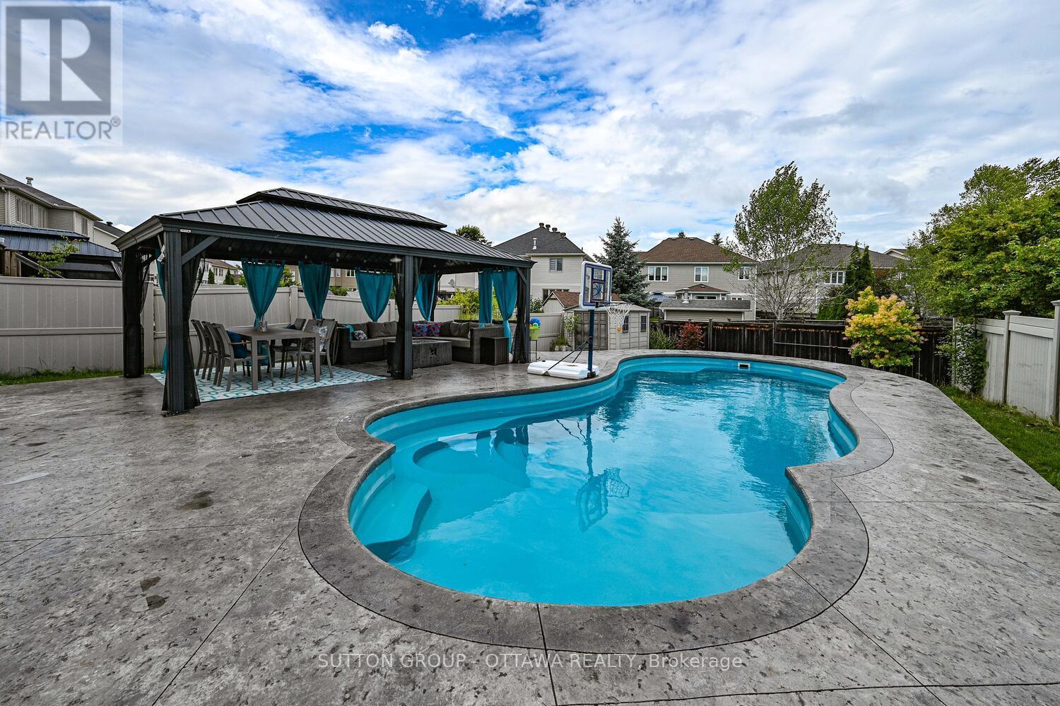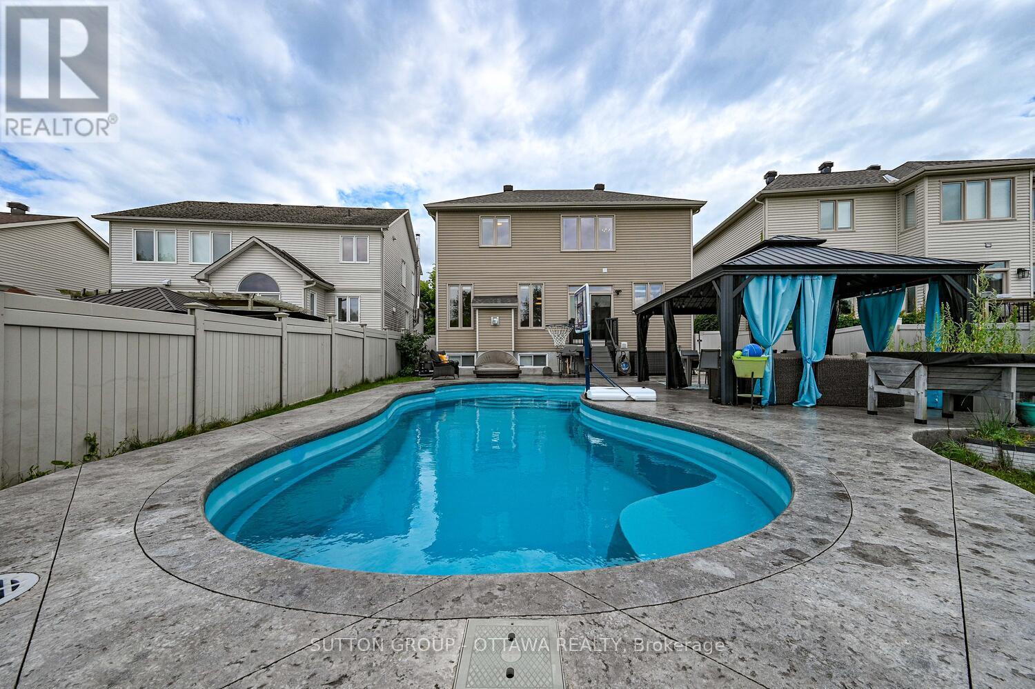 ***NEW PRICE***Ever get that FOMO feeling? Well, you're not going to want to experience that with what will be your next home. Welcome to this beautifully upgraded 4-bedroom, 4-bathroom detached home nestled on an oversized lot in the heart of Stittsville. With many recent updates and almost 3400 sq ft of total living space, this home is truly move-in ready and built for modern living.The main level features engineered hardwood flooring (2025) and a bright, functional layout ideal for family life and entertaining. Stylish and practical kitchen features updated appliances including stove (2025), dishwasher (2023), fridge (2020), tons of storage space, a pantry, and an eat-in area. The carpeted staircase (2025) leads to a spacious second floor, also finished in hardwood, where you'll find four perfectly-sized bedrooms (including a primary suite with walk-in closet and private 4-piece ensuite), and laundry room with new washer and dryer (2024). Downstairs, enjoy a custom theatre room for those amazing family movie nights, a home gym area (AV equipment included), and rec room, offering plenty of space for fun and relaxation. Step outside to your private backyard oasis, complete with a gorgeous in-ground salt water and heated pool (Leisure Pools Eclipse 35 fiberglass pool), stamped concrete deck (2018), huge gazebo, and ample space to entertain or unwind. Major upgrades include: 200-amp service (2018), central A/C (2022), tankless hot water unit (owned - 2017), newer roof (2022), brand new front door (2025), upgraded garage door (2017), EV-ready garage with two level 2 plugs. Located near parks, amazing walking trails, top-rated schools, public transit, and all the amenities that make Stittsville so desirable, this home offers the perfect mix of luxury, comfort, and convenience. Your next home is right HERE at 329 West Ridge Drive - book a showing to see it today! (id:50982)
