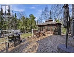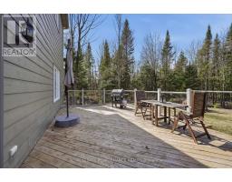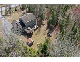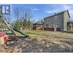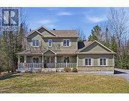 Beautiful custom-built home set on an exceptionally private 1.68-acre treed lot, offering peace, tranquility, and a truly serene natural setting. Surrounded by mature trees, this property delivers the perfect blend of privacy and outdoor living.The exterior features a charming covered wrap-around porch and a spacious cedar deck complete with a gazebo-ideal for relaxing or entertaining while enjoying the surrounding landscape.Inside, the open-concept layout showcases a stunning custom kitchen with a large island, stone countertops, walk-in pantry, and abundant storage. Stainless steel appliances, including a gas stove, provide both style and functionality, making this space perfect for everyday living and hosting.This home is loaded with upgrades, including 9-foot ceilings and a striking propane fireplace that creates a warm, inviting atmosphere. Additional features include durable CanExel siding, a premium water treatment system with potable water, tri-zone electric forced air heating, leaf gutter protection, generator readiness, and a cell signal booster for modern convenience. Bell Fibe high-speed internet is available.The fully finished basement offers additional living space and serves as an ideal children's playroom or family recreation area.Located on a quiet dead-end road, this property offers excellent curb appeal and direct access to nearby ATV and snowmobile trails-perfect for outdoor enthusiasts. All bedrooms feature walk-in closets, and hardwood flooring runs throughout, adding timeless elegance and continuity.Recent updates include a new furnace (2022), a beautifully renovated ensuite (2024), and fresh paint throughout the main floor, staircase, and second-floor hallway (2026). ****24 HOUR IRREVOCABLE ON ALL OFFERS**** (id:50982)