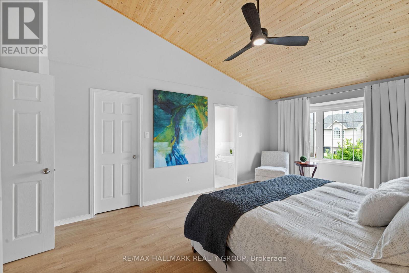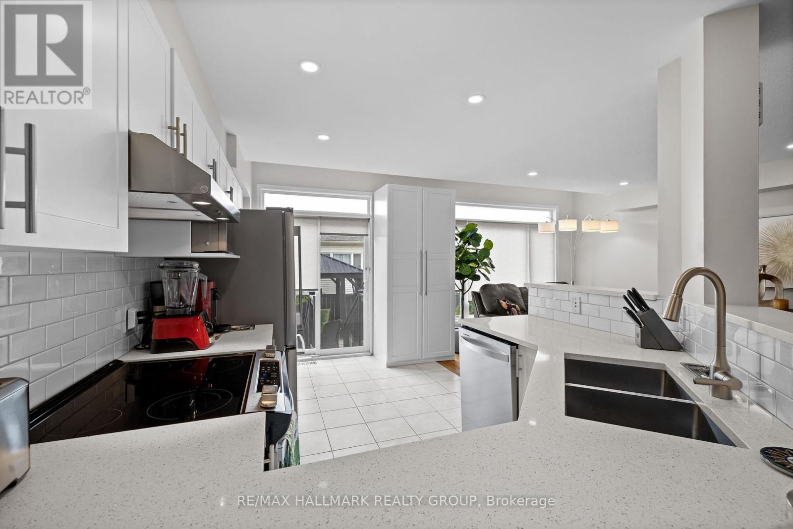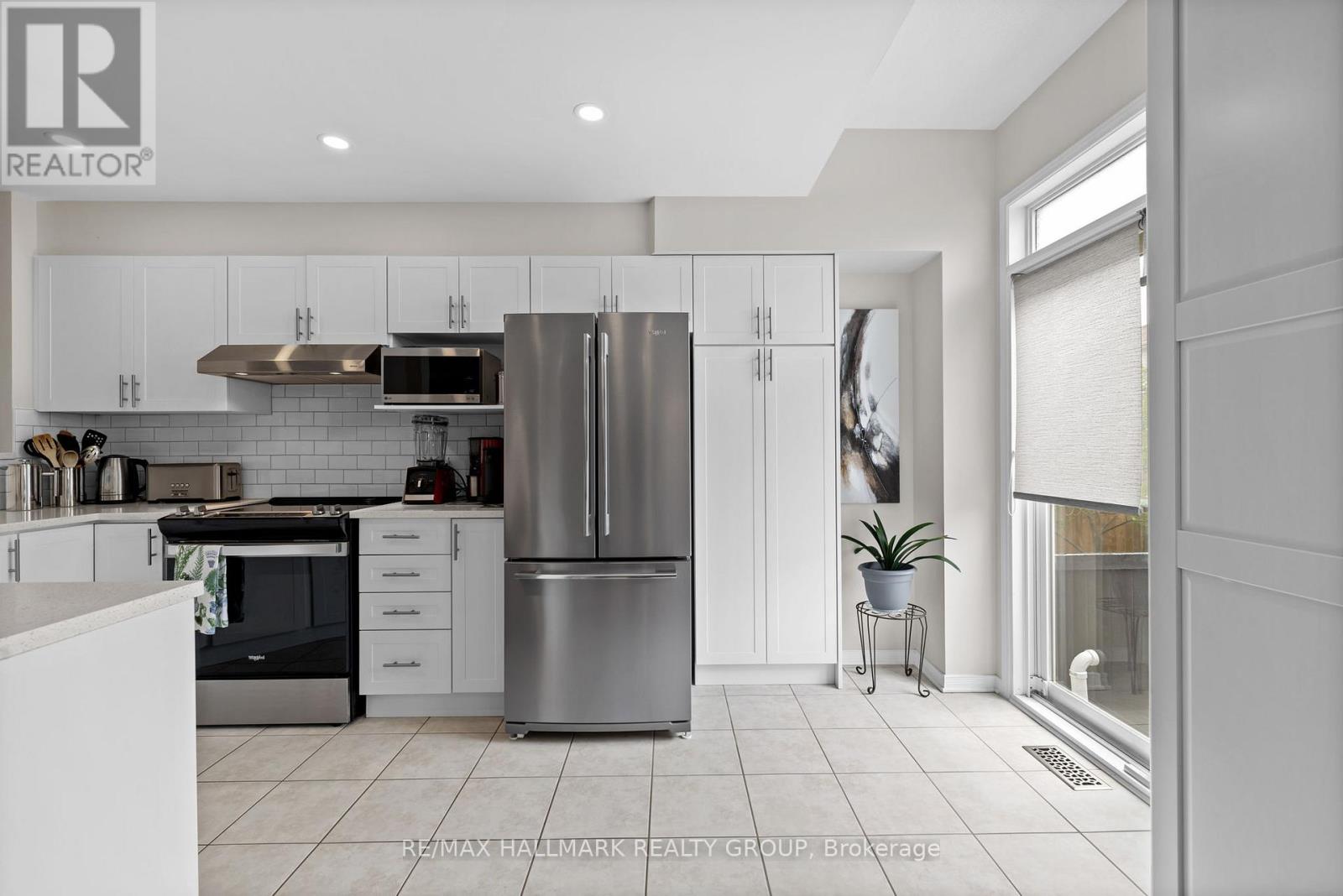Beautifully maintained and spacious townhome in the sought-after community of Kanata South! This fully finished 3 bedroom, 2.5 bathroom home offers bright, open-concept living with thoughtful modern updates throughout. Step inside to a large and welcoming foyer that leads into the main level, where hardwood floors, pot lights, and oversized windows create a warm and inviting atmosphere filled with natural light. The updated kitchen features sleek quartz countertops, stainless steel appliances and refinished cabinetry. Enjoy ample counter space, cupboards and a pantry to meet all your family's everyday needs. The living room features a cozy gas fireplace, while the dining area provides space for family gatherings. Upstairs, you'll find three generously sized bedrooms, including a huge primary retreat complete with a walk-in closet, two additional wardrobes and a private ensuite bath with quartz countertops and a separate soaker tub. The stunning vaulted pine wood ceiling adds a unique and elegant touch to the space. Two additional bedrooms offer flexibility for family, guests or a home office, while a full bathroom and two linen closets complete the upper level. The fully finished lower level provides even more versatile living space, ideal for a home theatre, gym or potential additional bedroom. Also includes plenty of storage and a rough-in for a future 3-piece bathroom. Outside, the landscaped and fully fenced backyard is perfect for relaxing or entertaining. Enjoy summer days on the deck, complete with a gazebo and privacy screens ideal for BBQs and hosting family and friends. approx. 2,000 sqft of living space. Ideally located close to parks, schools, shopping, restaurants, groceries, and public transit. Turnkey living in a family-friendly neighbourhood. Lots of updates! See feature sheet attached. Furnace 2025, A/C 2024, Humidifier 2024, Roof Shingles 2022. 24-hour irrevocable on all offers, Schedule B & Disclosure of interest to be included with offers. (id:50982)