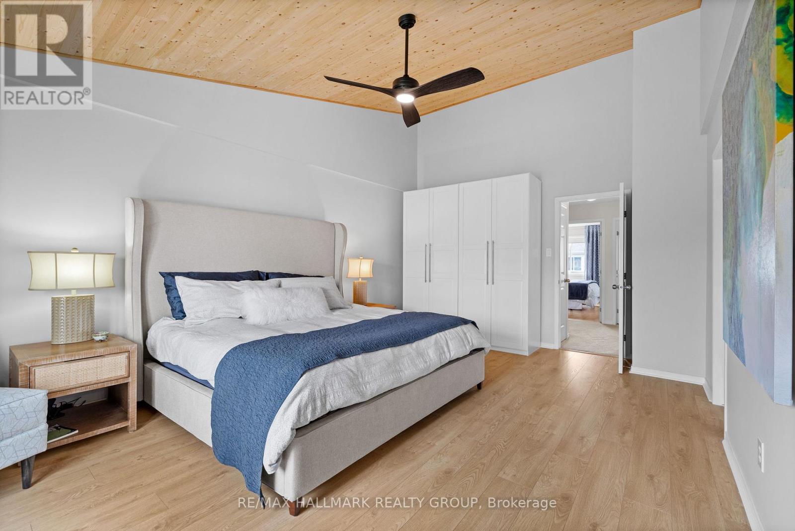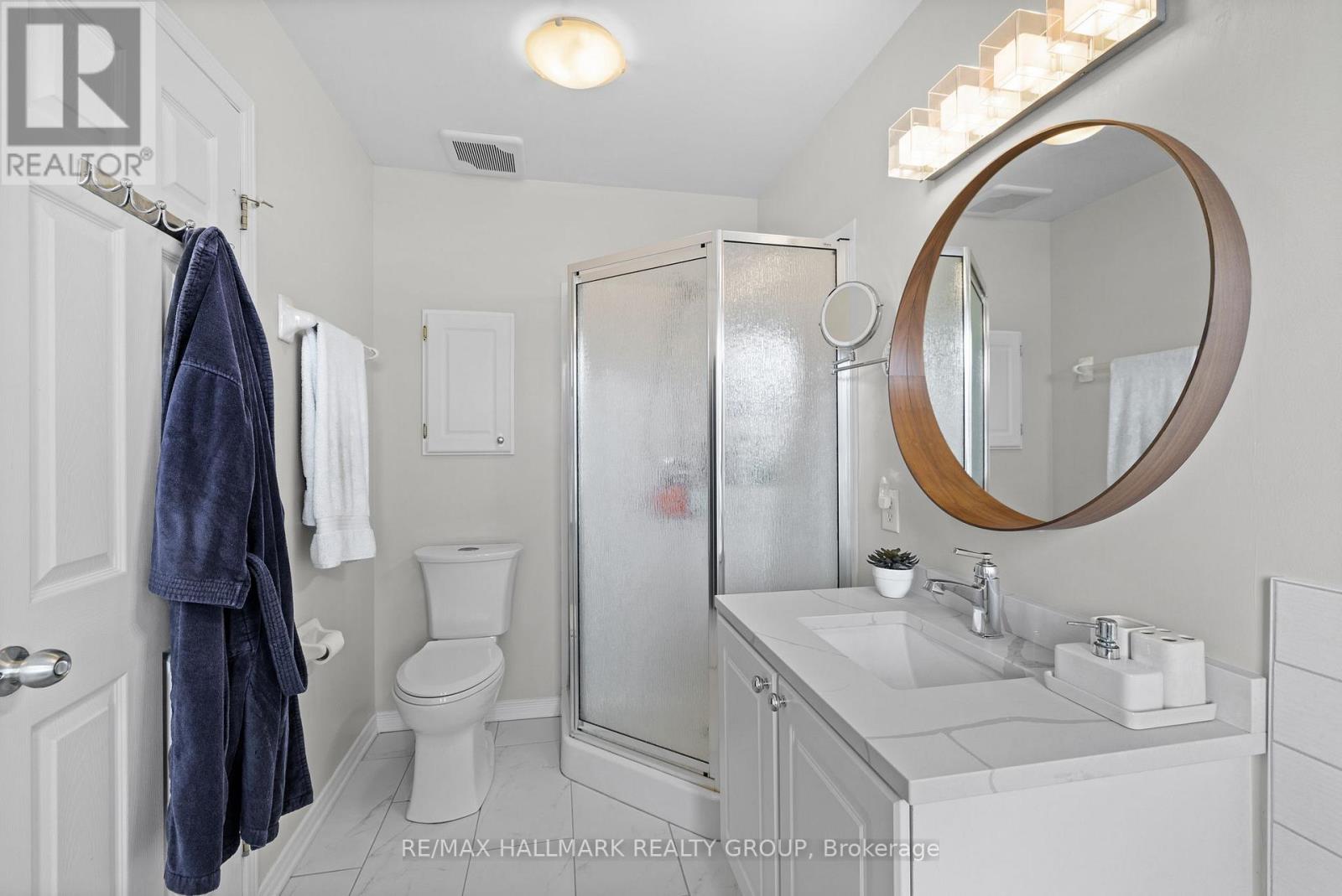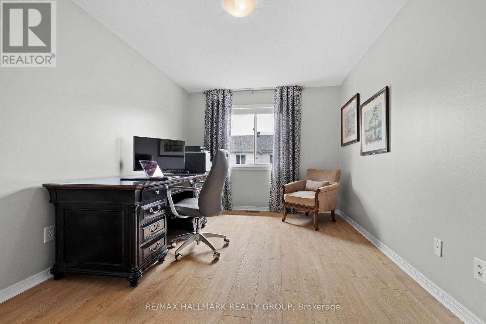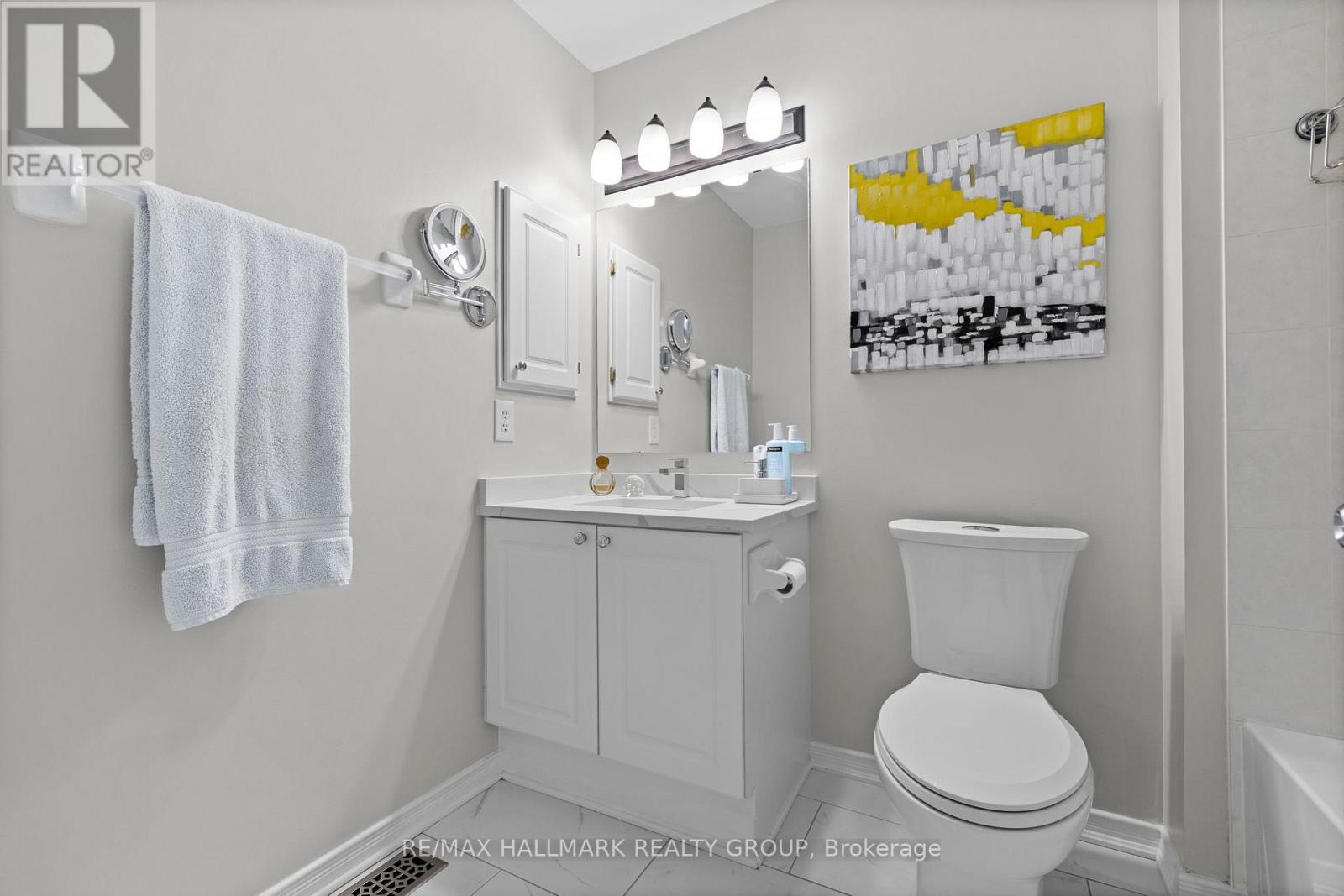Beautifully maintained and spacious townhome in the sought-after community of Kanata South! This fully finished 3 bedroom, 2.5 bathroom home offers bright, open-concept living with thoughtful modern updates throughout. Step inside to a large and welcoming foyer that leads into the main level, where hardwood floors, pot lights, and oversized windows create a warm and inviting atmosphere filled with natural light. The updated kitchen features sleek quartz countertops, stainless steel appliances and refinished cabinetry. Enjoy ample counter space, cupboards and a pantry to meet all your family's everyday needs. The living room features a cozy gas fireplace, while the dining area provides space for family gatherings. Upstairs, you'll find three generously sized bedrooms, including a huge primary retreat complete with a walk-in closet, two additional wardrobes and a private ensuite bath with quartz countertops and a separate soaker tub. The stunning vaulted pine wood ceiling adds a unique and elegant touch to the space. Two additional bedrooms offer flexibility for family, guests or a home office, while a full bathroom and two linen closets complete the upper level. The fully finished lower level provides even more versatile living space, ideal for a home theatre, gym or potential additional bedroom. Also includes plenty of storage and a rough-in for a future 3-piece bathroom. Outside, the landscaped and fully fenced backyard is perfect for relaxing or entertaining. Enjoy summer days on the deck, complete with a gazebo and privacy screens ideal for BBQs and hosting family and friends. approx. 2,000 sqft of living space. Ideally located close to parks, schools, shopping, restaurants, groceries, and public transit. Turnkey living in a family-friendly neighbourhood. Lots of updates! See feature sheet attached. Furnace 2025, A/C 2024, Humidifier 2024, Roof Shingles 2022. 24-hour irrevocable on all offers, Schedule B & Disclosure of interest to be included with offers. (id:50982)