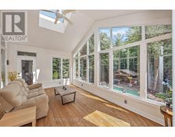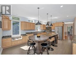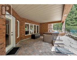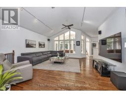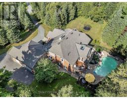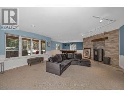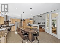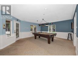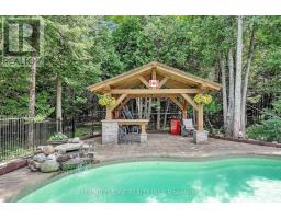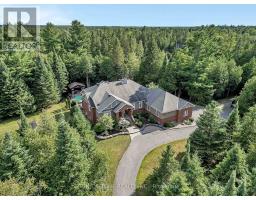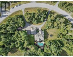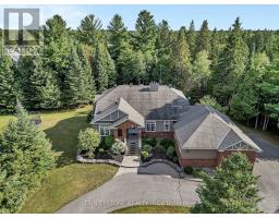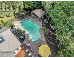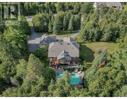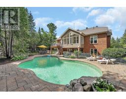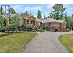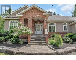 Welcome to this exceptional custom-built bungalow, perfectly nestled on a 2.3 Acre treed lot in a sought-after golf club community! A long, private driveway surrounded by lush landscaping offers ample parking and sets the tone for this inviting property. Step inside to a spacious foyer that opens to a bright and expansive living room, complete with a cozy fireplace and an abundance of natural light. The gourmet kitchen features stainless steel appliances, a breakfast bar, and generous cabinetry, seamlessly blending style and functionality. Adjacent to the kitchen, a sun-filled four-season sunroom with large windows invites you to take in the picturesque views of the backyard. The primary suite offers a walk-in closet and a luxurious 4-piece ensuite with dual sinks and a sleek glass shower. A potential fifth bedroom (or home office), an additional spacious bedroom, and a beautifully designed full bathroom with a freestanding tub and glass shower complete the main floor. A dedicated laundry room adds to the convenience of this level. The fully finished lower level feels like an extension of the main floor, with large windows providing plenty of natural light. Here, you'll find two additional bedrooms, a fitness room, a full 4-piece bathroom, and a walkout to the backyard. The backyard is a true private oasis, designed for relaxation and entertaining. Enjoy the upper-level deck perfect for gatherings, or retreat to the shaded walkout patio below. The stunning inground pool, complete with a waterfall feature, stone patio, and a large gazebo, offers a spa-like experience right at home. Schedule your exclusive showing today and see all this home has to offer! (id:50982)