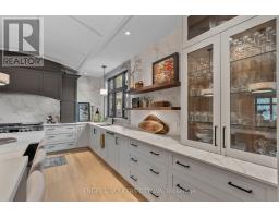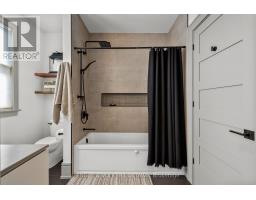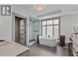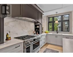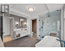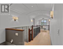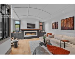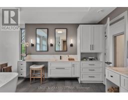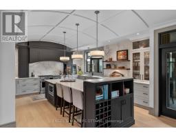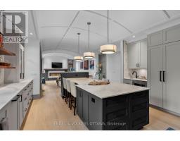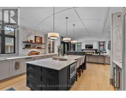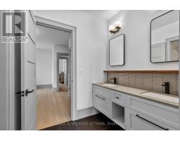 This high-quality, 3,500 sq. ft. custom home in the heart of Wellington Village is not only beautiful, the layout is functionally fabulous and features a rare double-height garage w/ reinforced floors, zoned HVAC and elevated ceiling heights. The entry is anchored by a dramatic 22 ft high foyer w/ custom walnut niche, walnut light fixtures, and heated porcelain floors that lead to an adjacent mudroom or the open-concept living & dining area featuring a floor-to-10-foot-ceiling-height fireplace clad in Dekton porcelain slabs & a custom staircase featuring walnut handrails and newel posts milled from a tree once on the property. At the heart of the home, a chef-inspired kitchen boasts a barrel-vaulted ceiling that extends thru to the connected family room, Dekton countertops & walls, 10 ft island, a beverage station & premium Fisher & Paykel appliances and an adjacent screened porch. Arriving at the second level, you're met w/ a 2nd barrel-vaulted ceiling, 9 ft high and four spacious bedrooms all with ensuite bathrooms & a nursery/office. The primary suite features his & hers walk-in closets & an ensuite w/ Dekton counters & shower surround, wood-accent shelving as with other bathrooms, & a free-standing tub. A well-appointed laundry room with a proper sink, quartz counters & ample storage. The lower level provides bonus living space w/ a sprawling recreation room w/ rough-in for a bar, a bedroom w/ an ensuite, a powder room, & heated flooring throughout. 8'-4" ceilings, w/ pot lighting & LVP wide-plank floors maintain the character of the home's upper levels. The remainder of flooring throughout the home is wide-plank, white oak engineered hardwood. The landscaped, fully fenced backyard includes an interlock patio, a cedar pergola-topped BBQ deck, defined garden beds & mature trees. Set on a tree-lined street in Wellington Village, this home is just steps from Elmdale Public School, Parkdale Market, and the shops, cafés, & restaurants of Wellington West & Westboro. (id:50982)