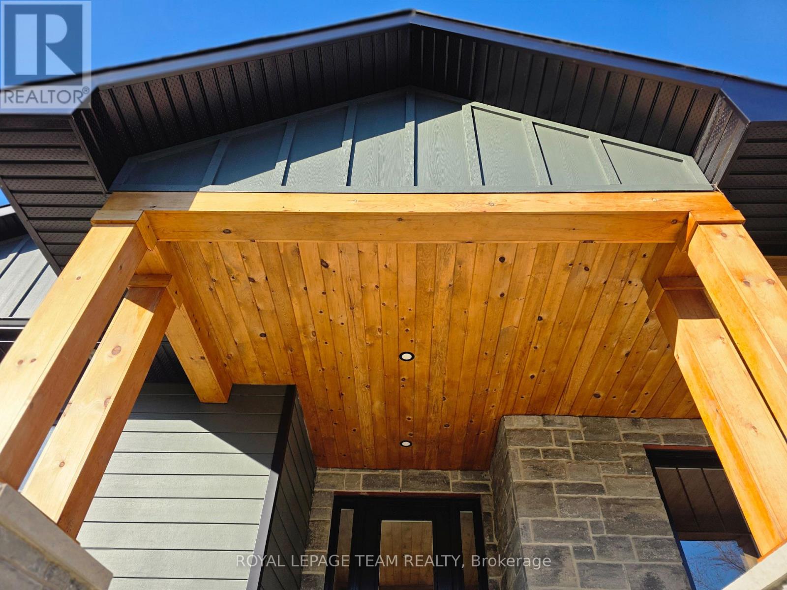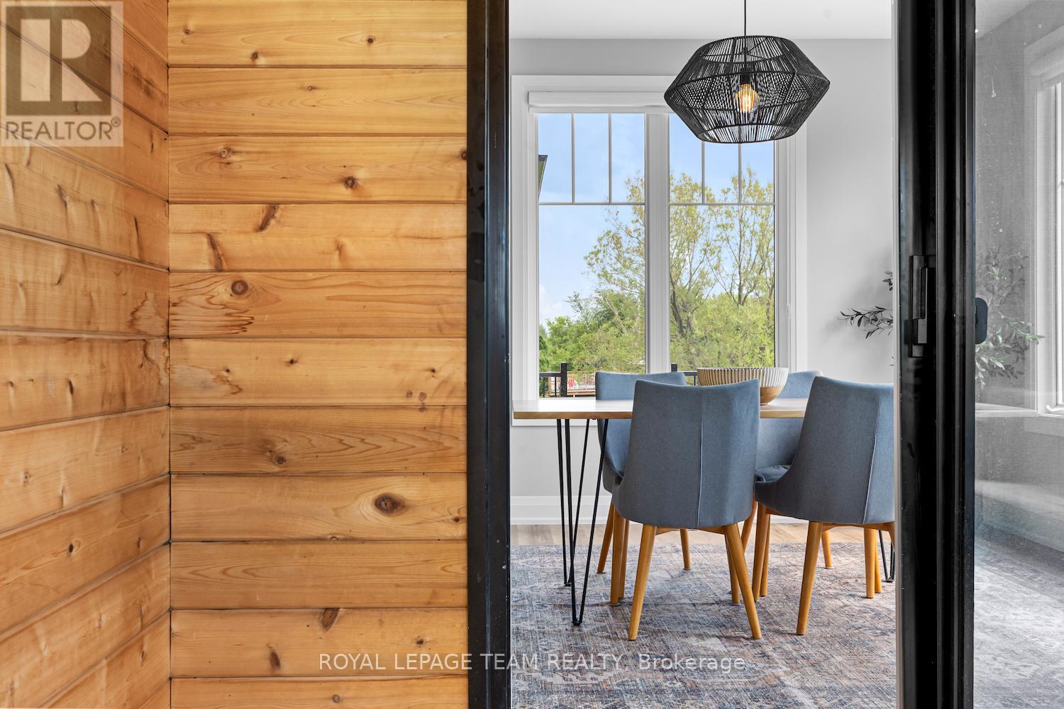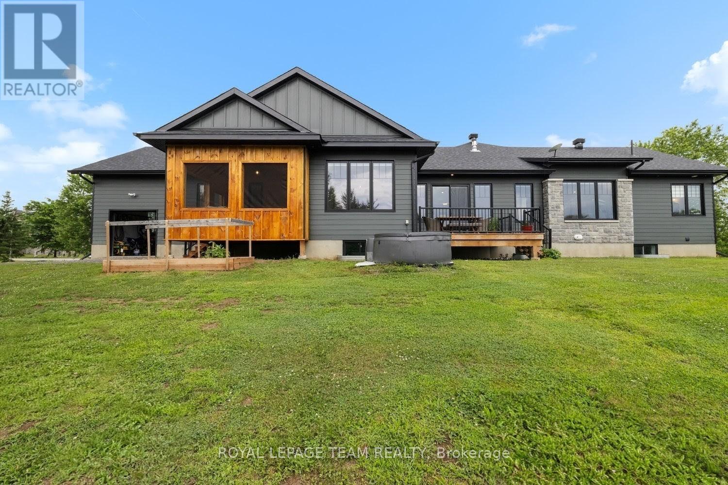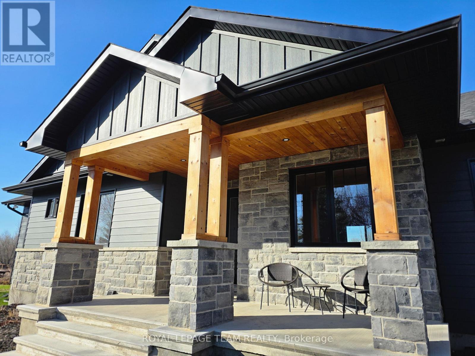 IN-LAW POTENTIAL! 2+ ACRES! NO REAR NEIGHBOURS! HEATED OVERSIZED TRIPLE CAR GARAGE! Where modern design meets natural beauty-this is country living, reimagined. This custom bungalow showcases a striking, moody exterior-a rich blend of dark board & batten, stone & timber that quietly pays tribute to its surroundings. Deer pass the treeline & a gentle stream winds through the property. Step inside & the home immediately opens up-9' & 10' ceilings, 8' doors & wide-plank flooring creating a space that feels both expansive & grounded. At the centre, a beautifully designed kitchen balances style & function w/ quartz counters, an oversized island, side bar & a rarely offered butler's pantry room. From here, the home naturally gathers-anchored by a fireplace framed w/ floating shelves & a 10' tray ceiling overhead, while sunlight pulls you toward the rear deck & enclosed porch, extending everyday living outdoors. Tucked just off this space, a glass-accented den offers flexibility. Privately set, the primary suite is capped by a 10' tray ceiling, 2 walk-in closets & a refined ensuite. 2 additional bedrooms are positioned at the front, sharing a beautifully finished full bath. Everyday function is elevated through a well-planned back hall w/ mudroom, powder room & a pinterest worthy laundry space w/ cabinetry, quartz & sink. Downstairs, the groundwork is already in place-large windows, bath & wet bar rough-ins, partial framing & direct garage access create strong in-law or income potential. And for those who need more-an oversized heated garage w/ extended height, double door & a 3rd drive-thru bay (front & rear access) delivers unmatched versatility. All just minutes to Stonecrest PS, West Carleton SS, Constance Bay & Kanata amenities. A lifestyle, not just a home. (id:50982)