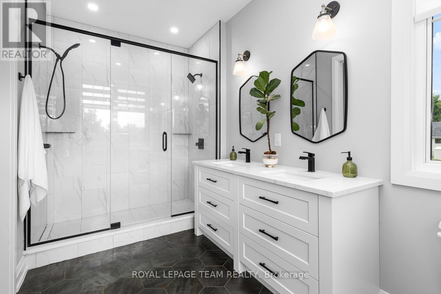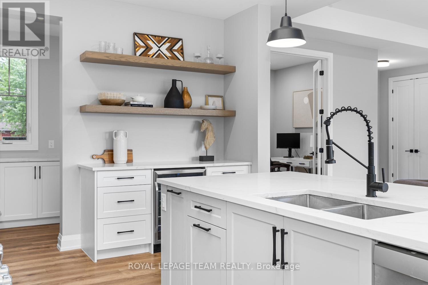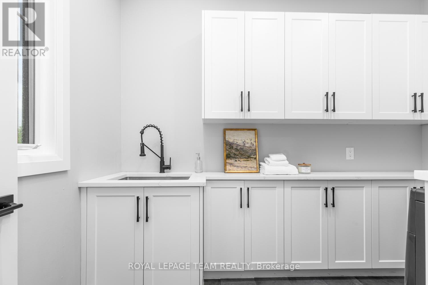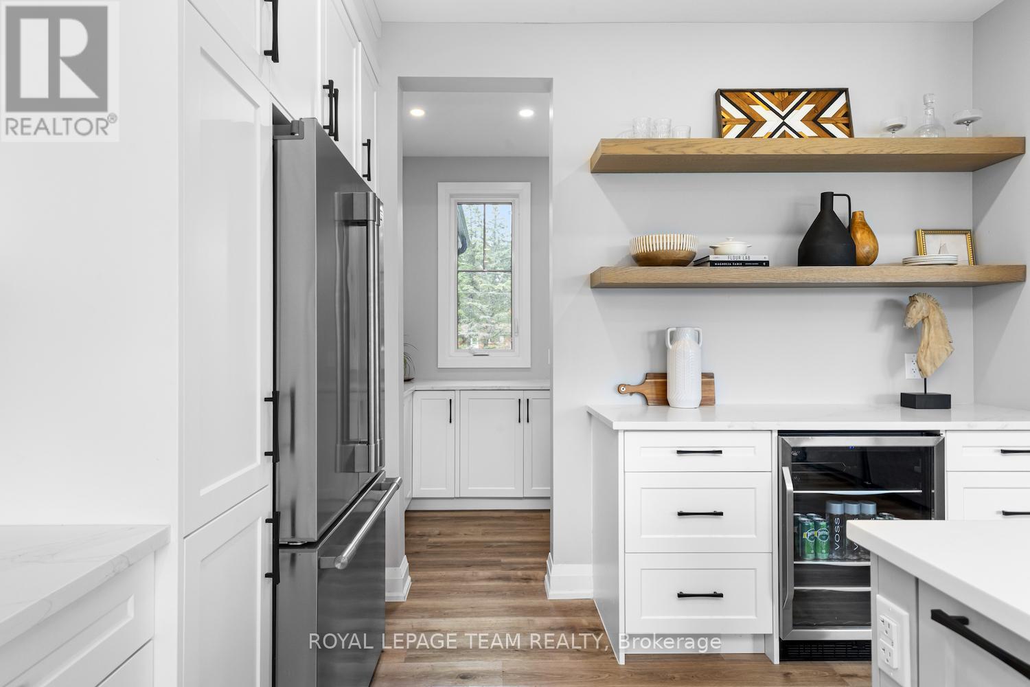 IN-LAW POTENTIAL! 2+ ACRES! NO REAR NEIGHBOURS! HEATED OVERSIZED TRIPLE CAR GARAGE! Where modern design meets natural beauty-this is country living, reimagined. This custom bungalow showcases a striking, moody exterior-a rich blend of dark board & batten, stone & timber that quietly pays tribute to its surroundings. Deer pass the treeline & a gentle stream winds through the property. Step inside & the home immediately opens up-9' & 10' ceilings, 8' doors & wide-plank flooring creating a space that feels both expansive & grounded. At the centre, a beautifully designed kitchen balances style & function w/ quartz counters, an oversized island, side bar & a rarely offered butler's pantry room. From here, the home naturally gathers-anchored by a fireplace framed w/ floating shelves & a 10' tray ceiling overhead, while sunlight pulls you toward the rear deck & enclosed porch, extending everyday living outdoors. Tucked just off this space, a glass-accented den offers flexibility. Privately set, the primary suite is capped by a 10' tray ceiling, 2 walk-in closets & a refined ensuite. 2 additional bedrooms are positioned at the front, sharing a beautifully finished full bath. Everyday function is elevated through a well-planned back hall w/ mudroom, powder room & a pinterest worthy laundry space w/ cabinetry, quartz & sink. Downstairs, the groundwork is already in place-large windows, bath & wet bar rough-ins, partial framing & direct garage access create strong in-law or income potential. And for those who need more-an oversized heated garage w/ extended height, double door & a 3rd drive-thru bay (front & rear access) delivers unmatched versatility. All just minutes to Stonecrest PS, West Carleton SS, Constance Bay & Kanata amenities. A lifestyle, not just a home. (id:50982)