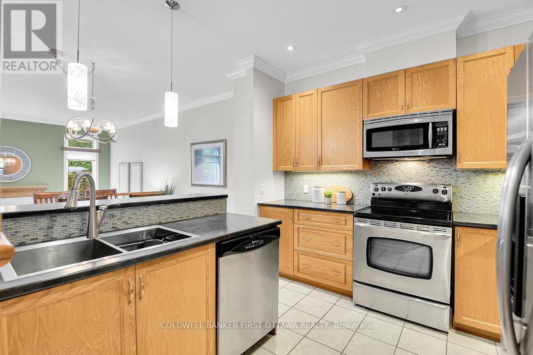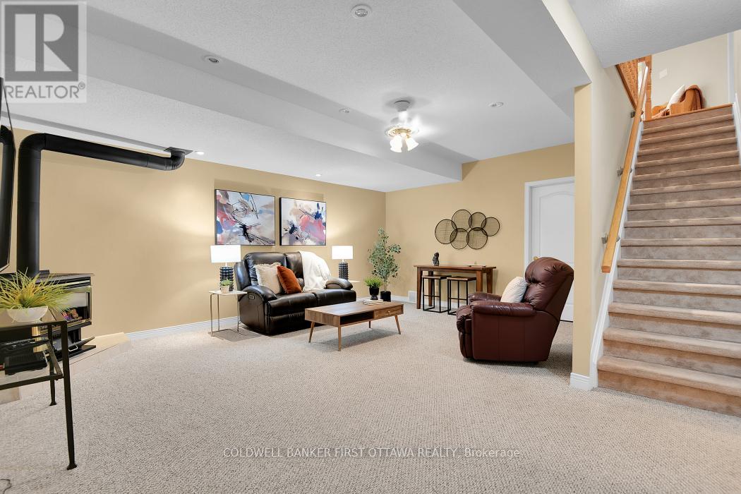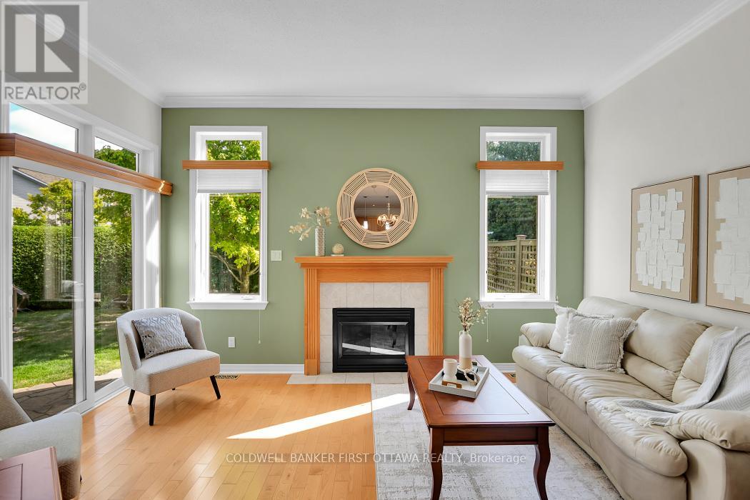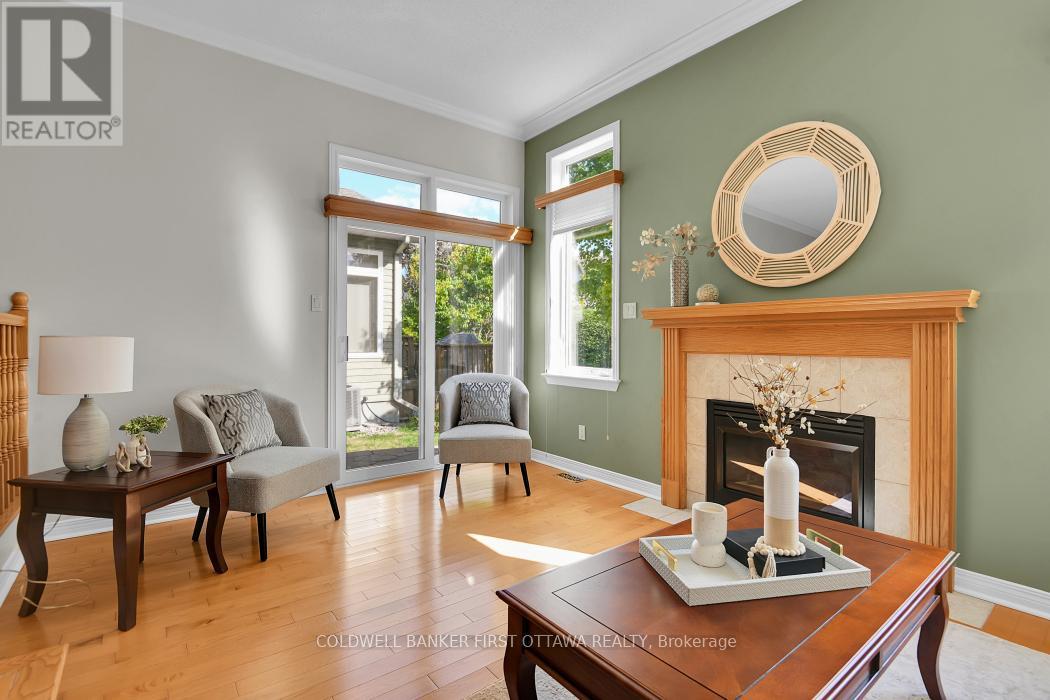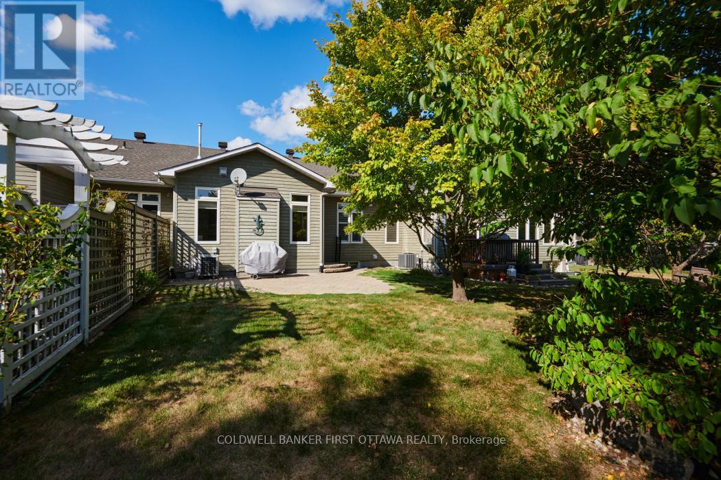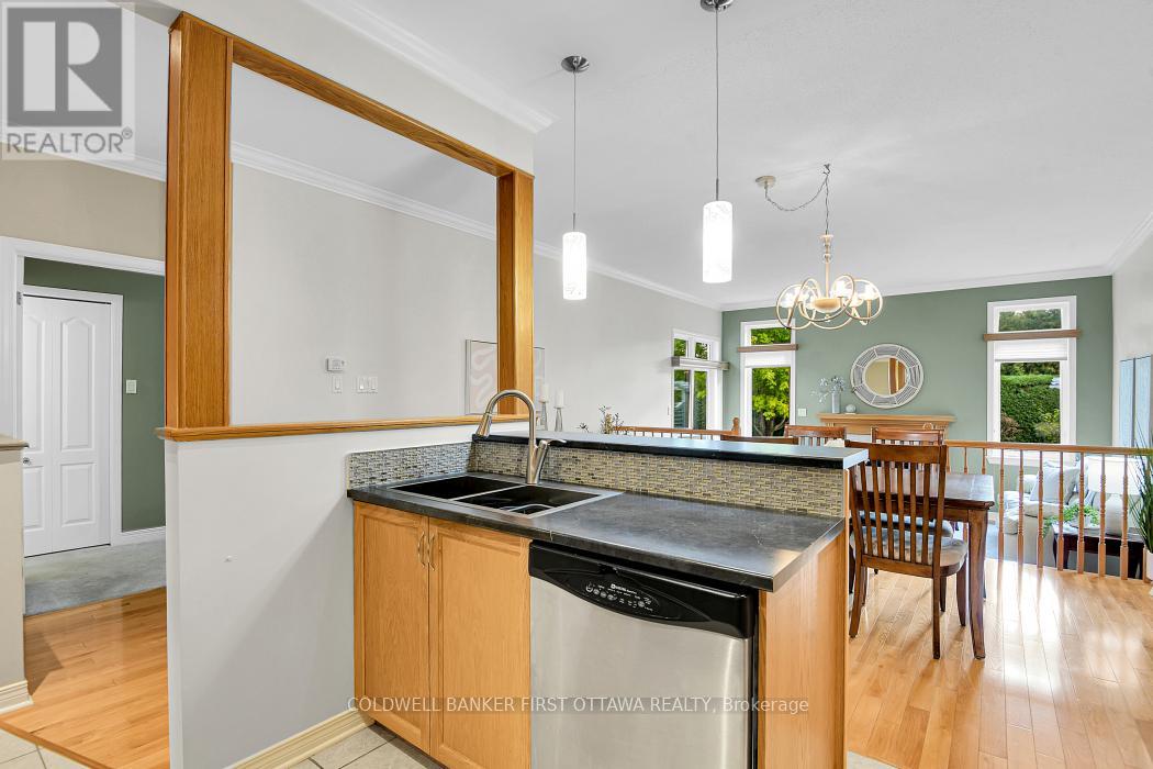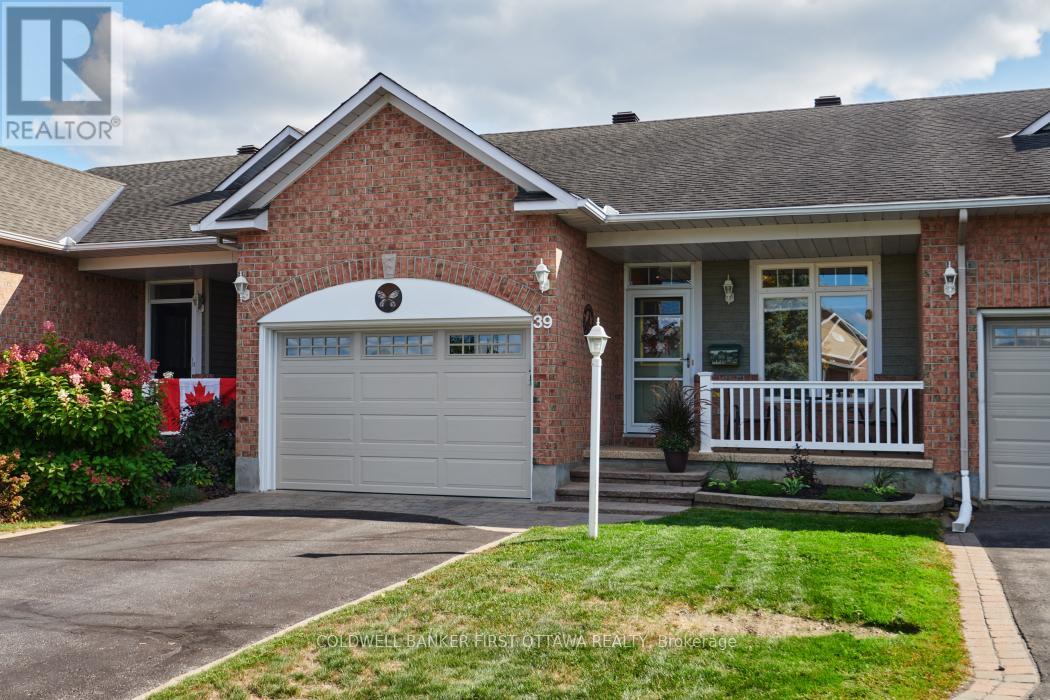 Welcome to 39 Sable Run Dr - Tranquil Adult Living in the Heart of Stittsville! Nestled in a sought-after adult lifestyle community, this charming 2+1 bedroom, 3-bathroom bungalow offers comfort, style, and low-maintenance living. With great curb appeal, a paved driveway framed by interlock, and a newly installed garage door on the oversized single garage, the home makes a welcoming first impression. Step onto the lovely front porch, great spot for morning coffee or evening wine, and into a bright, spacious foyer featuring tile flooring and a double-door coat closet. A versatile front bedroom, currently used as a den, adds flexibility to the layout. Main floor laundry room includes a closet and direct access to the garage for added convenience. At the heart of the home is a beautifully updated kitchen w/tile flooring, stainless steel appliances, refreshed cabinetry, stylish backsplash, breakfast bar, and countertops. The open-concept living and dining areas feature rich hardwood flooring, fresh designer paint, and large windows that flood the space with natural light. A gas fireplace adds warmth and ambiance. The patio door leads to the private backyard oasis. The primary bedroom boasts soft carpeting, custom shutters, a walk-in closet, and a 4-piece ensuite complete with a soaker tub, shower, toilet, and vanity. Downstairs, the fully finished lower level includes a cozy family room with a freestanding gas stove, a third bedroom, and a convenient two-piece bath (with space to convert into a full bathroom). You'll also find a large utility/storage room and a workshop area with ample storage. The fully interlocked backyard features a beautiful stone patio and steps, surrounded by tall hedges and mature trees, creating a serene, private retreat. This well-maintained home combines comfort, functionality, and privacy in a quiet, friendly neighborhood ideal for downsizers, empty nesters, or anyone looking for relaxed living with easy access to amenities. 24 hrs irrev (id:50982)