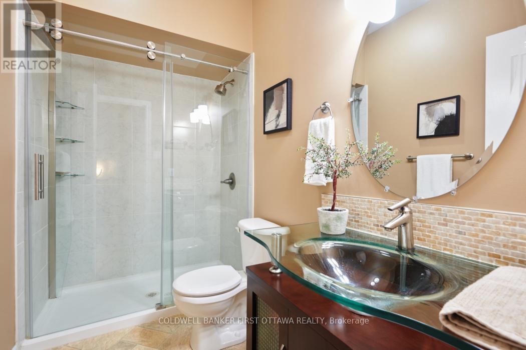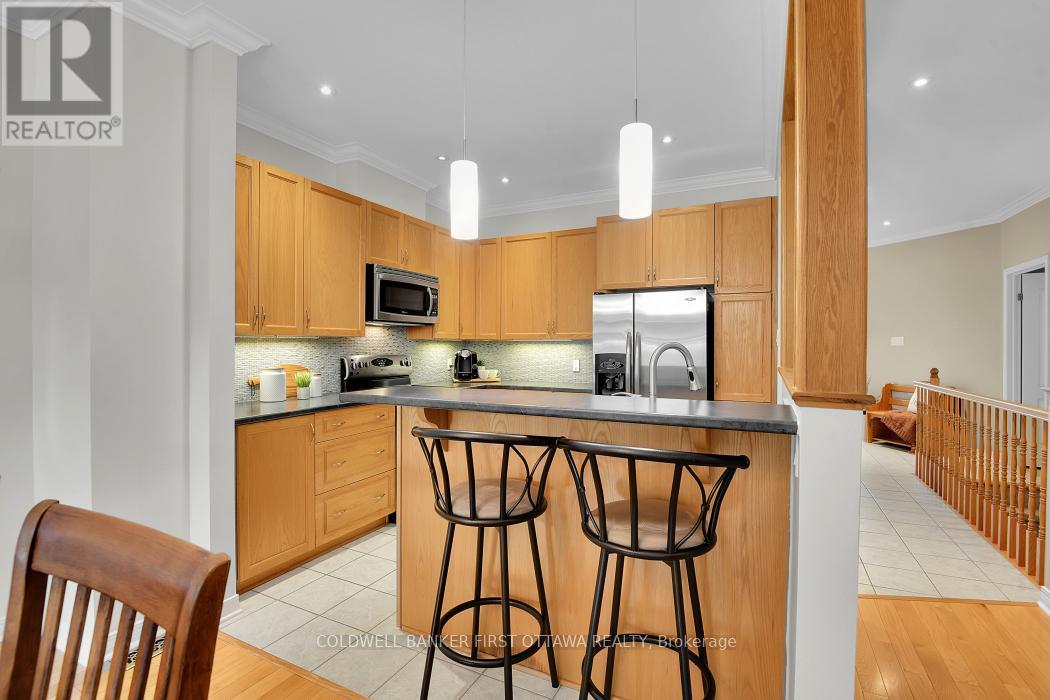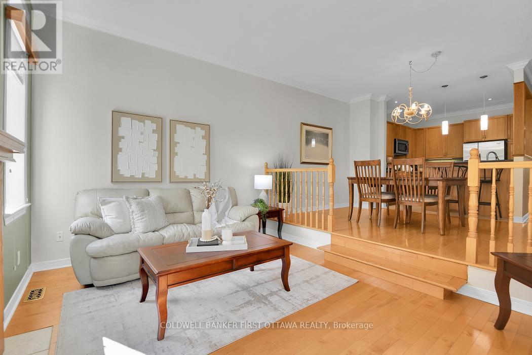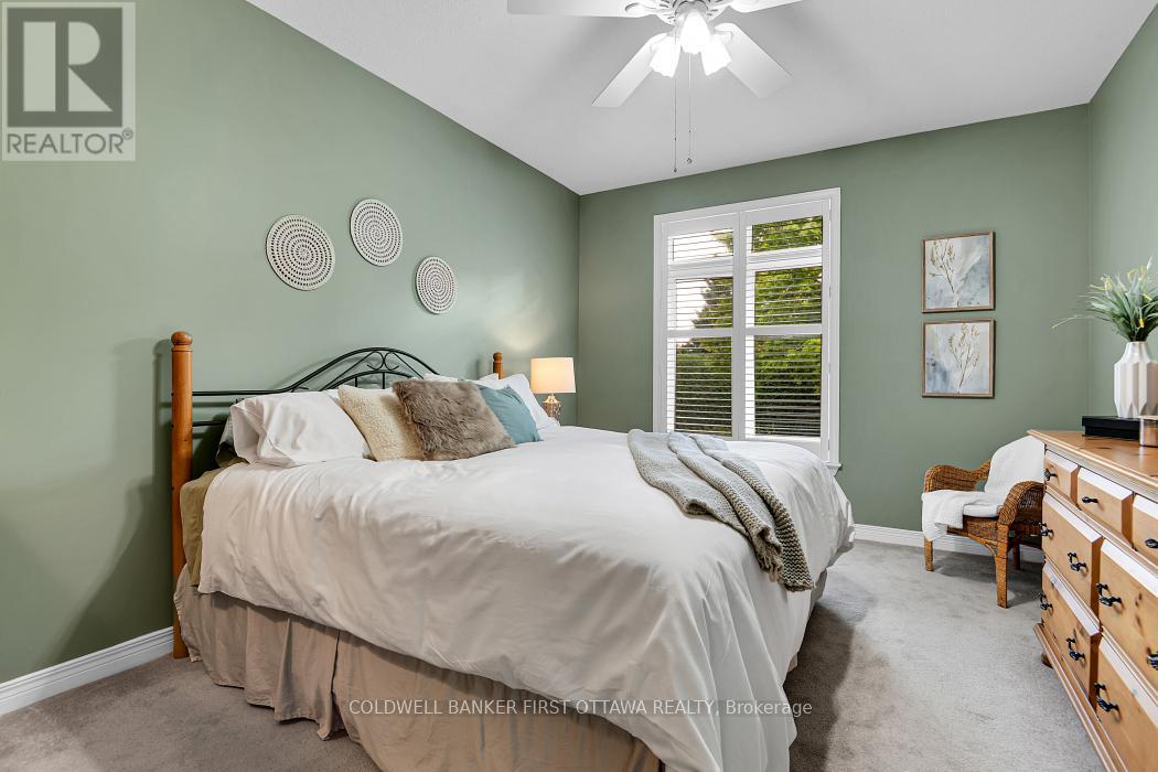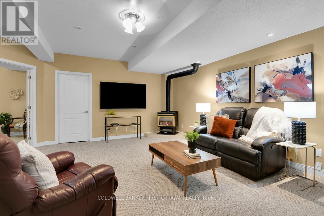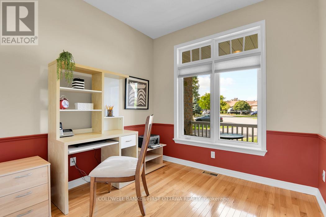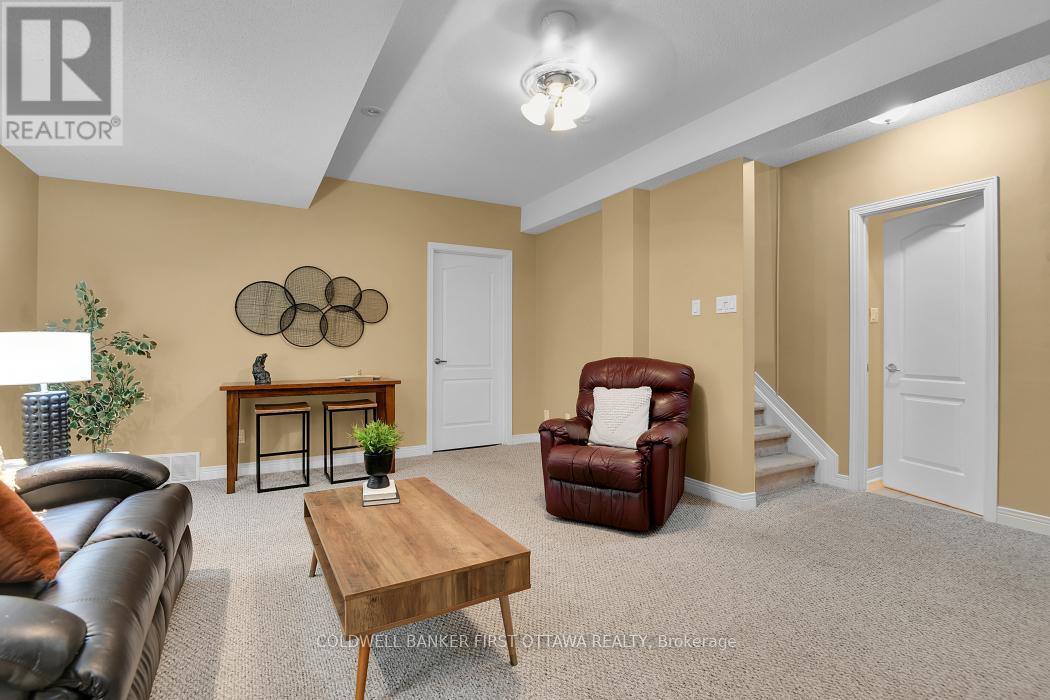 Welcome to 39 Sable Run Dr - Tranquil Adult Living in the Heart of Stittsville! Nestled in a sought-after adult lifestyle community, this charming 2+1 bedroom, 3-bathroom bungalow offers comfort, style, and low-maintenance living. With great curb appeal, a paved driveway framed by interlock, and a newly installed garage door on the oversized single garage, the home makes a welcoming first impression. Step onto the lovely front porch, great spot for morning coffee or evening wine, and into a bright, spacious foyer featuring tile flooring and a double-door coat closet. A versatile front bedroom, currently used as a den, adds flexibility to the layout. Main floor laundry room includes a closet and direct access to the garage for added convenience. At the heart of the home is a beautifully updated kitchen w/tile flooring, stainless steel appliances, refreshed cabinetry, stylish backsplash, breakfast bar, and countertops. The open-concept living and dining areas feature rich hardwood flooring, fresh designer paint, and large windows that flood the space with natural light. A gas fireplace adds warmth and ambiance. The patio door leads to the private backyard oasis. The primary bedroom boasts soft carpeting, custom shutters, a walk-in closet, and a 4-piece ensuite complete with a soaker tub, shower, toilet, and vanity. Downstairs, the fully finished lower level includes a cozy family room with a freestanding gas stove, a third bedroom, and a convenient two-piece bath (with space to convert into a full bathroom). You'll also find a large utility/storage room and a workshop area with ample storage. The fully interlocked backyard features a beautiful stone patio and steps, surrounded by tall hedges and mature trees, creating a serene, private retreat. This well-maintained home combines comfort, functionality, and privacy in a quiet, friendly neighborhood ideal for downsizers, empty nesters, or anyone looking for relaxed living with easy access to amenities. 24 hrs irrev (id:50982)