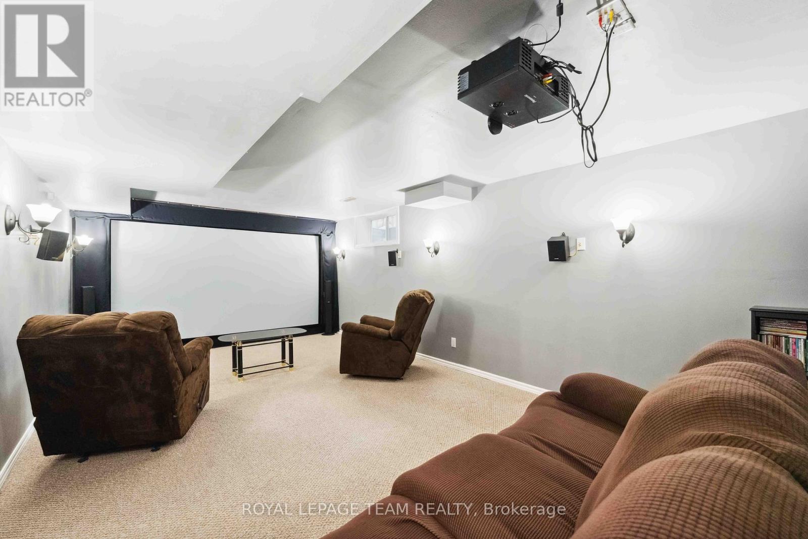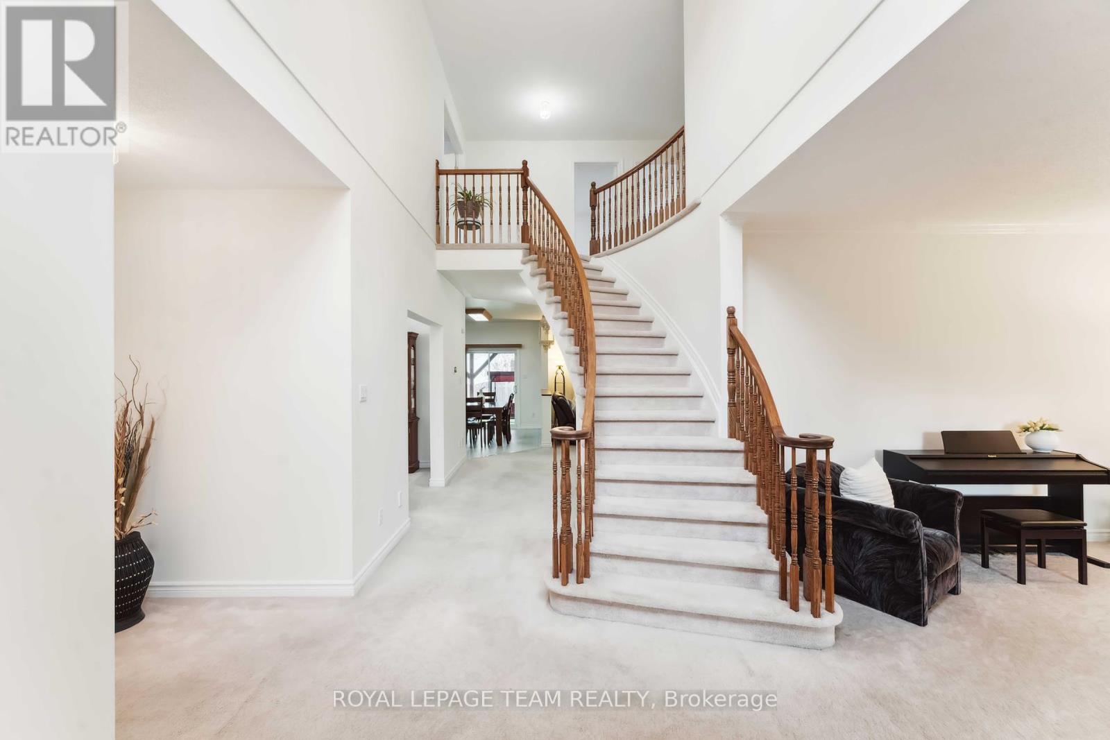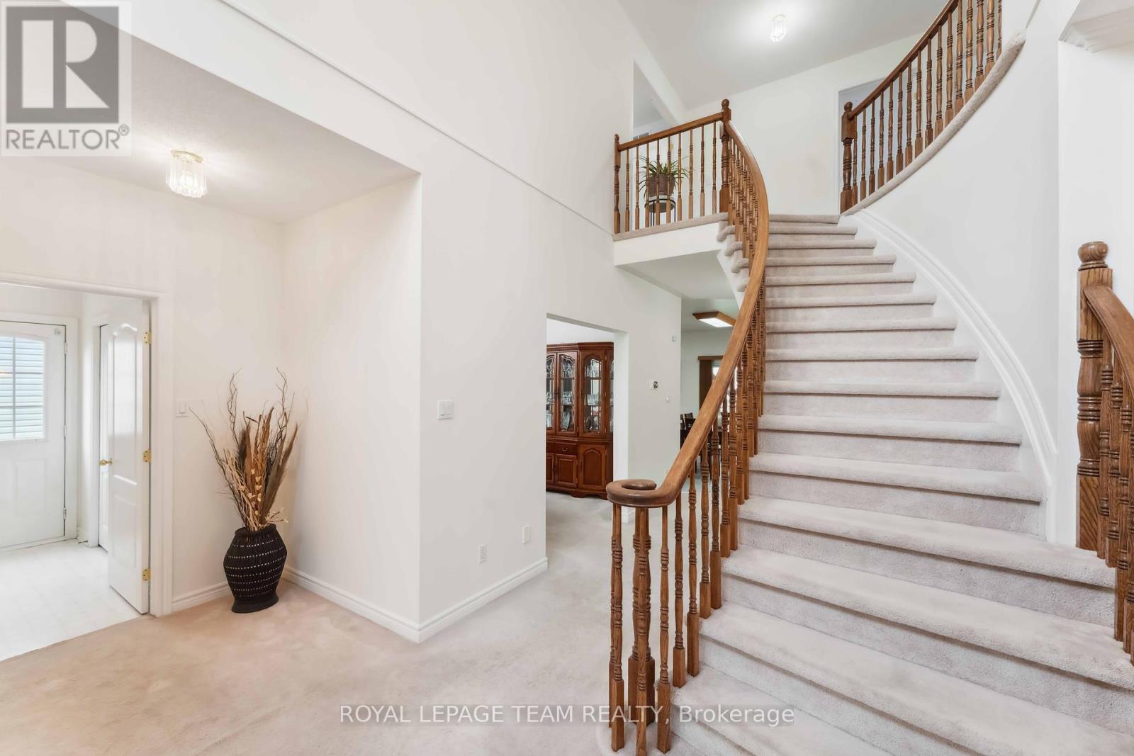 Welcome to this stunning 5+2 bedroom, 4-bathroom home with over 4,000 sq ft of living space and 9 ft ceilings, located in the desirable Barrhaven East neighbourhood. Step into a dramatic two-story foyer that sets the tone for the entire home. Flooded with natural light from oversized windows, this grand entryway features soaring 18 ft ceilings, elegant lighting, and a winding staircase. The modern kitchen offers new quartz counter tops, a breakfast nook, and new flooring that blends style with durability.At the front of the home, a separate living and dining room create a serene setting. A formal family room at the back connects to the kitchen, which includes ample storage, shelving, and an eating area. The family room features a cozy gas fireplace and opens to a spacious covered deck perfect for entertaining.The main floor also includes a powder room, laundry, and a versatile room ideal as a bedroom, study, or guest space.Upstairs, the spacious primary bedroom includes a walk-in closet and a luxurious 4-piece en-suite with a freestanding tub, glass walk-in shower, and stylish vanity. Three more bedrooms and a main 3-piece bathroom complete the second level.The fully finished basement offers a large family room, a generous bedroom, an additional flex room perfect for a home gym, office, or playroom, and a dedicated home theatre. Furnace (2018), A/C (2018), Roof (2015), Windows(2020), Dryer (2020), Washer (2020). Spacious deck with roof. Gas connections available for dryer and BBQ. Home theatre setup (Screen, Speakers, Projector and receiver) includes in the sale. The house has been under the same ownership since beginning. This family-friendly community features top-rated schools, a sports complex, trails, parks, transit(Bus stop number #1119 is at a very short distance from the house through the park), and all essential shopping and dining within walking distance.Dont miss this incredible opportunity to call this beautiful house your home! (id:50982)