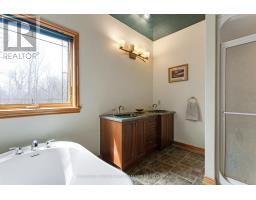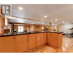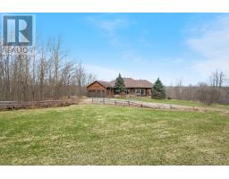 Secluded solitude on 198 acres with approx 2 km of waterfront along small lake, Black Creek. Surrounded by complete privacy, walk-out bungalow offers impressive light-filled spaces full of panoramic lake views. The home has 3,515sf on main floor and 3,100sf finished on lower level; total of 4+2 bedrooms and 3.5 bathrooms. White bright foyer has marble floor and double closet. Off the foyer is welcoming den with half walls defining the room while providing clear sightlines of other living areas. Livingroom lovely 5-sided bay windows with forever views of the great outdoors. Great Room 12' vaulted ceiling showcases familyroom, kitchen and dining area. Kitchen one of style, with modern ceramic floor and light-hued solid oak cabinetry accented by marble knobs. Countertops and breakfast bar-island are a fusion of marble and black quartz. Next to kitchen is dinette with marble tile floor. Patio doors open to covered deck and screened porch for relaxing summer afternoons. Primary suite a winner with its dramatic drop ceiling and large windows; walk-in closet, 5-pc ensuite and garden door to deck. Main floor has three more bedrooms, 5-pc bathroom, powder room and laundry room. Lower level amazing big sunny rooms with laminate floors; one rec room has wet bar, the other has space for pool table. Lower level familyroom with woodstove, games room, den/office, two bedrms & five-pc bathrm. Radiant floor heating flows thru-out lower level. Upstairs, radiant floor heat in kitchen, bathroom, ensuite, mudroom and foyer. The other rooms heated by efficient air handler with propane boiler. Attached double garage insulated, drywalled and has wood storage room. Auto Generac. Besides frontage on the lake, the property also has private pond that attracts an array of wildlife. Only four other residents on Black Creek lake, that is shared with a family of swans. Located on township maintained road with garbage pickup & school bus route. Starlink internet. 15 mins Westport or 25 mins Perth. (id:50982)
