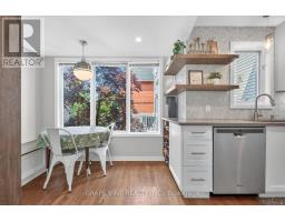 An Urban Paradise! Choice end unit, pristine in condition, with recent upgrades throughout. Nestled in a quiet, private, and beautifully landscaped courtyard, steps away from amenities and all of the downtown perks. A deceptively large home with well-scaled spaces and finished on three levels. Ground floor features a spacious foyer, and hardwood throughout the bright office/family room (could also be a 3rd bedroom!) with patio doors to the rear deck (currently shared with neighbours). The main floor is bright and open with beautiful living and dining space, custom bay window, and gas fireplace - perfect for entertaining. The fully renovated (2021), professionally designed, large eat-in kitchen and custom oversized window heightens the appeal and utility of this home. Two well-sized bedrooms and laundry conveniently located upstairs. The total 2.5 bathrooms, all recently updated, include a powder room on main floor, third floor has en-suite bath and a full 4-piece. Gleaming hardwood throughout, a front balcony with natural gas hookup for summer BBQs, and tasteful colours and decor complete it. A low maintenance property with common area landscaping, snow removal and more covered by the association, and a walk score of 99! This is a turnkey home for the most discerning buyers! 24 hours irrevocable on offers. Private offers welcome. (id:50982)