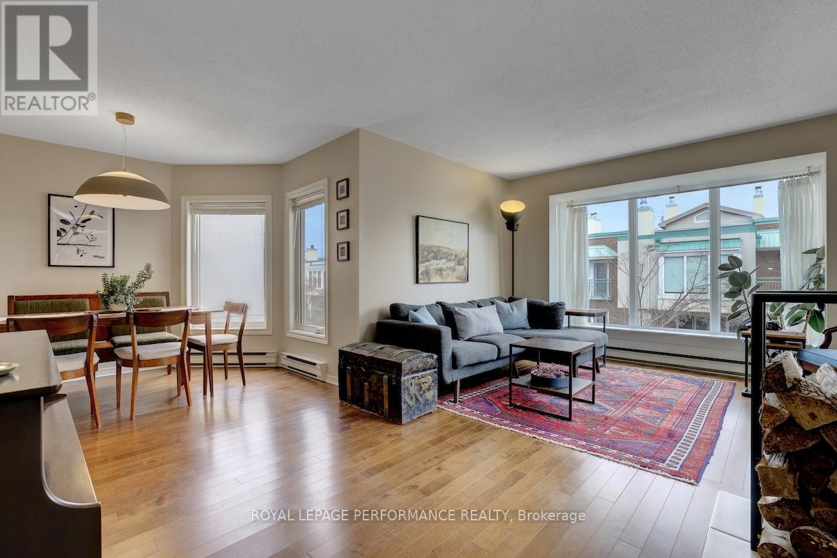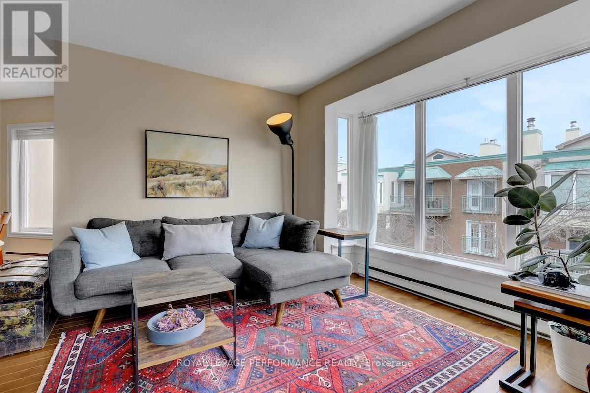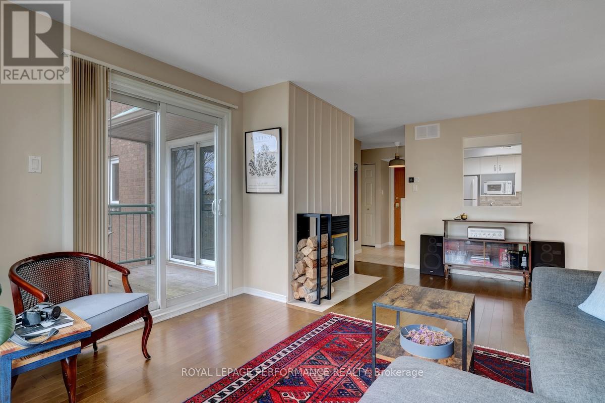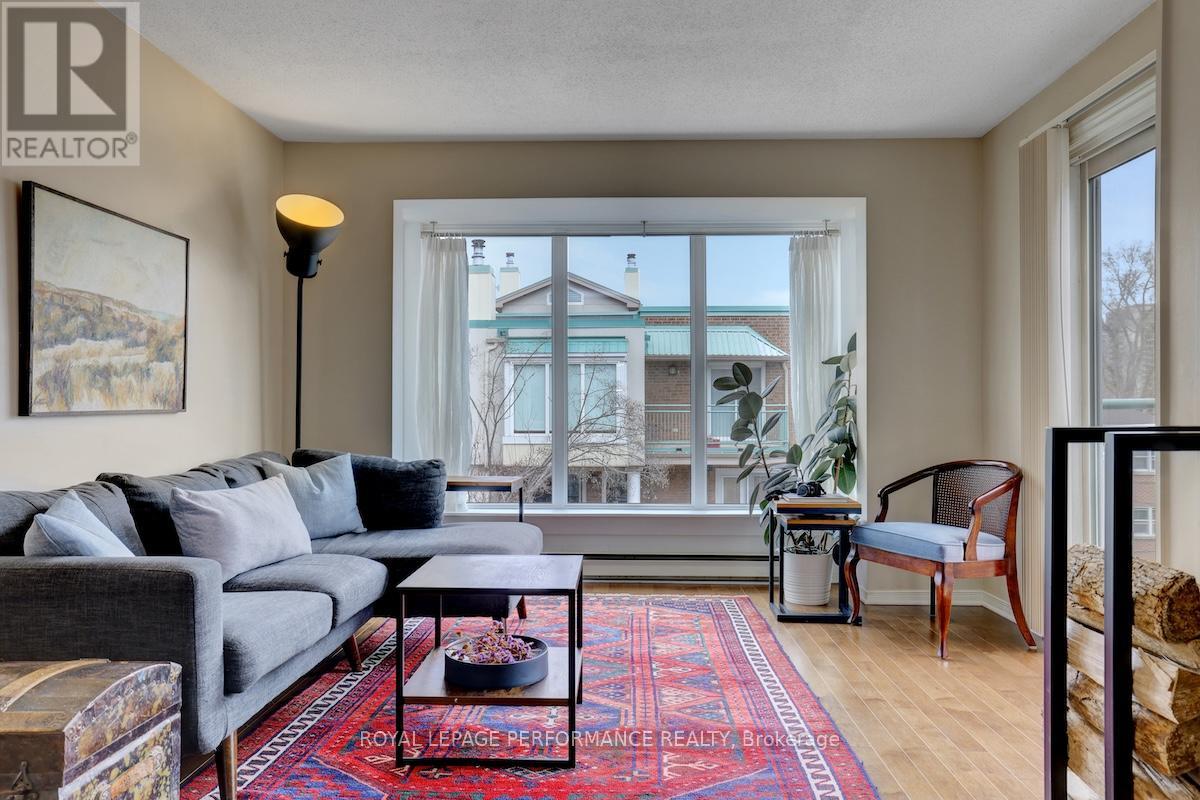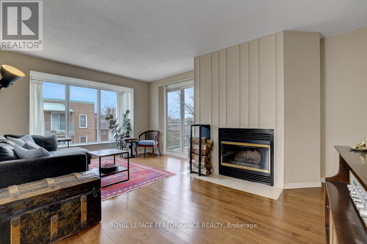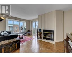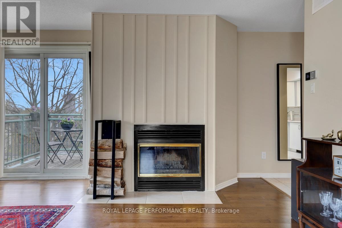 $945.54 MonthlyPenthouse condo overlooking stunning courtyard! Ideally located along the banks of the Rideau River and NCC Park in the highly coveted community of Overbrook, this top-floor 920 sq.ft 2bed/2bath condominium in the Waterbrooke is the ideal fit for any urbanite who wants a turn-key sun-soaked condominium with a functional floorplan, modern conveniences and doesn't want to compromise on proximity to greenspace and the downtown core. Warm and inviting front foyer. Bright and airy open-concept main living space with maple hardwood floors, wood-burning fireplace, and floor-to-ceiling windows overlooking the tranquil Waterbrooke gardens. Patio doors lead to your private balcony. Timeless white kitchen with skylight, marble backsplash, tiled floor, and tons of storage space. Convenient powder room. Oversized primary bedroom with wall-to-wall closet, juliette balcony, and semi-ensuite. Well-proportioned secondary bedroom with patio door leading to balcony. Full bathroom with soaker tub. In-unit laundry. Heat-pump replaced in 2022 with electric baseboards as back-up heating system. Central A/C. 1 underground parking with elevator access. 1 storage locker. Visitor parking and secure bicycle storage room. Pet friendly building. Join the community at the Waterbrooke with garden committee and monthly social activities. Easy access to 417, public transit, Loblaws, bicycle path network along the Rideau River, and downtown core via the Adawe Footbridge to Sandy Hill. Walk to the community hub at the Rideau Sports Centre where you can eat, do yoga, exercise, swim, play tennis and pickleball. Don't forget about the dog park, splash-pad, and the Rideau Winter Ski Trail all at your doorstep. Status Certificate on file. (id:50982)