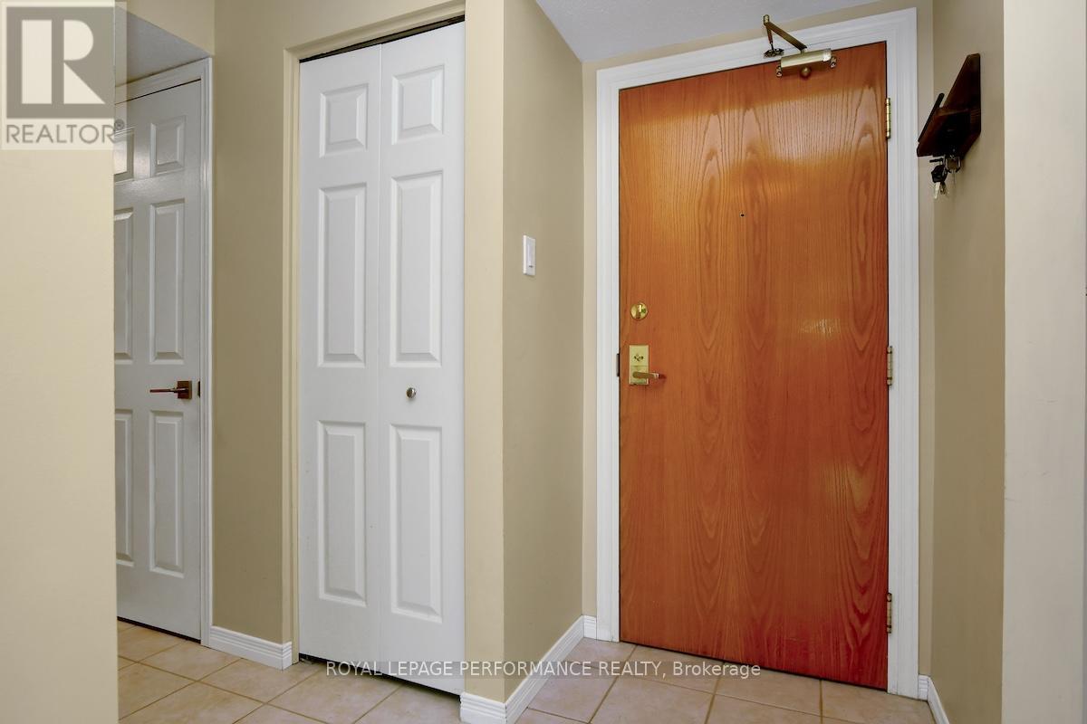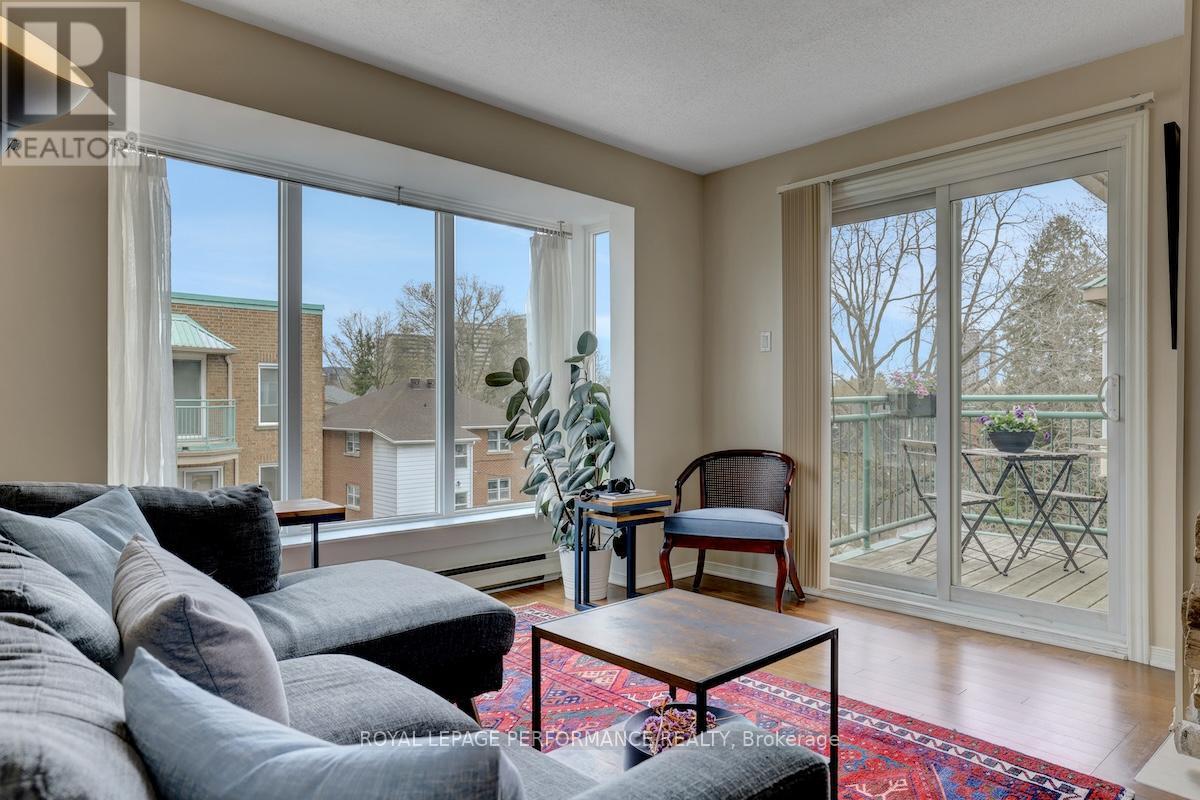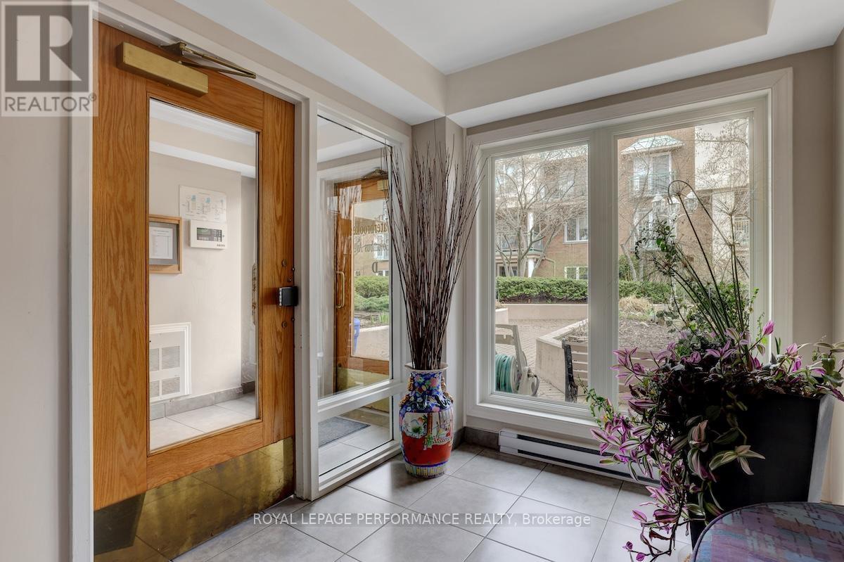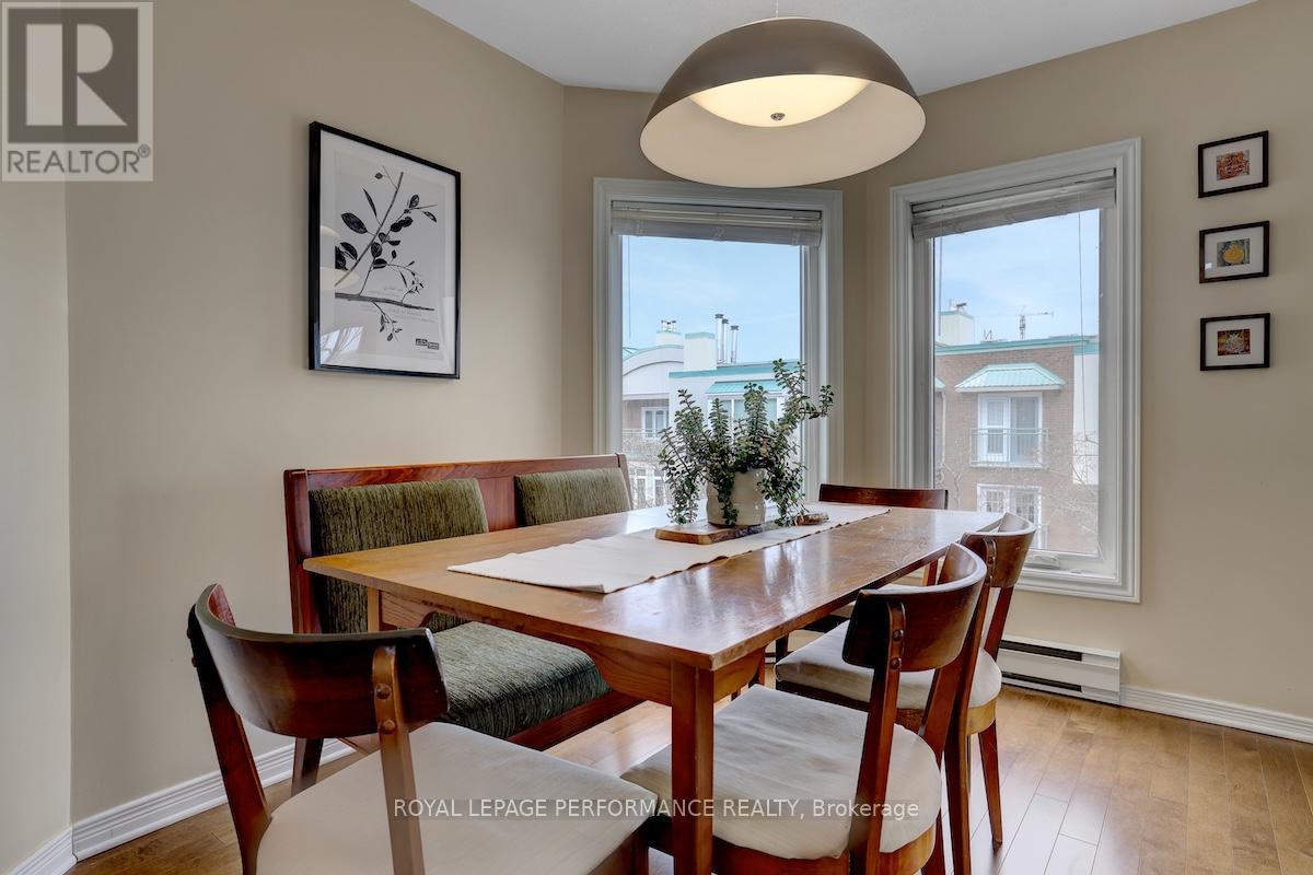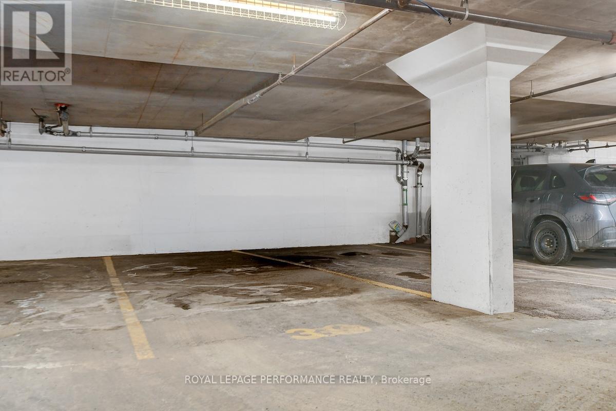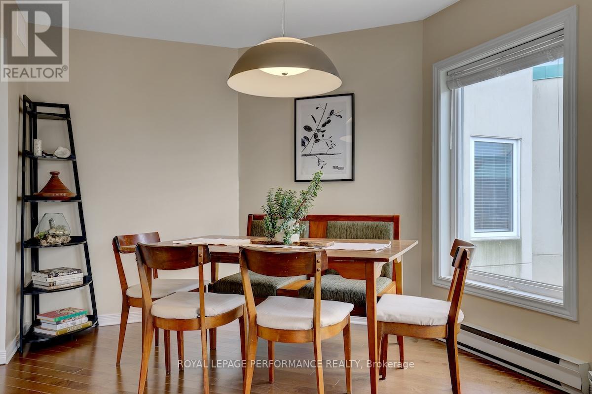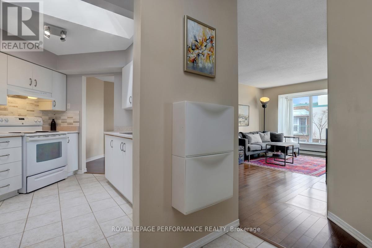 $945.54 MonthlyPenthouse condo overlooking stunning courtyard! Ideally located along the banks of the Rideau River and NCC Park in the highly coveted community of Overbrook, this top-floor 920 sq.ft 2bed/2bath condominium in the Waterbrooke is the ideal fit for any urbanite who wants a turn-key sun-soaked condominium with a functional floorplan, modern conveniences and doesn't want to compromise on proximity to greenspace and the downtown core. Warm and inviting front foyer. Bright and airy open-concept main living space with maple hardwood floors, wood-burning fireplace, and floor-to-ceiling windows overlooking the tranquil Waterbrooke gardens. Patio doors lead to your private balcony. Timeless white kitchen with skylight, marble backsplash, tiled floor, and tons of storage space. Convenient powder room. Oversized primary bedroom with wall-to-wall closet, juliette balcony, and semi-ensuite. Well-proportioned secondary bedroom with patio door leading to balcony. Full bathroom with soaker tub. In-unit laundry. Heat-pump replaced in 2022 with electric baseboards as back-up heating system. Central A/C. 1 underground parking with elevator access. 1 storage locker. Visitor parking and secure bicycle storage room. Pet friendly building. Join the community at the Waterbrooke with garden committee and monthly social activities. Easy access to 417, public transit, Loblaws, bicycle path network along the Rideau River, and downtown core via the Adawe Footbridge to Sandy Hill. Walk to the community hub at the Rideau Sports Centre where you can eat, do yoga, exercise, swim, play tennis and pickleball. Don't forget about the dog park, splash-pad, and the Rideau Winter Ski Trail all at your doorstep. Status Certificate on file. (id:50982)
