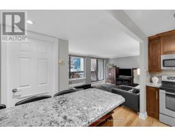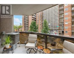 Beautifully updated & move-in ready, this spacious 2-bdrm, 2-bath corner unit condo (app. 1200 sf) blends style, comfort and convenience in the heart of the city. Open-concept layout features soundproof engineered real hardwood floors, crown moulding, high baseboard trim & wood trim around doors, high-end lighting fixtures throughout, and the entire unit is finished in neutral elegant paint tones. From the living area, step out to a large private balcony w/ great city views. The generous dining room offers ample space for entertaining or can easily serve as a home office. The contemporary kitchen is both stylish & functional, complete w/ granite counters on an extended breakfast bar, tiled backsplash, energy-efficient appliances, ample cabinetry & under-cabinet lighting. Both bedrooms are generously sized with excellent storage, while individually controlled wall-mounted heaters & insulated blinds provide comfort & efficiency - helping keep heating & cooling bills low. The primary suite includes a large walk-in closet and private 2-pce ensuite, while the 2nd bedroom also has its own walk-in. The main 4-pce bath is beautifully finished w/ granite counters, updated tilework & excellent storage. A separate laundry room offers a stackable washer/dryer, & loads of storage. This secure building provides excellent amenities: 24-hr concierge & security cameras, indoor saltwater pool, hot tub, saunas, guest suite, party room, rooftop terrace (23rd flr) w/ dining & lounge areas, plus back courtyard w/ BBQ and seating. Unit comes w/ bike storage, storage locker & underground parking. Enjoy the very best of urban living just steps from your everyday conveniences, trendy restaurants, shops, Rideau Centre, Parliament Hill, ByWard Market, Parks, National Museums, all major Government offices, City Hall, & scenic walking/biking paths along the Canal. With Lyon LRT Station & major bus routes nearby, commuting is effortless while still avoiding the congestion of heavy traffic. (id:50982)
