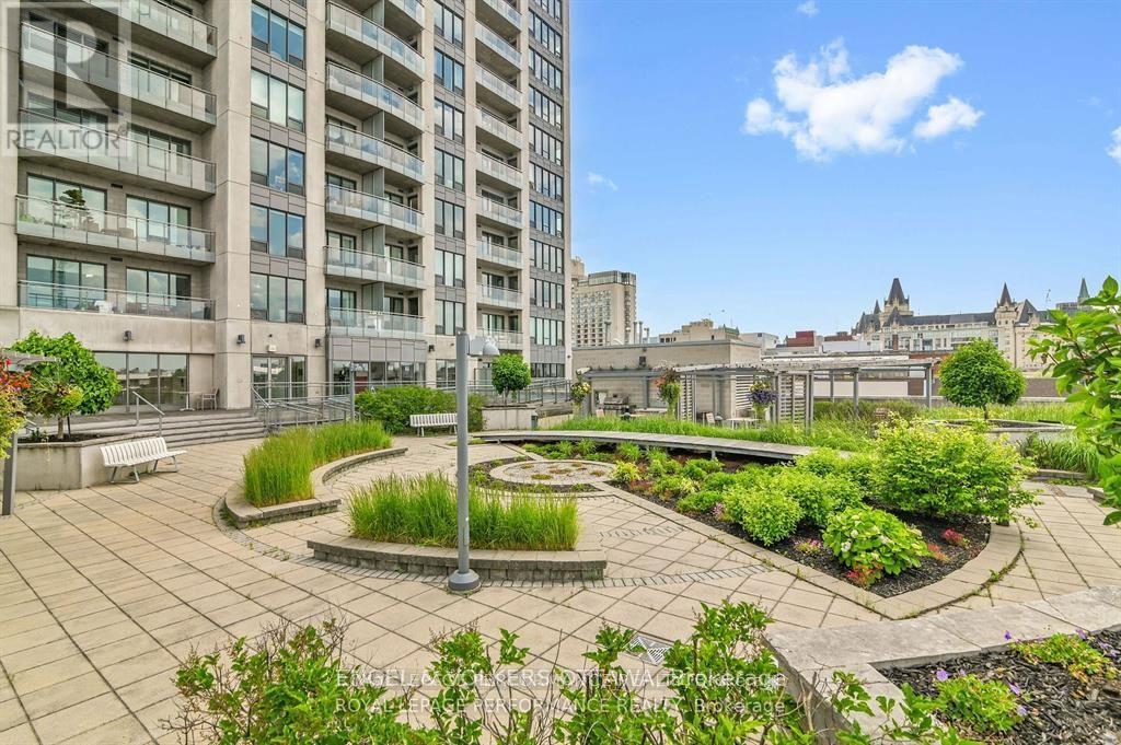 Welcome to 90 George Street, one of Ottawa's most prestigious condominium residences. Situated on the fourth floor, this beautifully appointed one-bedroom + den suite offers a bright, south-facing layout and an expansive private terrace-perfect for enjoying sunshine throughout the day.Ideally located just steps from the vibrant ByWard Market, this home places you within walking distance of Parliament Hill, the National Gallery of Canada, the National Arts Centre, Major's Hill Park, and the CF Rideau Centre. This exceptional location offers unparalleled access to the very best of downtown living.Inside, the condo features elegant hardwood flooring, a gas stove, and a thoughtfully designed layout that blends comfort and functionality. Residents also enjoy immediate access to premium building amenities, including an indoor pool, hot tub, sauna, fully equipped fitness centre, party room, and a rooftop terrace ideal for entertaining and summer barbecues. Available June 15, 2026 (Flexible). (id:50982)