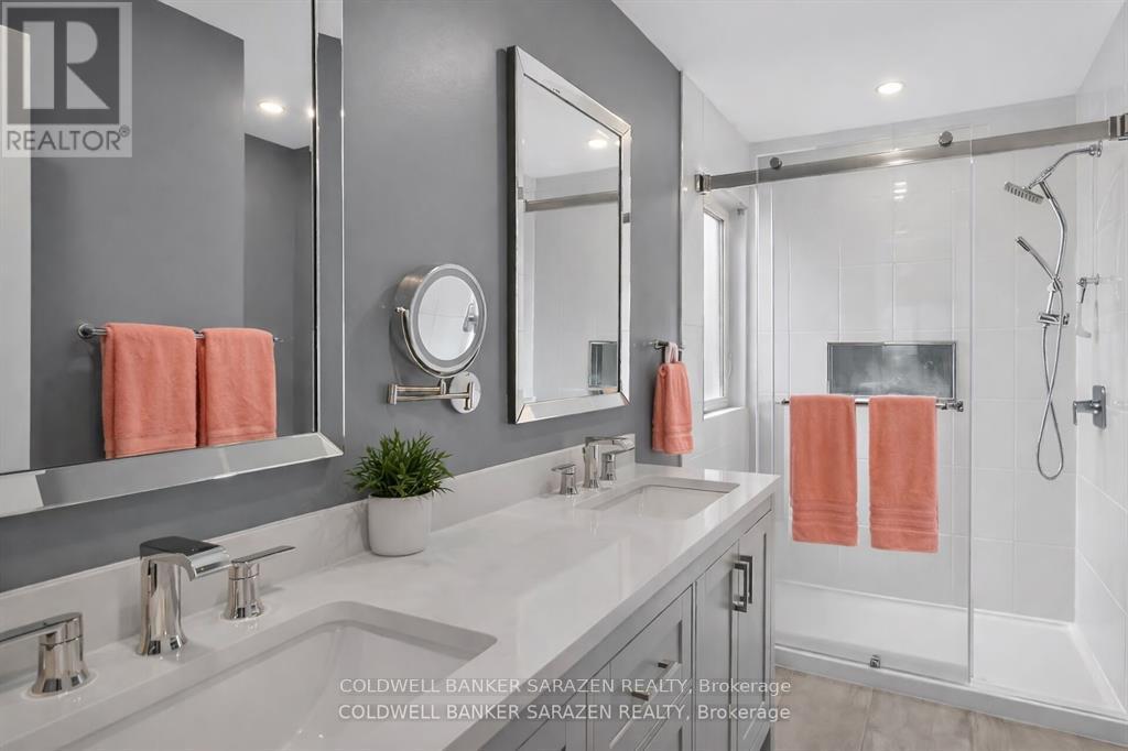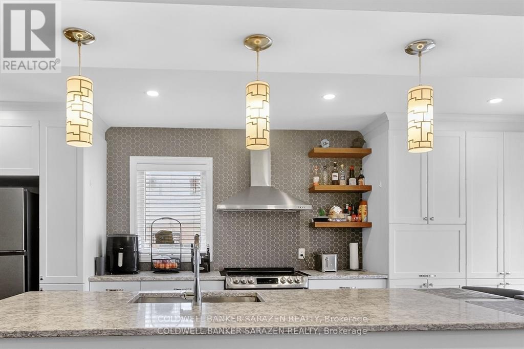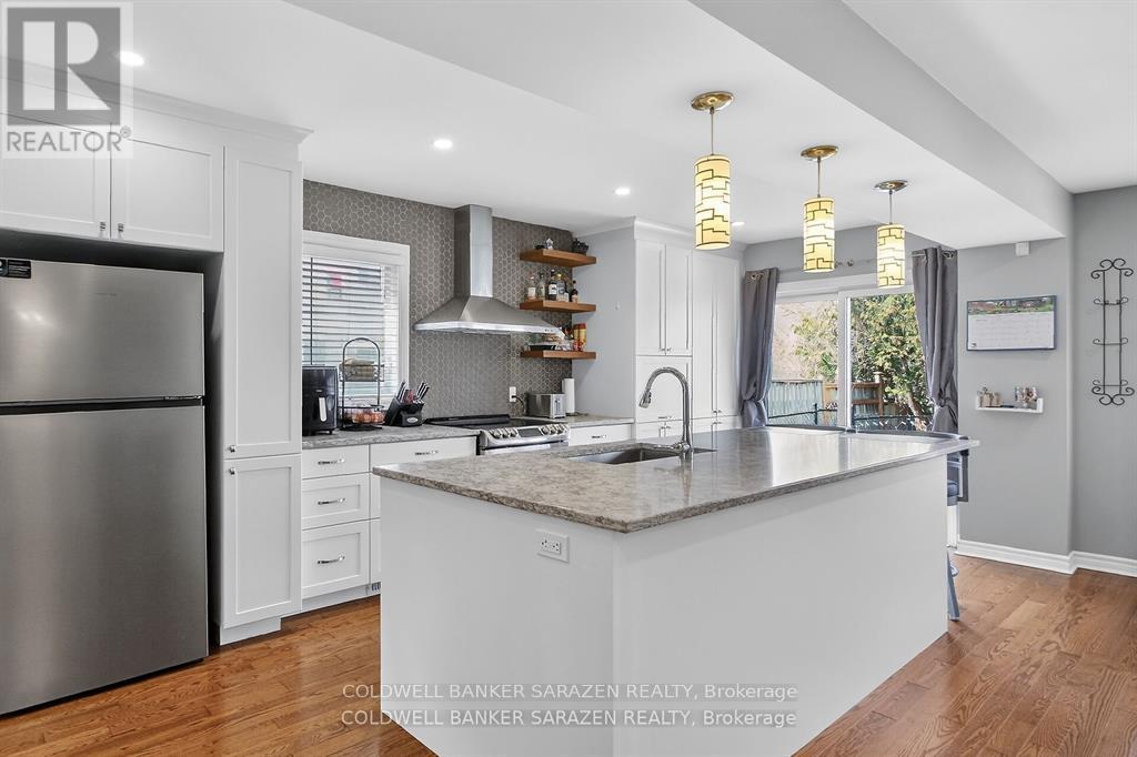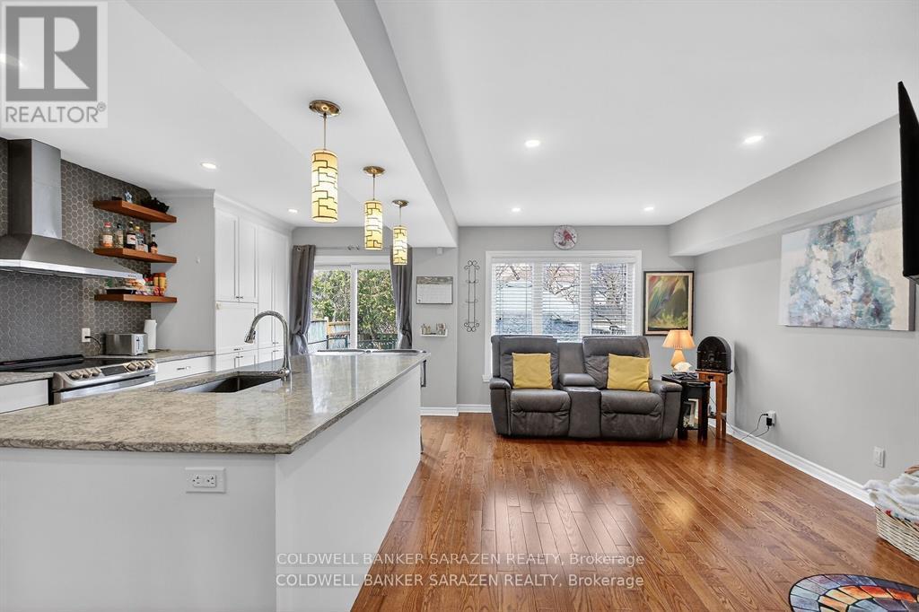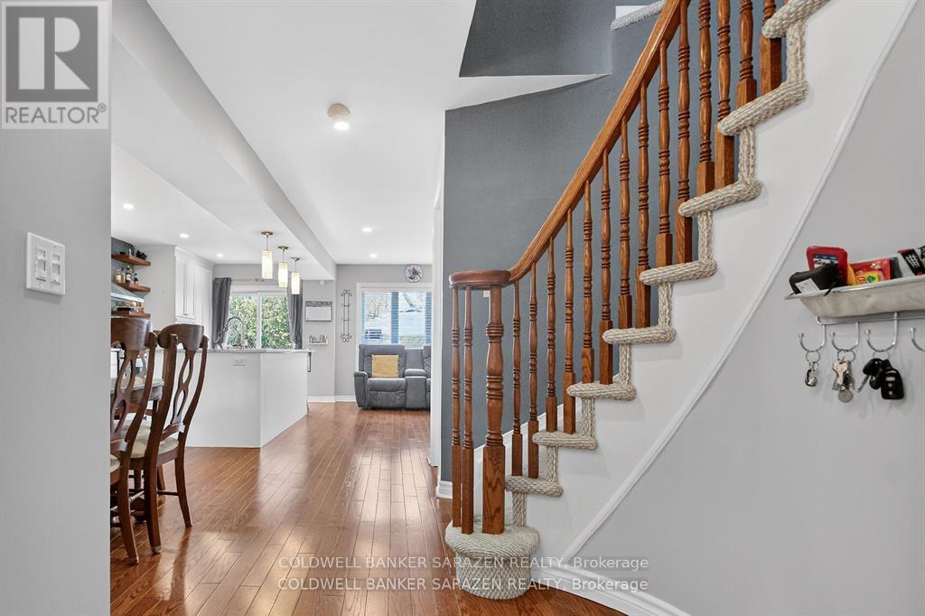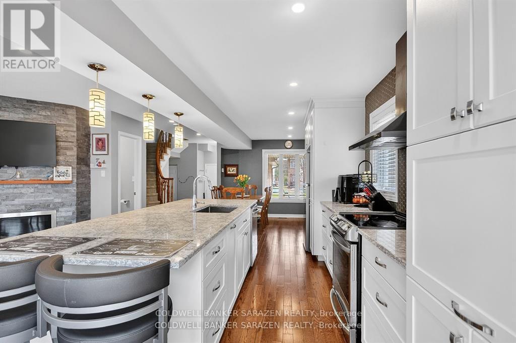 GORGEOUS END UNIT in a Fantastic Location! Welcome to 43 Daventry - a beautifully updated 3+ bedroom, 3.5 bathroom home offering space, style, and a private rear yard. The exterior is just as impressive as the interior, featuring a 4-car driveway, interlock in the backyard, river rock landscaping in the front, a metal-roof gazebo, and a fully fenced private yard-ideal for relaxing or entertaining. Inside, the completely renovated kitchen is absolutely stunning, showcasing beautiful island and coffee bar. This kitchen is both beautiful and highly functional. The main floor offers all new wood flooring and tile, along with a bright living room enhanced by a cozy fireplace. A mid-level family room with a second fireplace provides additional flexible living space-perfect for families or entertaining. Upstairs, you'll find a very large primary bedroom plus two other generous-sized bedrooms. The finished basement adds even more living space, complete with newer Berber carpet and a bathroom featuring heated flooring for extra comfort. Extensive renovations and inclusions are listed in the attachments. All of this-and so much more-makes this home a must-see. Have a look. You'll be glad you did! (id:50982)