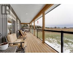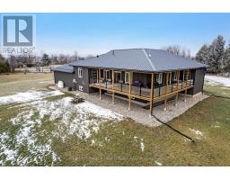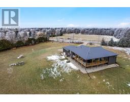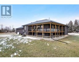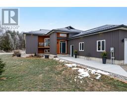 Outstanding. With smooth clean lines this 2022 home offers a sophisticated presence and, its unparalleled construction creates a wealth of efficiencies. The exterior steel siding is eye catching with its attractive slate-hued finish, accented by earthy warm cedar. The design elements blend flawlessly into 3 peaceful country acres. Step inside to the sleek foyer featuring white bright décor enhanced by double closet's charcoal glass panels; elegance added by the porcelain floor and glass chandelier. Flooring thru-out 3+1 bed, 2 full bath home is porcelain tile plus, luxury vinyl plank with cork cushioning for sound absorption - you will appreciate this with every step. Ceilings 9' high, light cascades inside thru big windows and living spaces insulated for sound separation from the bedrooms. Livingroom linear propane fireplace is surrounded by showcase porcelain wall. Impeccable gourmet kitchen most welcoming with Cambria quartz countertops, custom Deslaurier cabinetry, generous breakfast bar and premium Bosch appliances including two built-in ovens. Adjoining butler's pantry and sitting area. Primary suite calming retreat with two large closets and luxurious 5-pc ensuite porcelain floor, two-sink quartz vanity, rainhead glass shower with body-spray tower and deluxe soaker tub. Two more bedrooms and well-appointed 4-pc bathroom also with porcelain floor, quartz vanity, touchscreen mirror and rainhead shower with body-spray. Lower level 8' ceilings, R22 insulation and potential for in-law suite with rough-ins for kitchen and bathroom. From lower level, direct access to double attached garage with hookup for overhead propane heater. Adding to home's ultra-modern design and commitment to quality is superior steel roof with protective membrane & R60 insulation. Steel fascia has recessed soffit lighting. High energy-efficient Kohltech windows & propane furnace. Underground hydro line from road to home. On paved township road. Cell service & hi-speed. 10 mins Perth. (id:50982)